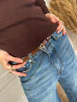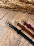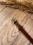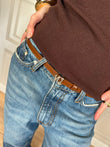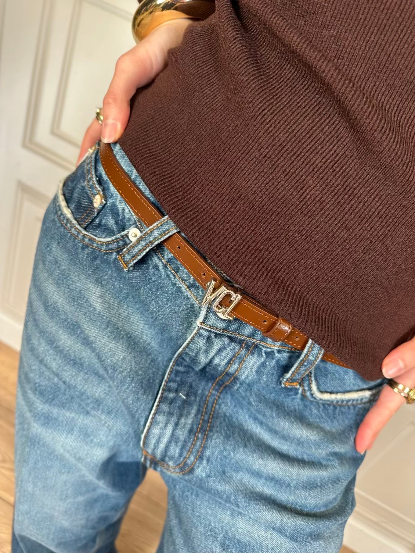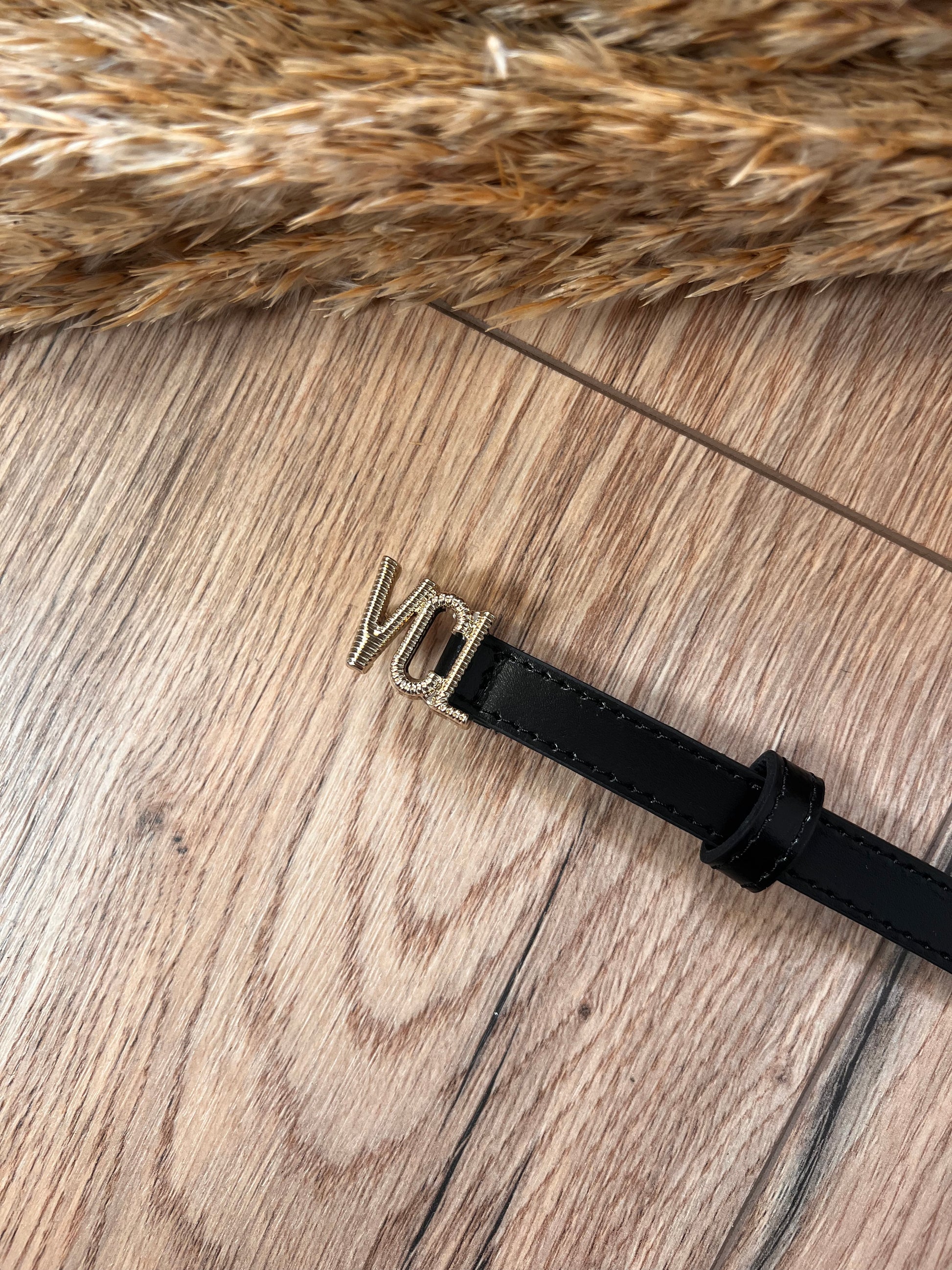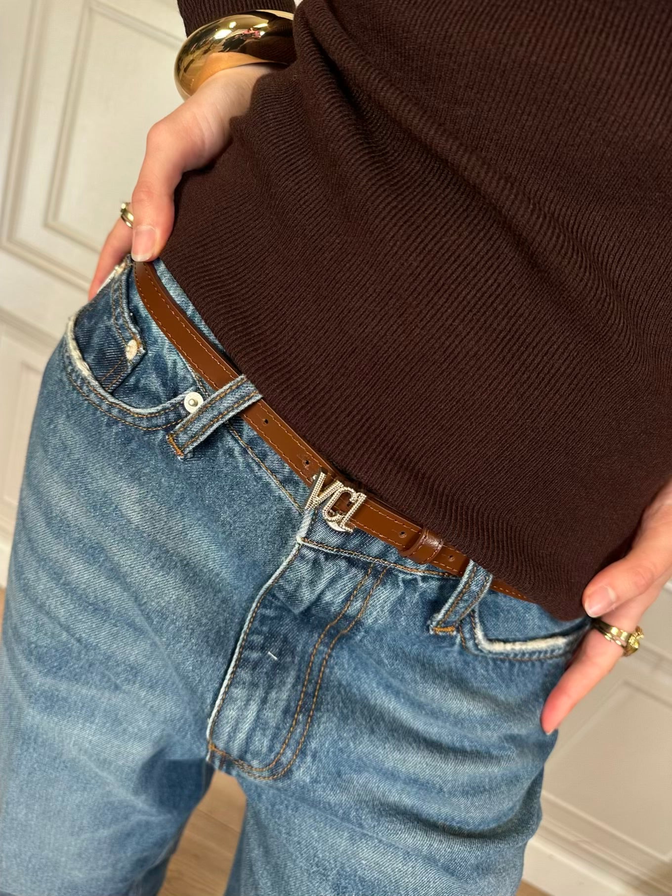 Cinturina in vera pelle con fibbia logo VCL in color oro.