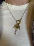 Collana composta da catenina e perle dorata , con moschettone e ciondoli dorati. Ciondolo croce e sacro cuore. Lunghezza 40cm