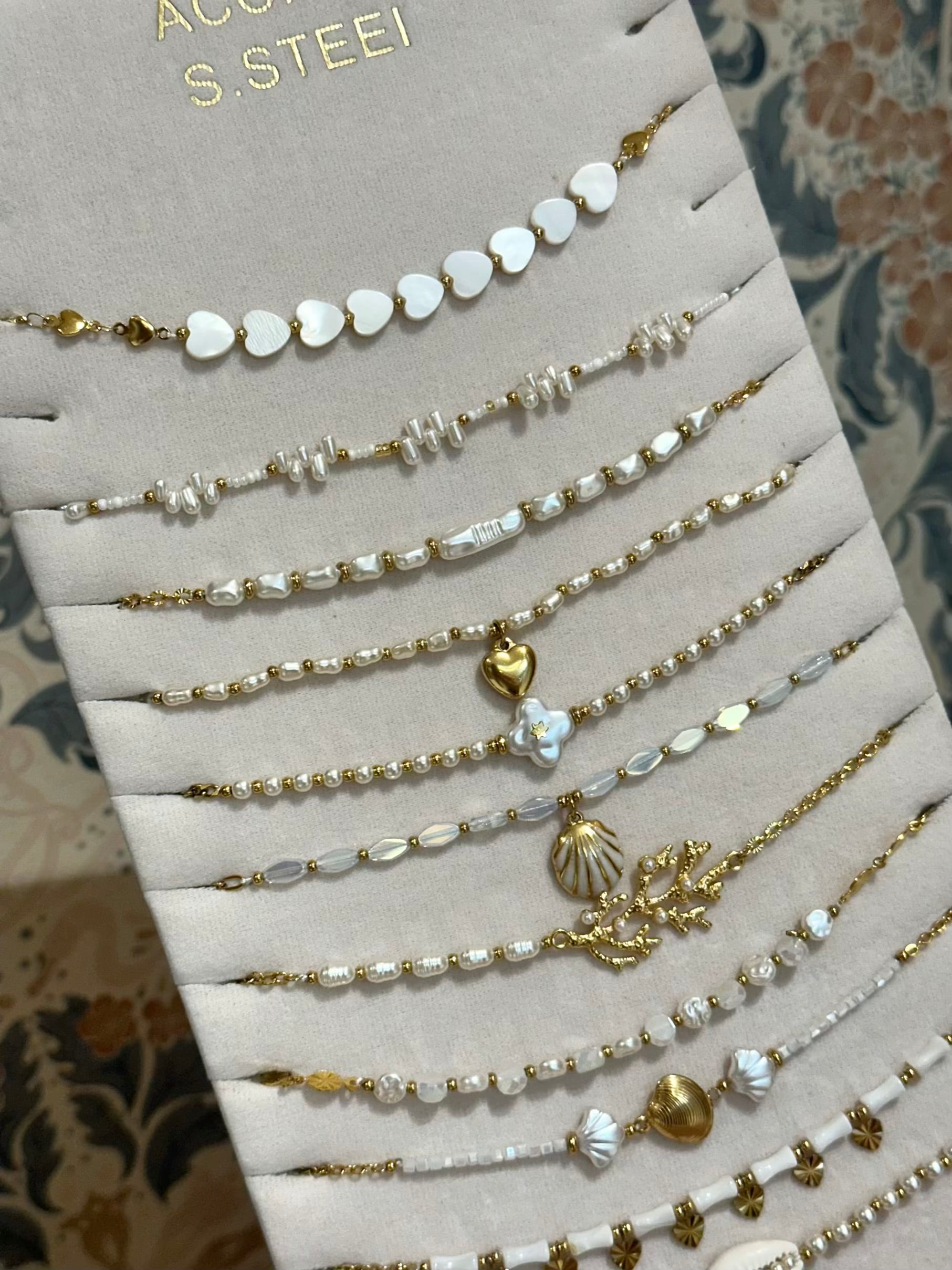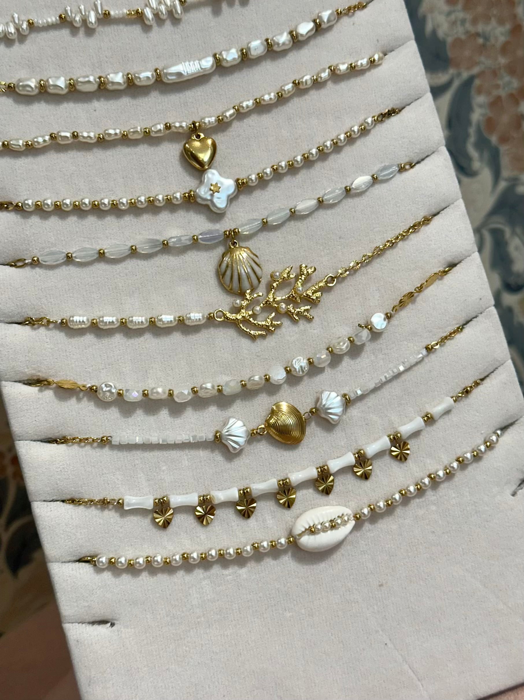 Collana con perle e ciondoli. Lunghezza 40cm+5cm catenella