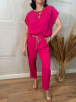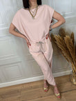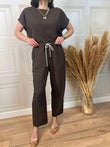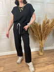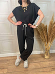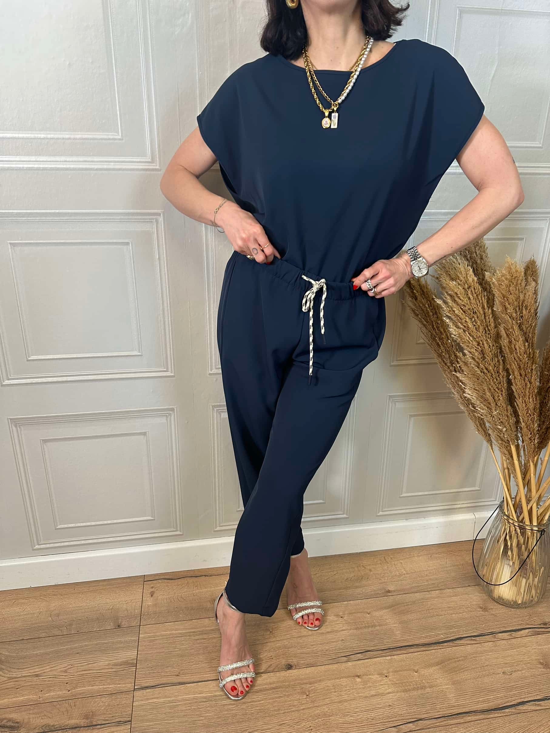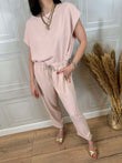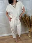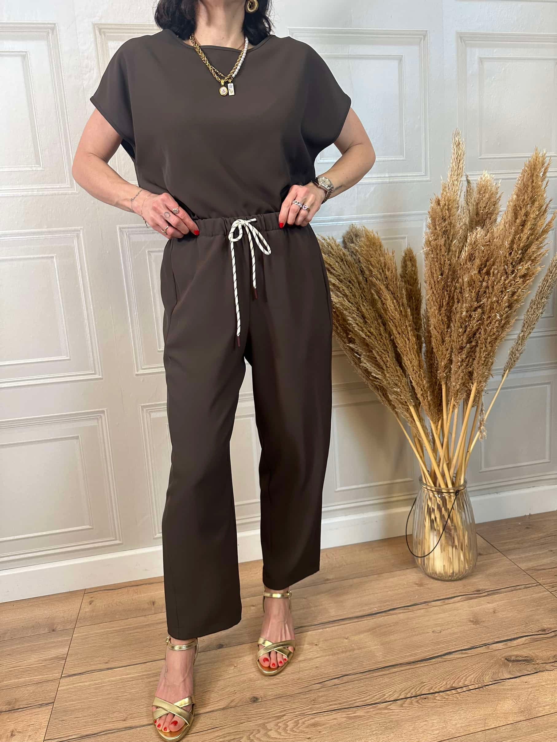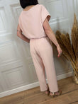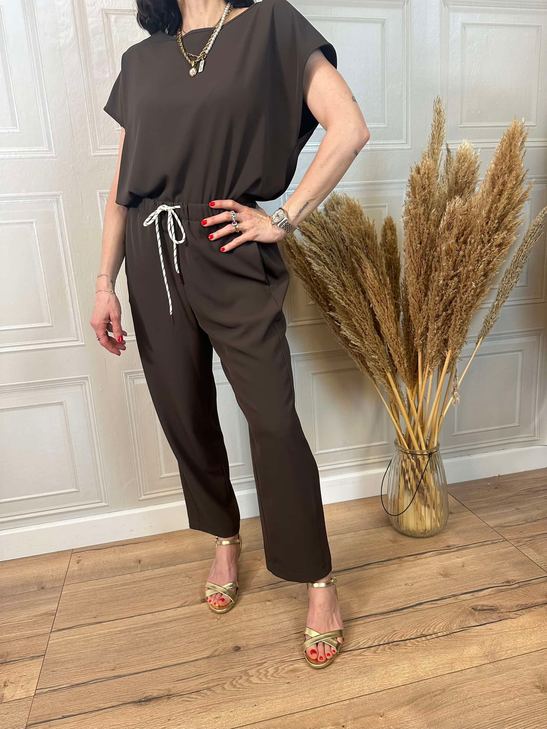 - Pantalone carrot alla caviglia con elastico in vita e coulisse, vestibilità abbastanza morbida.