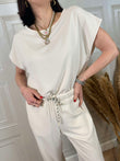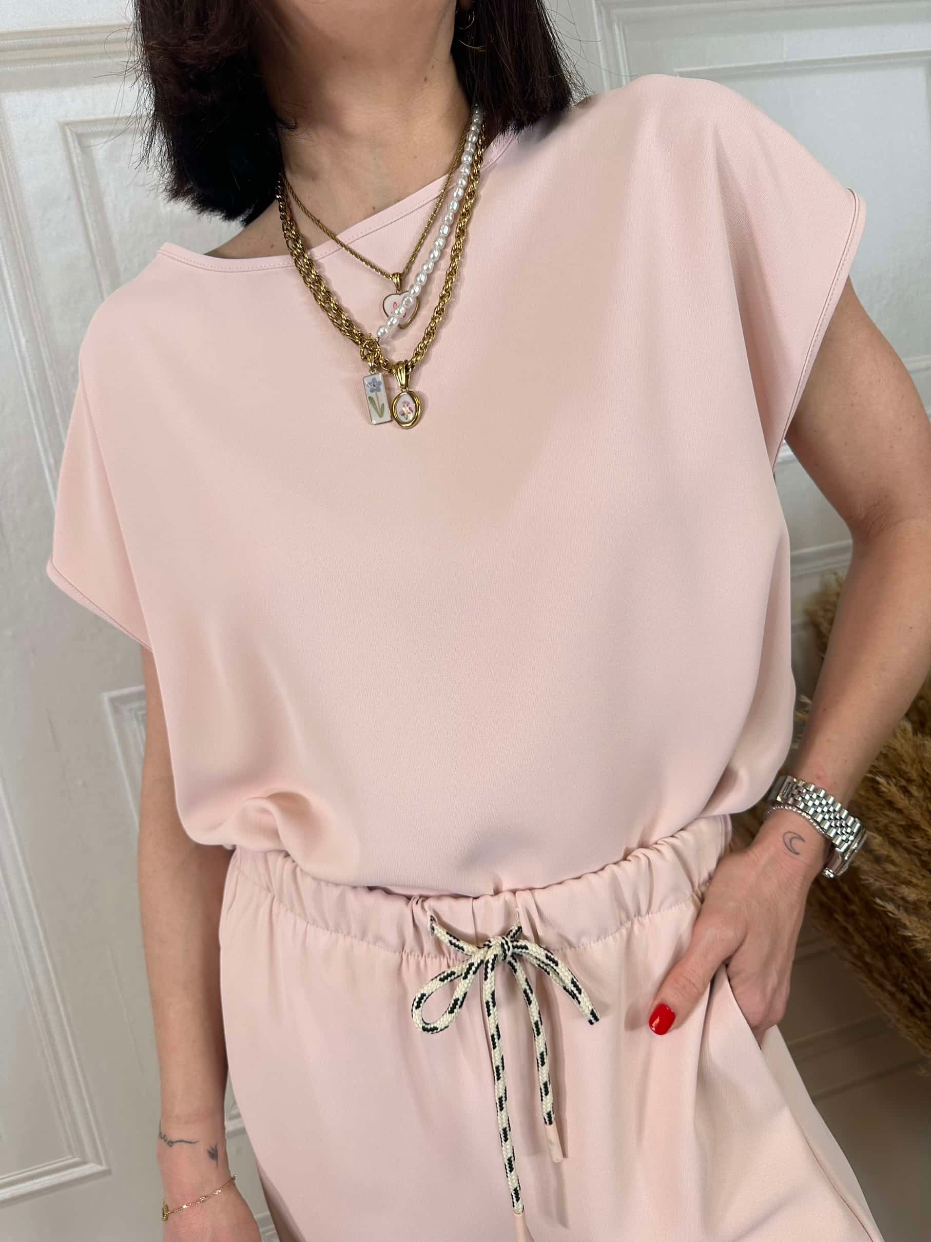 - Blusa con manichina corta e scollo a barca. Vestibilità abbastanza morbida.