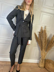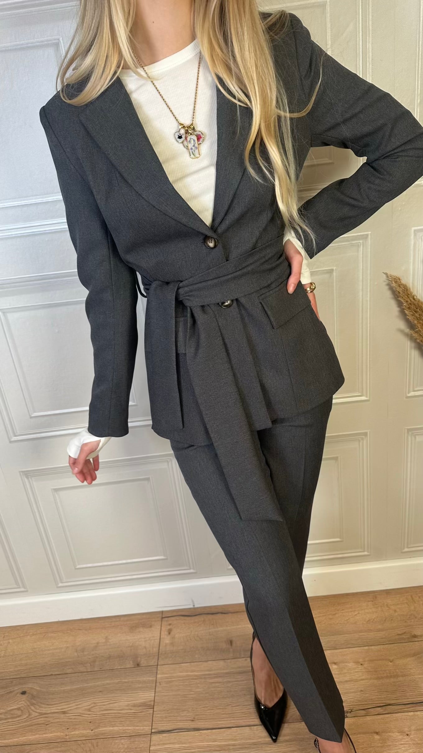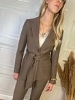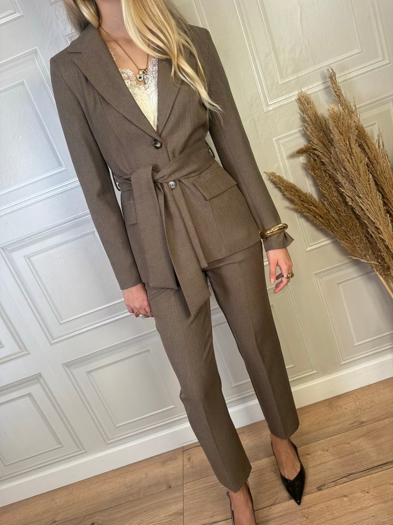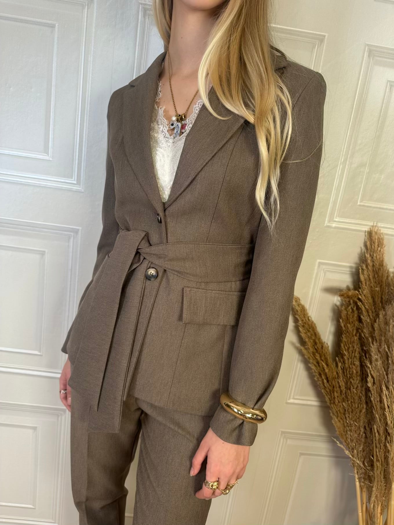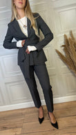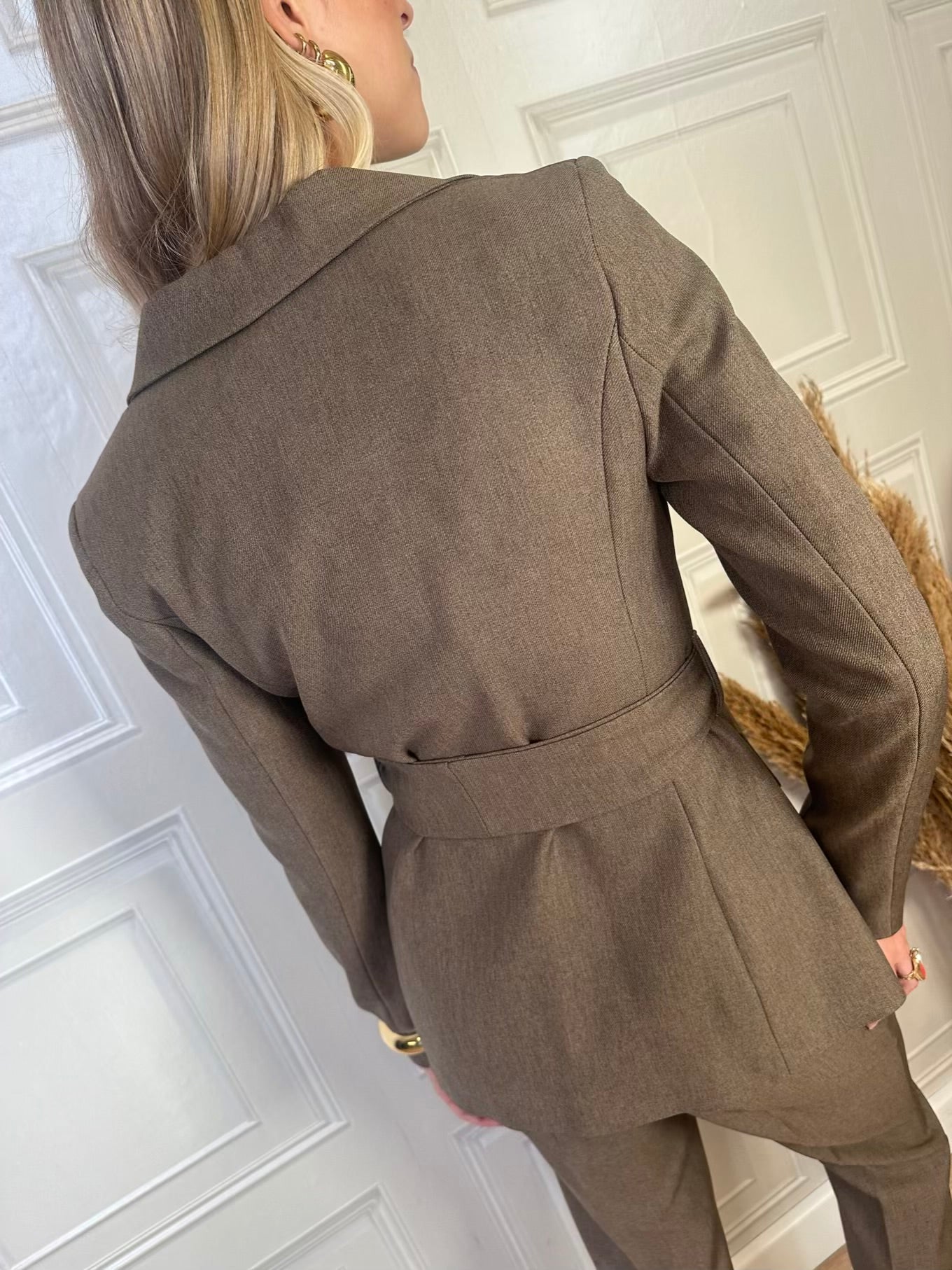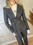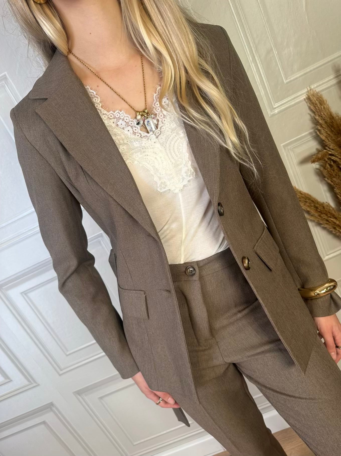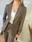 - Blazer monopetto con fusciacca, leggermente sfiancato. Taschine con patta sul fronte. Chiusura a due bottoni.