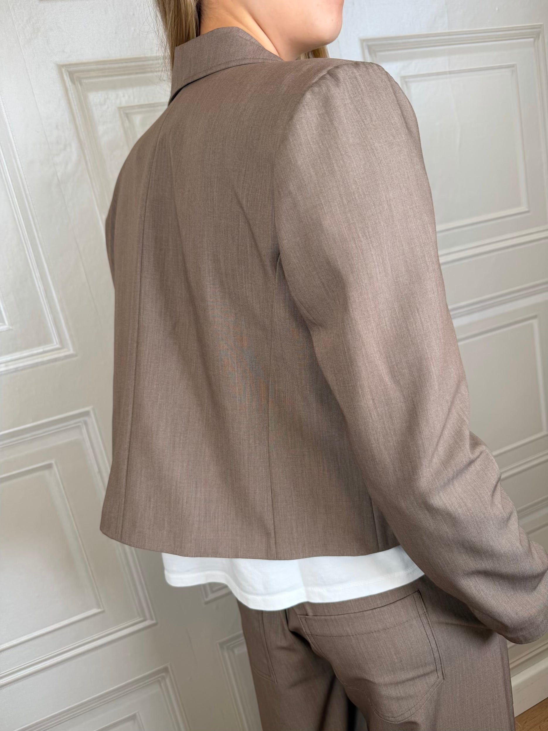 - Blazer crop con collo a rever doppiopetto a due bottoni. Vestibilità morbida