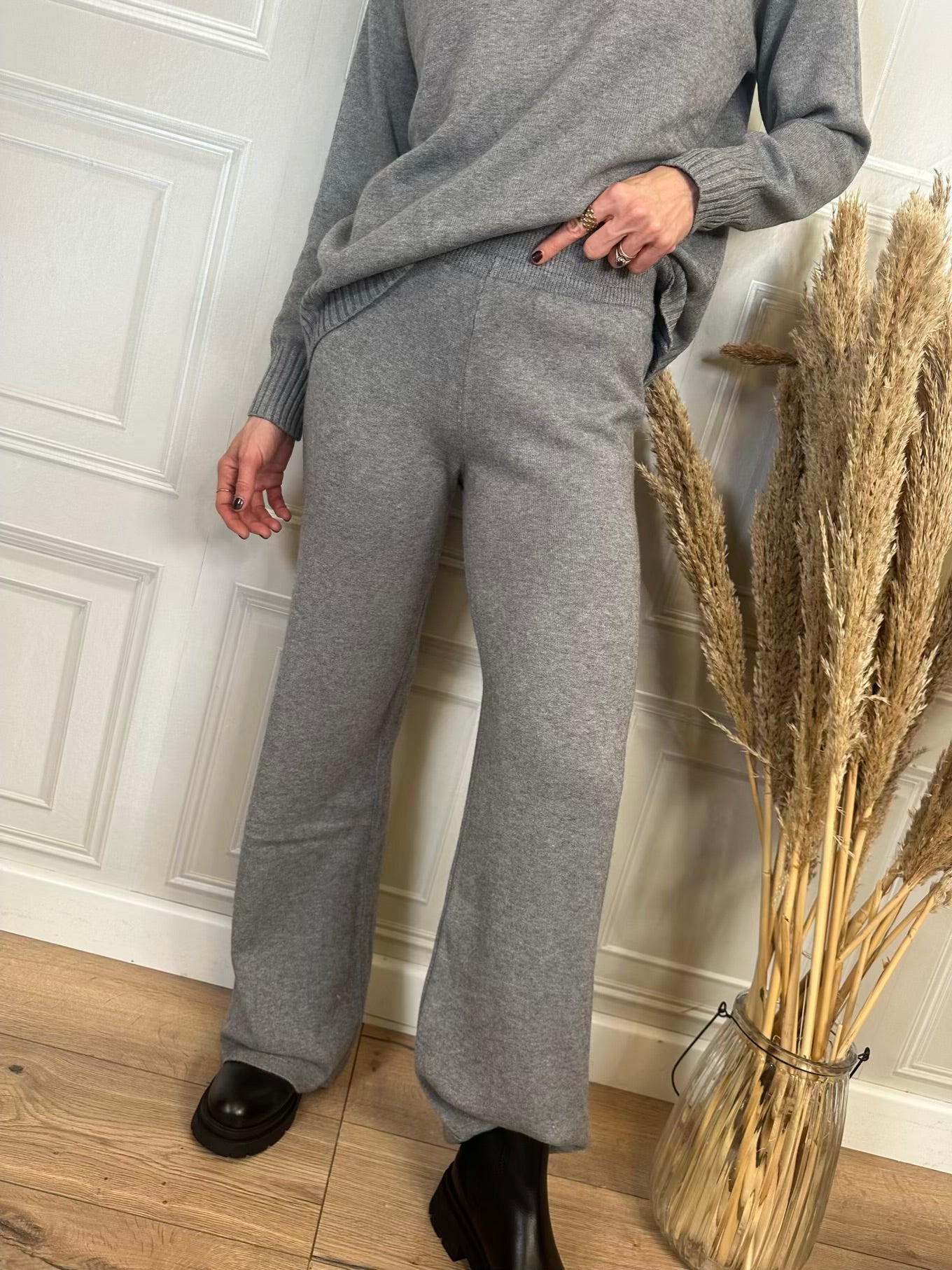 - Pantalone palazzo con elastico in vita.