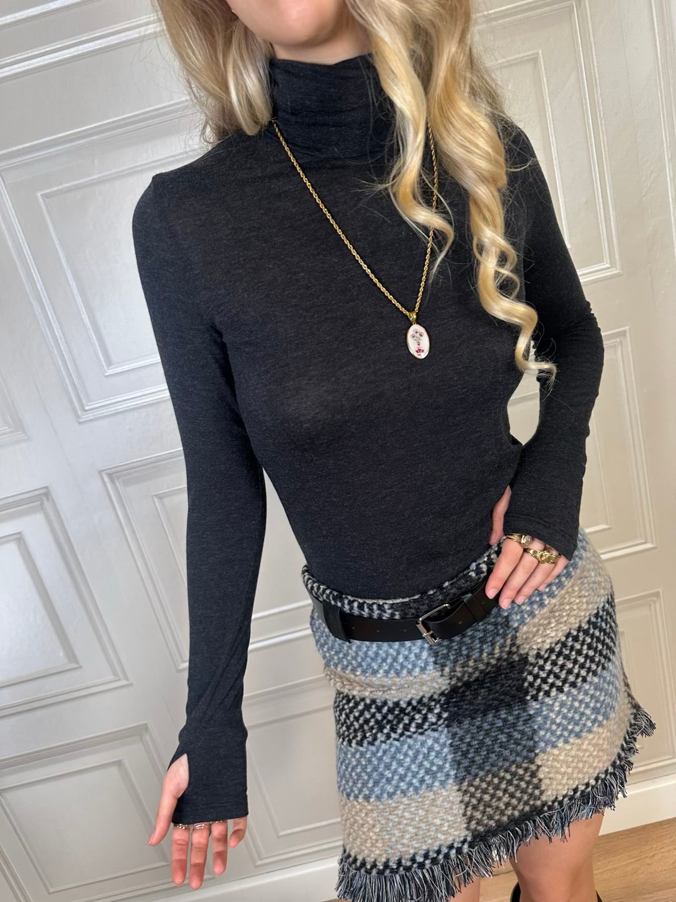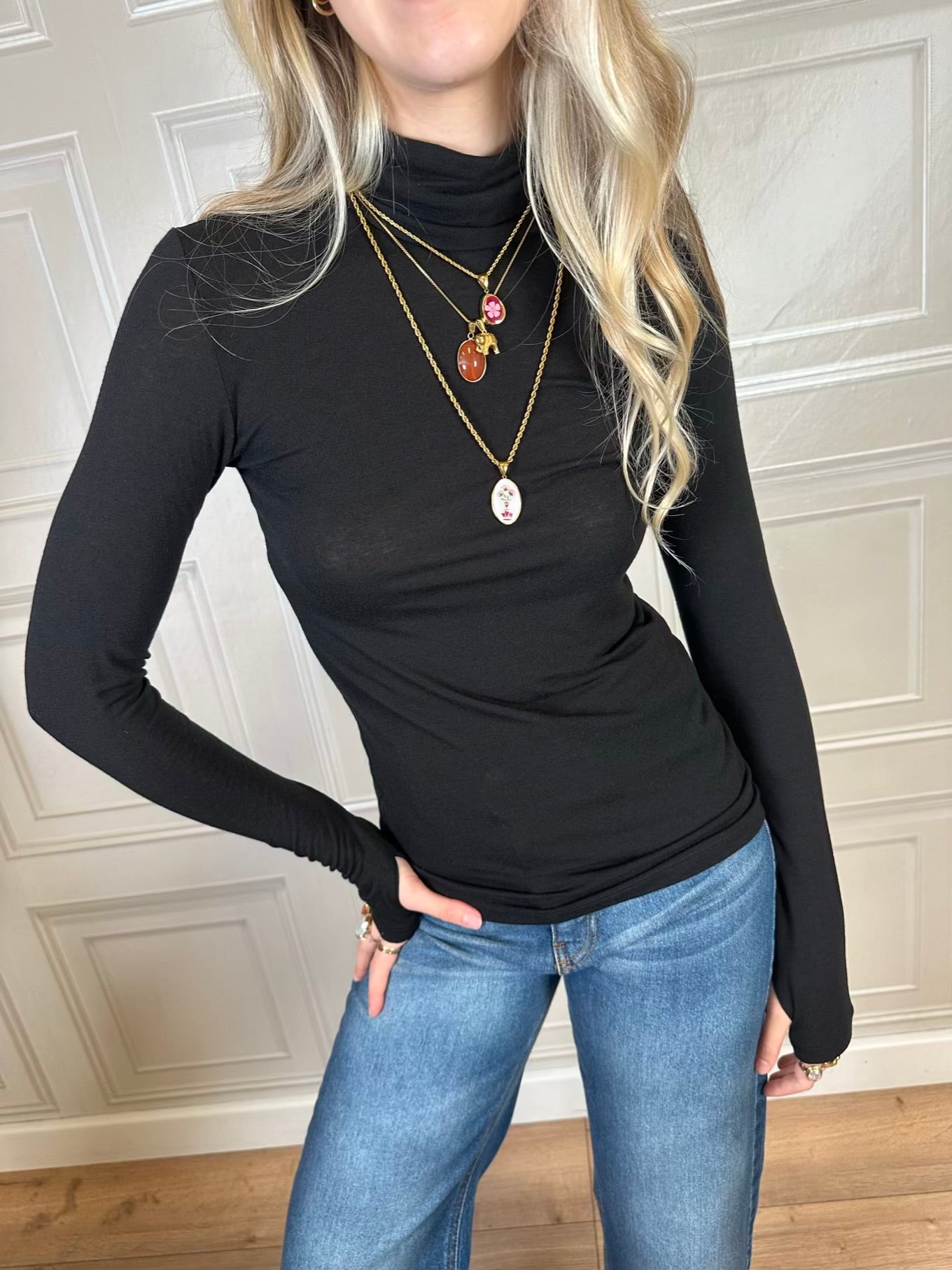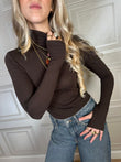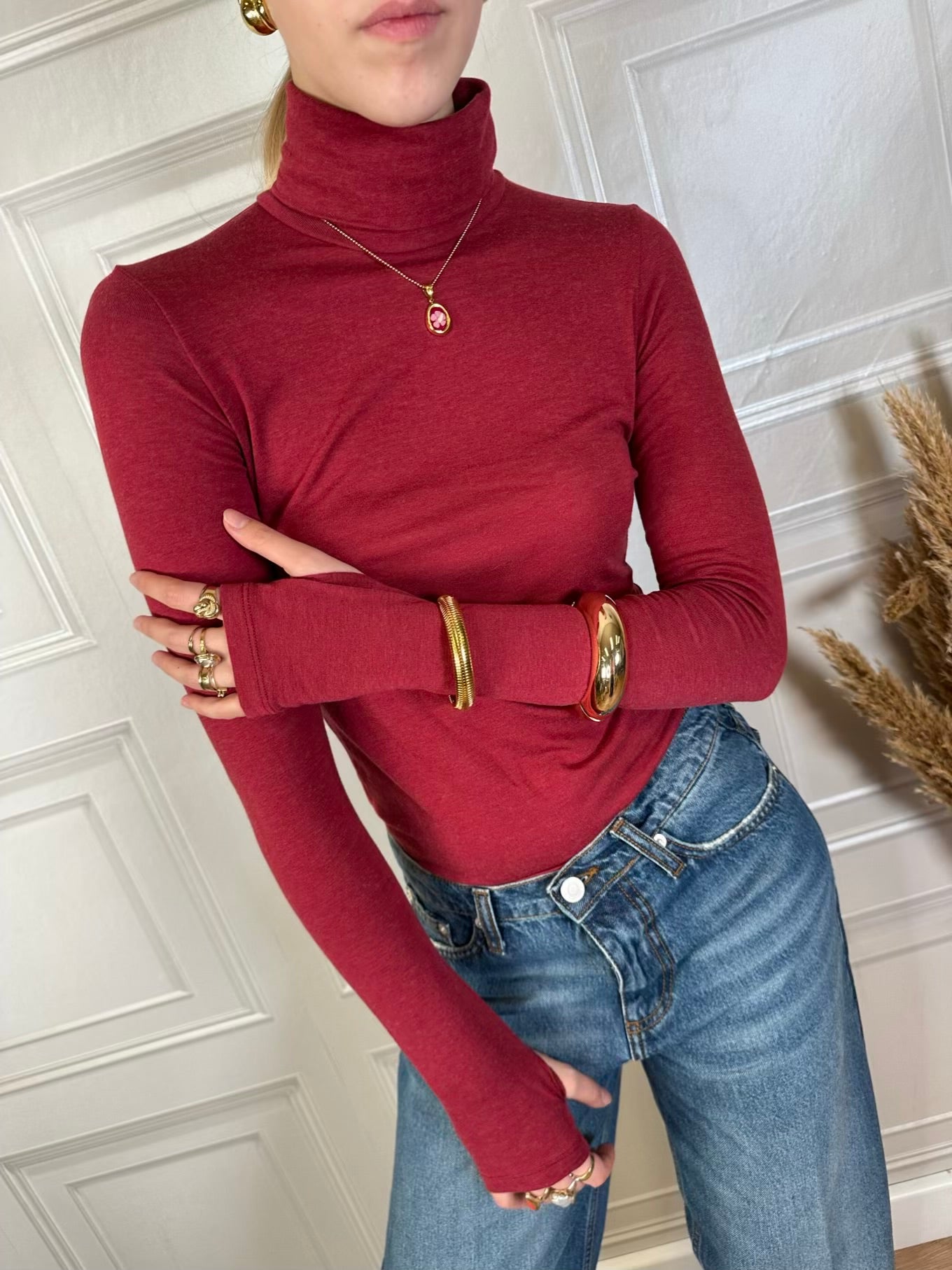 Dolcevita misto lana elasticizzato. Modello con manicotti, fit aderente e manica lunga.