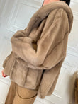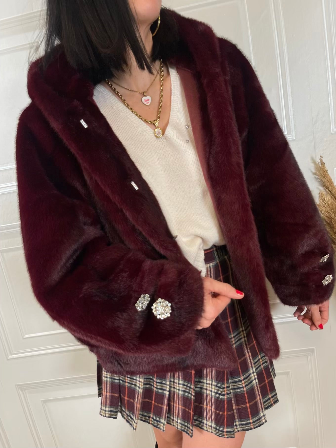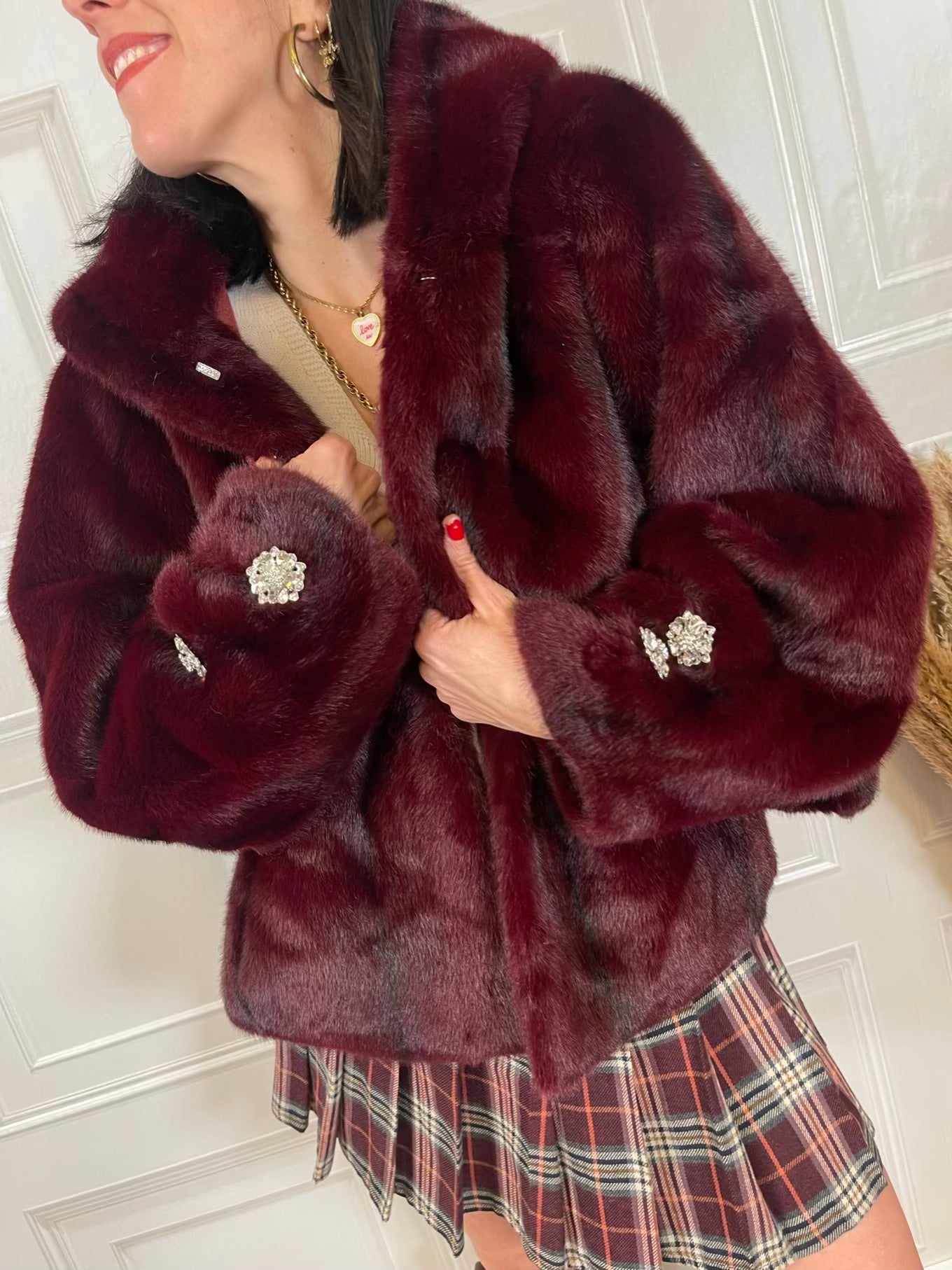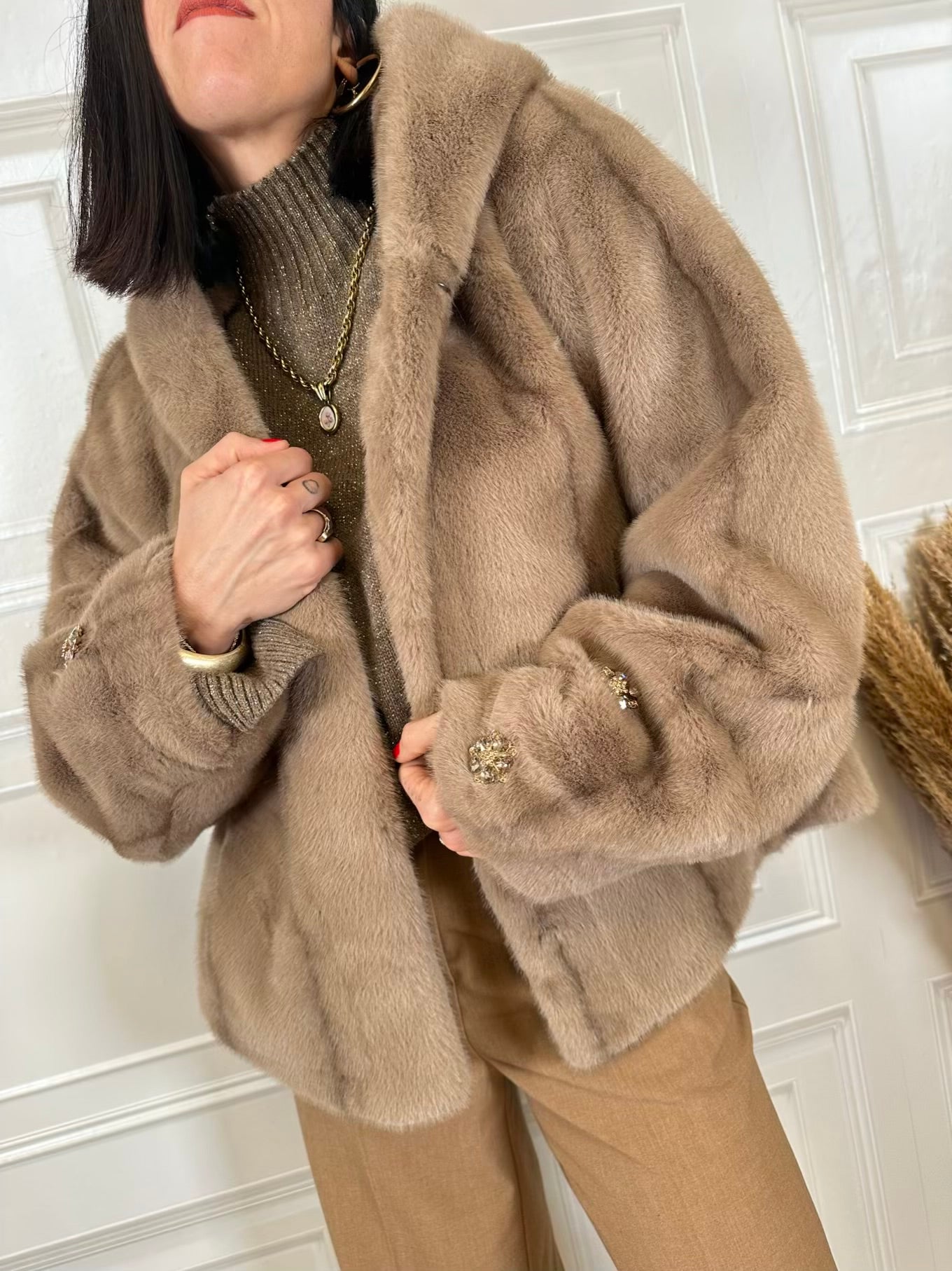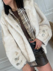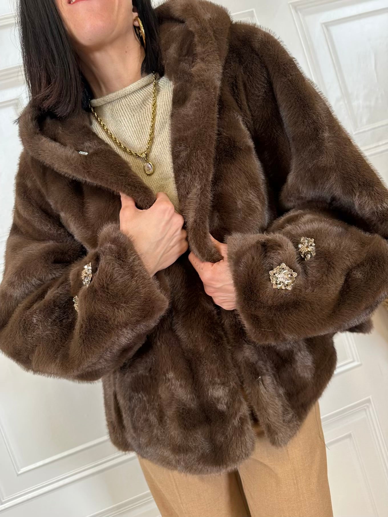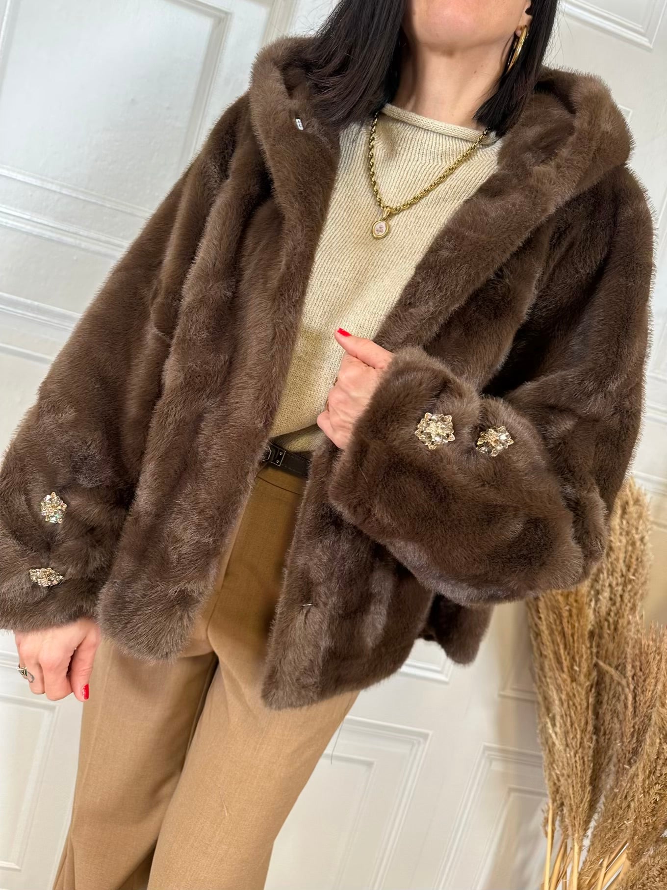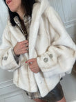Eco pelliccia bottoni gioiello e cappuccio - HolaSelection