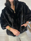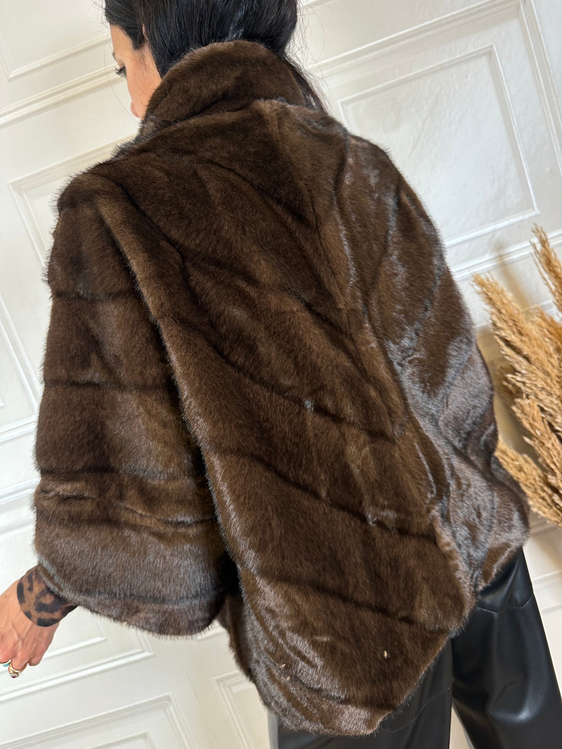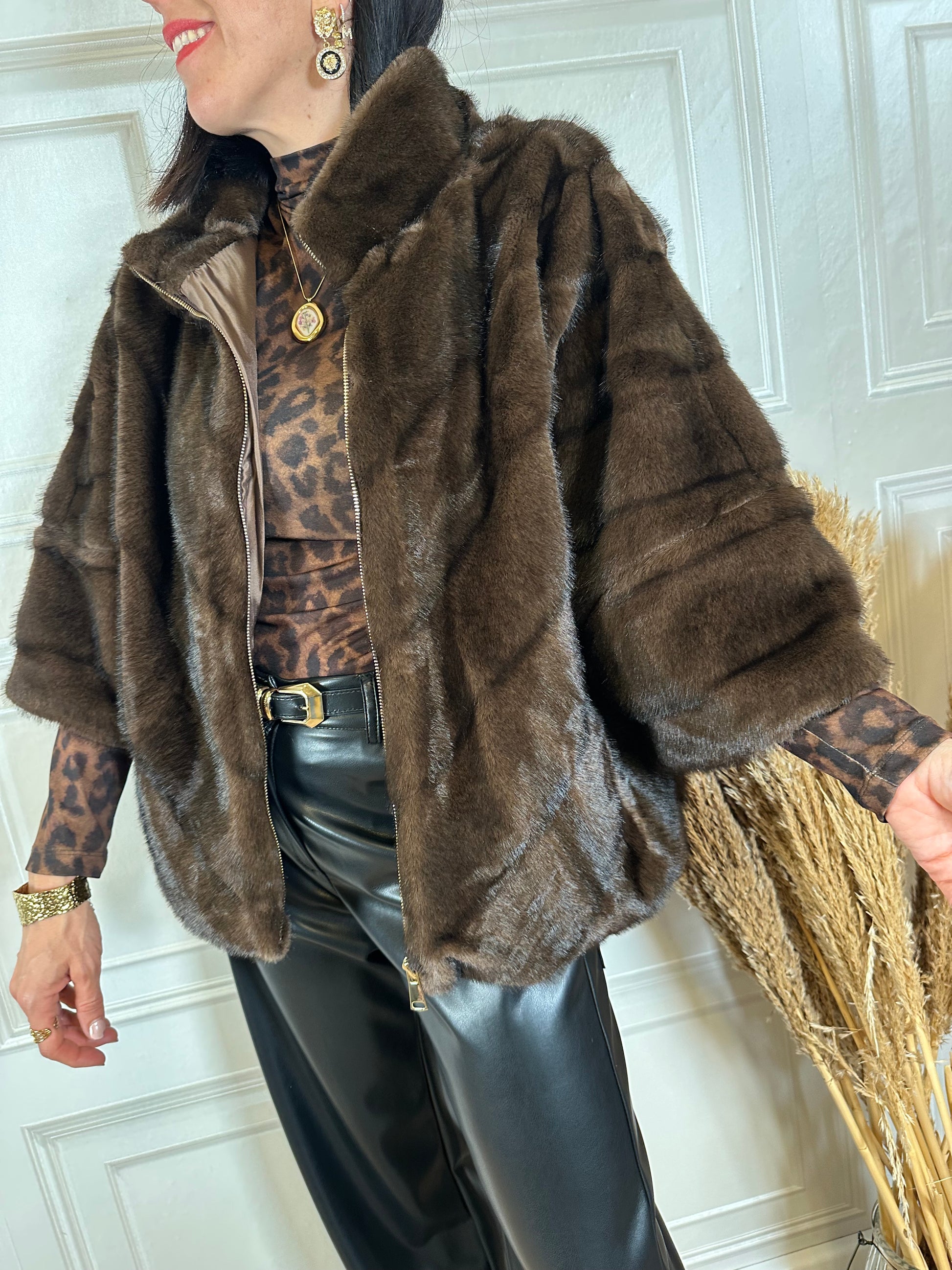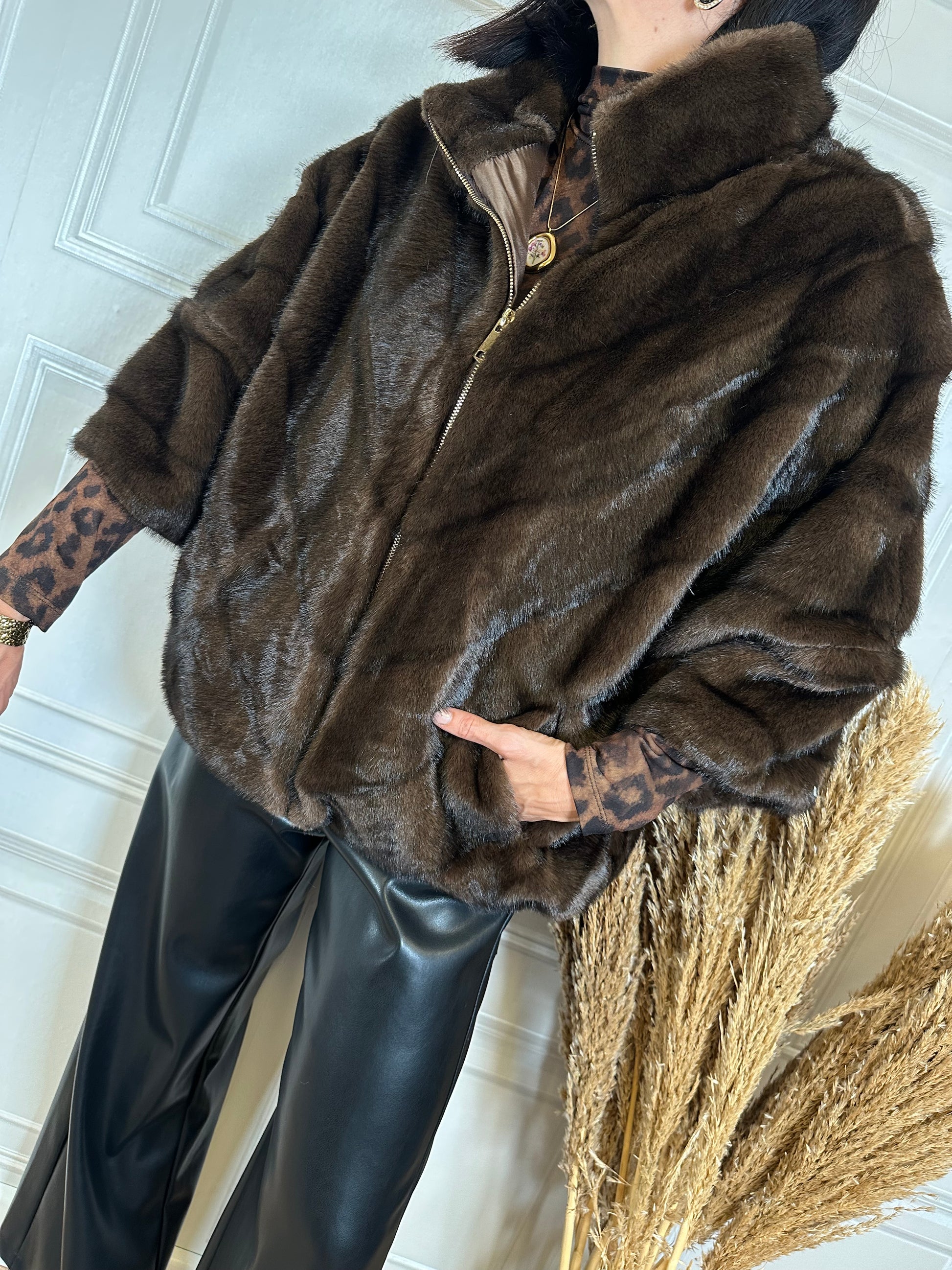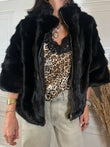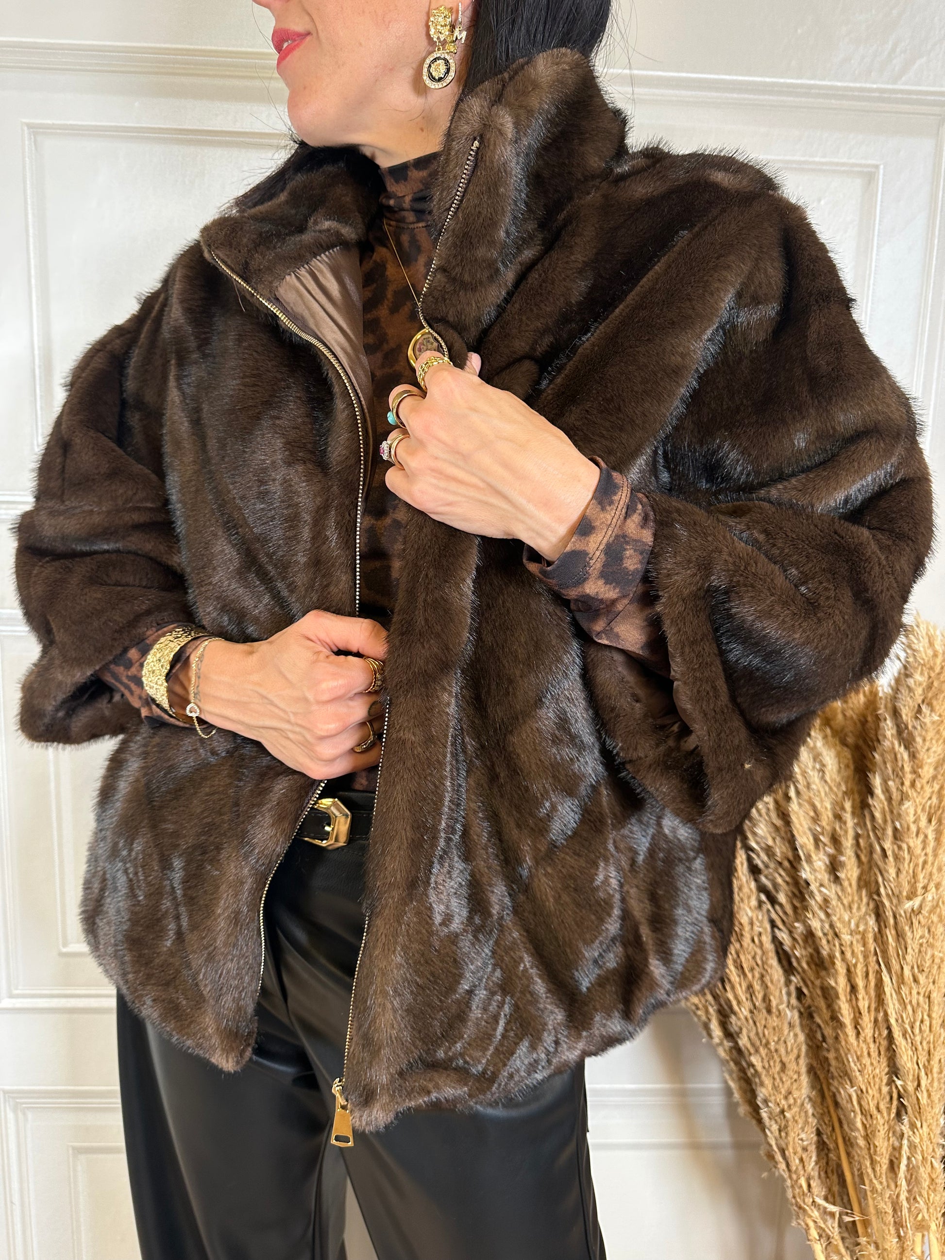 Eco pelliccia a pelo corto. Modello morbido, lunghezza regolare. Maniche a tre quarti. Chiusura con zip. Taglia unica.