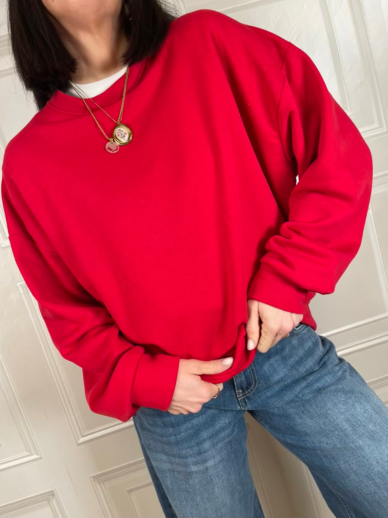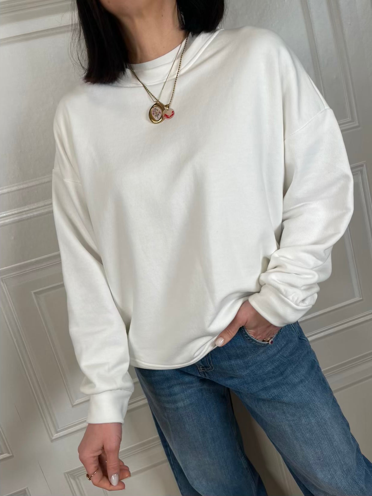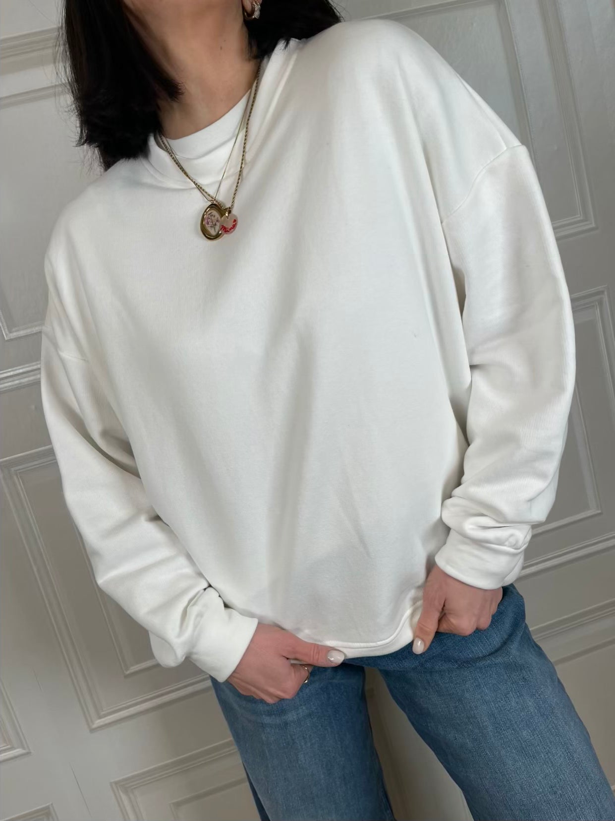 Felpa a girocollo con stampa sul retro.