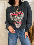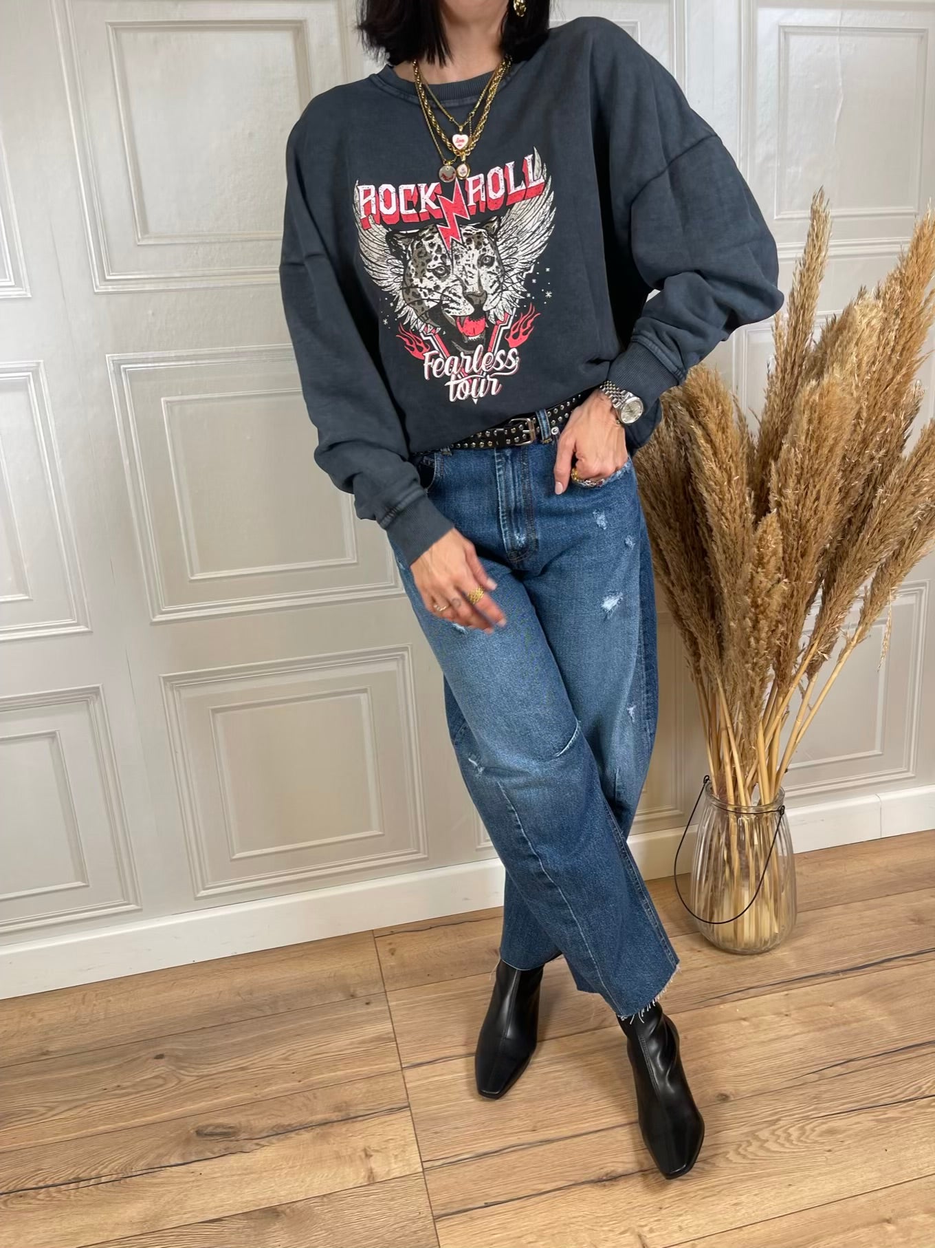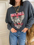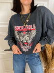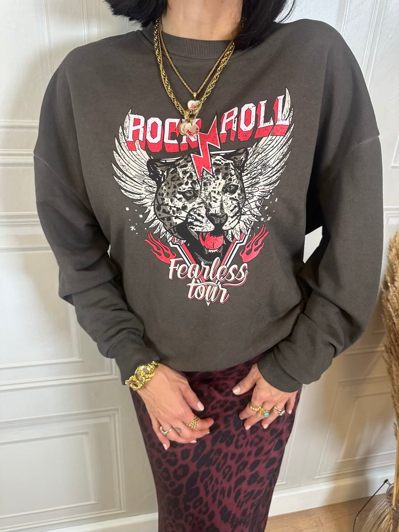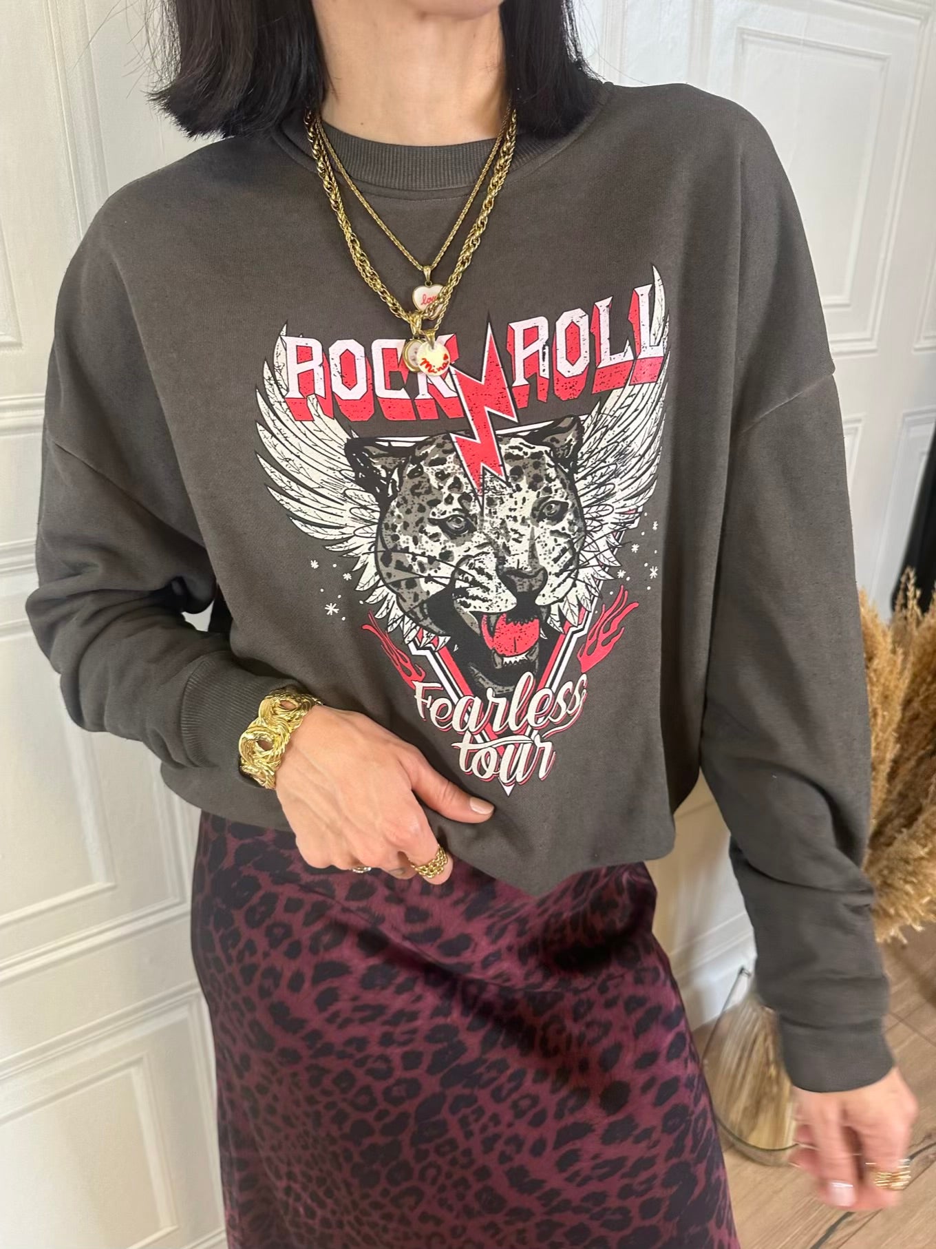 Felpa color grigio garzata HaveOne. Stampa frontale Rok n roll. Modello girocollo, manica lunga balloon.