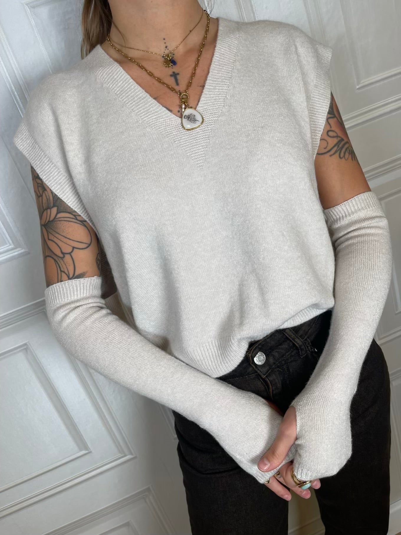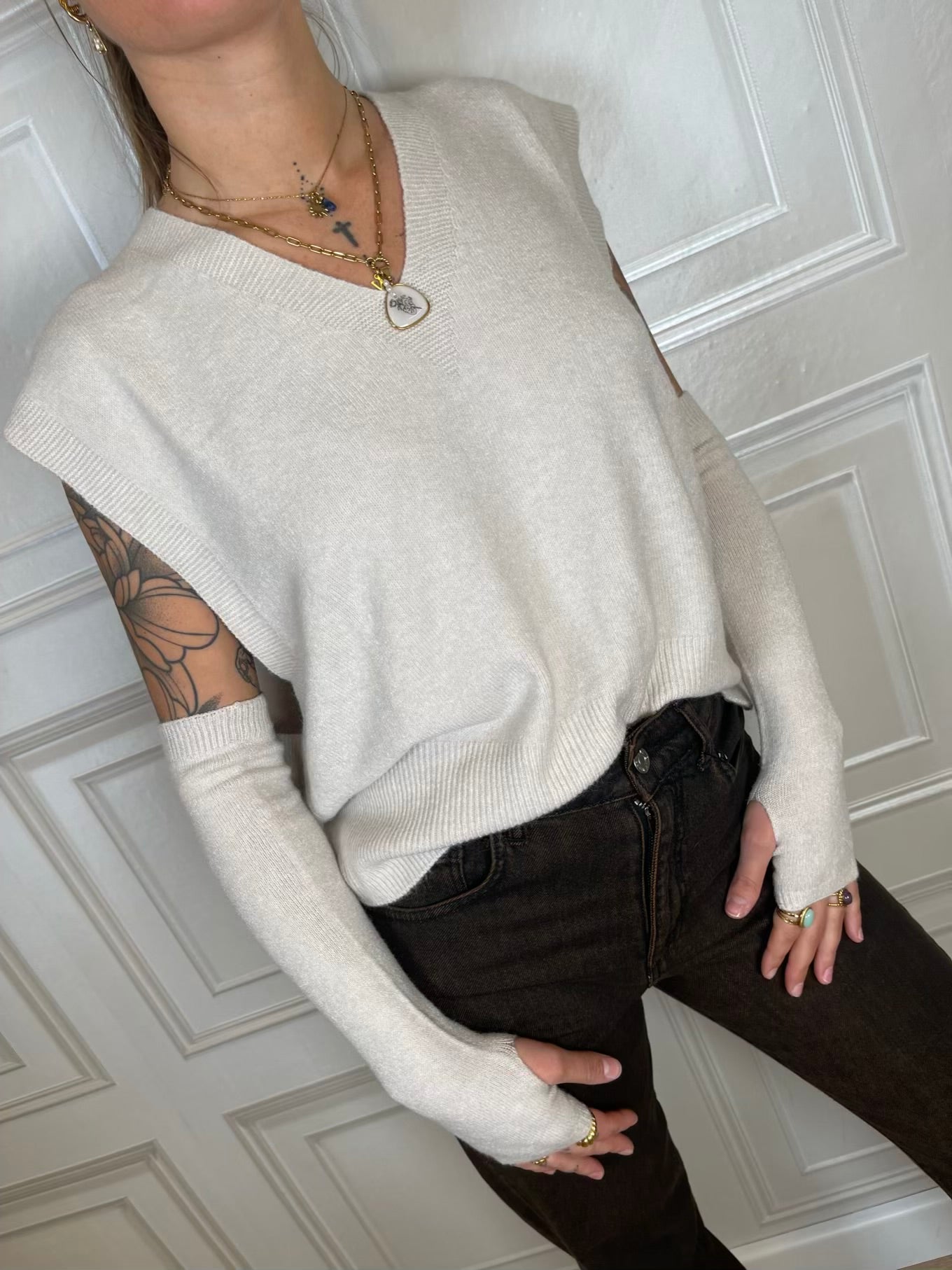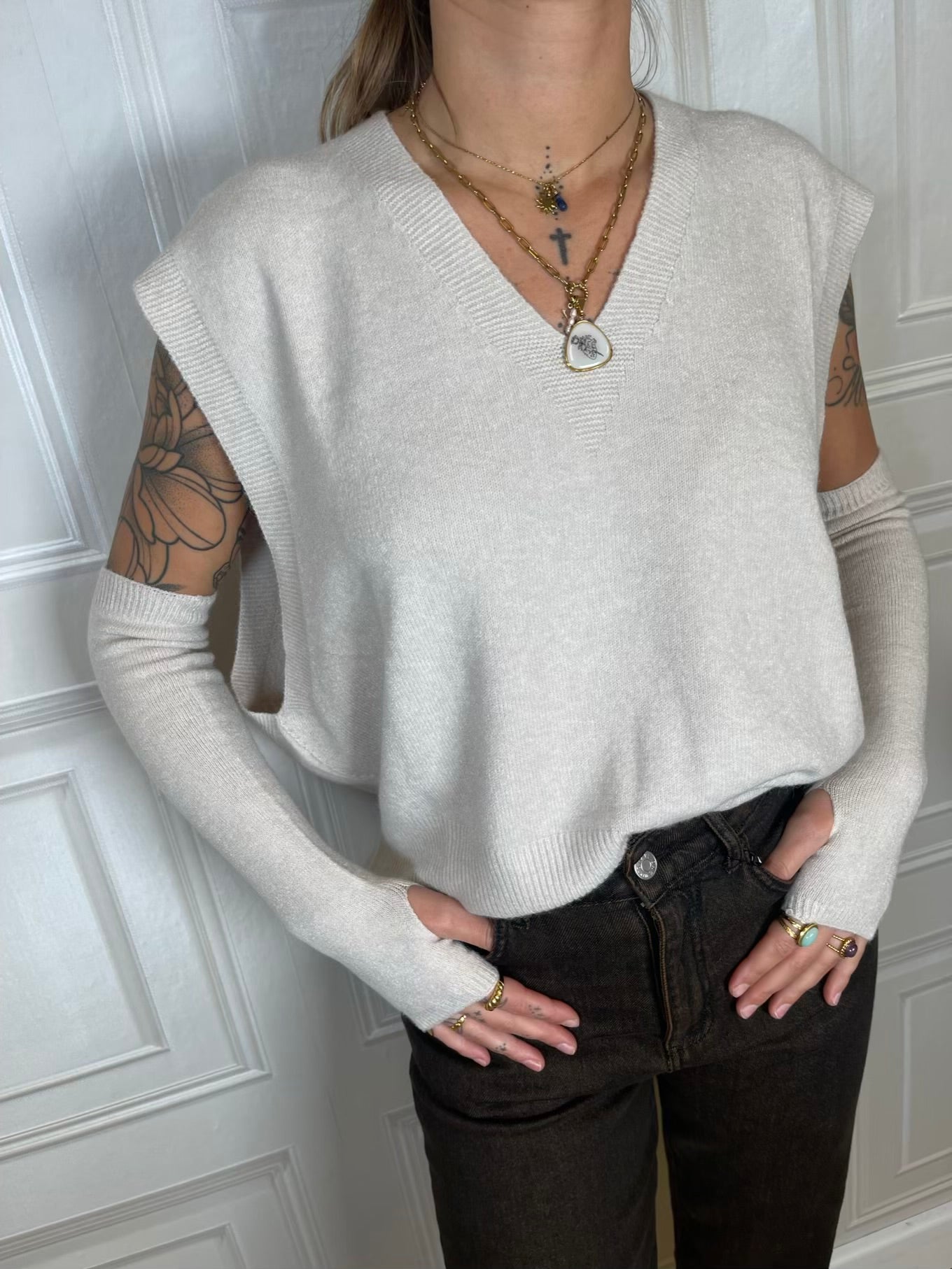 Gilet scollo a V con manicotti. Modello con giromanica ampio.
