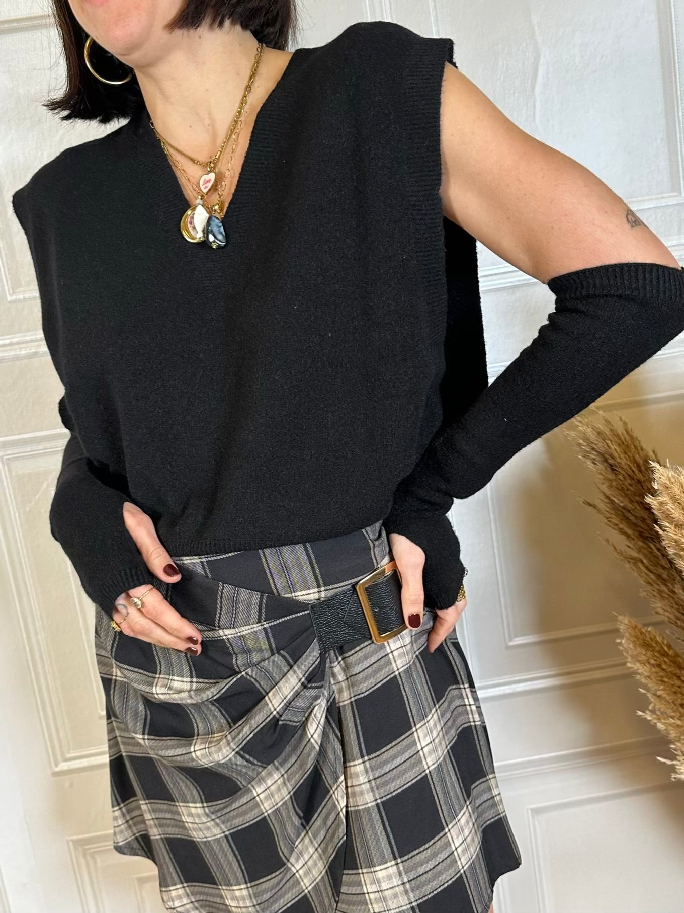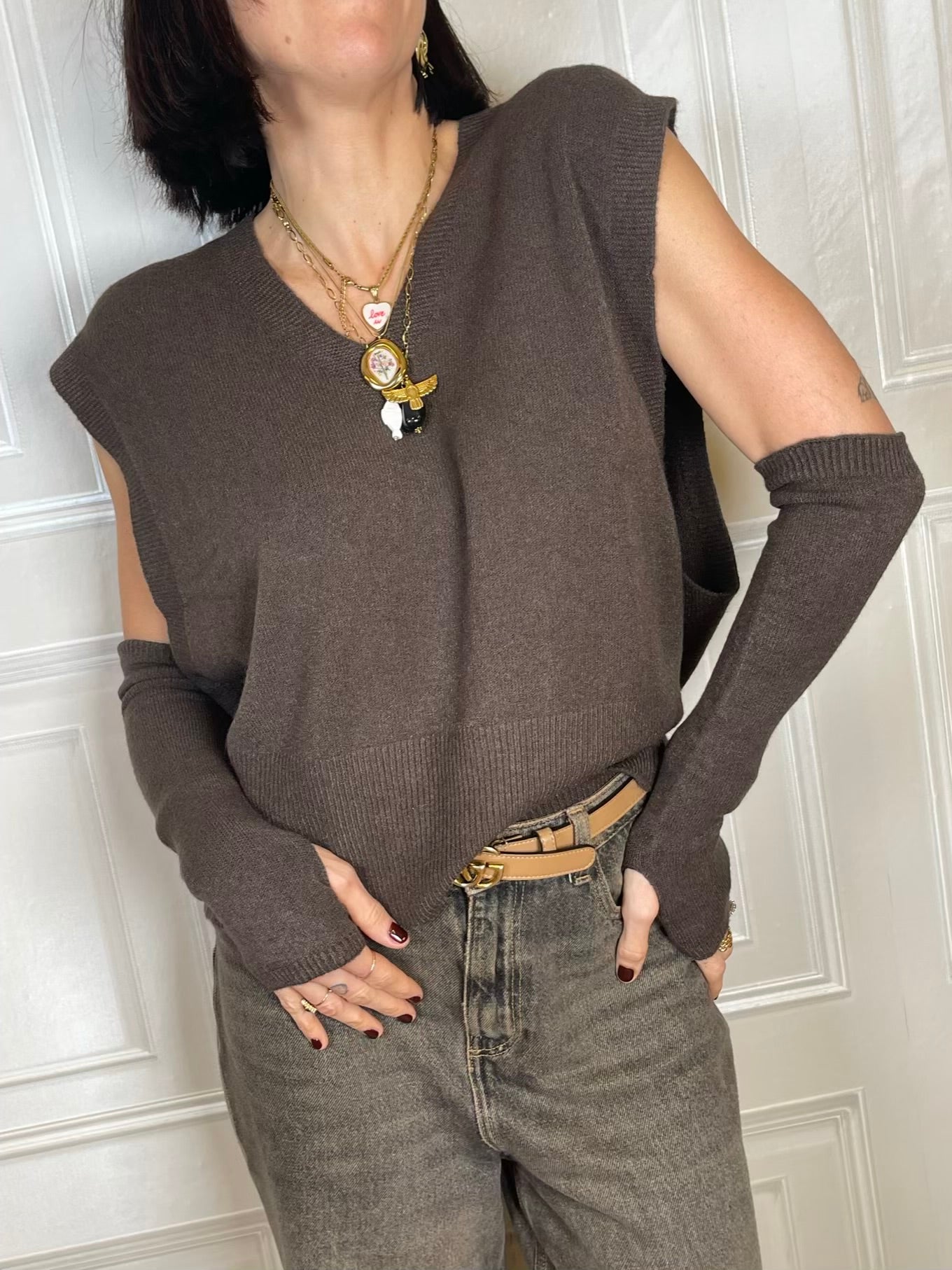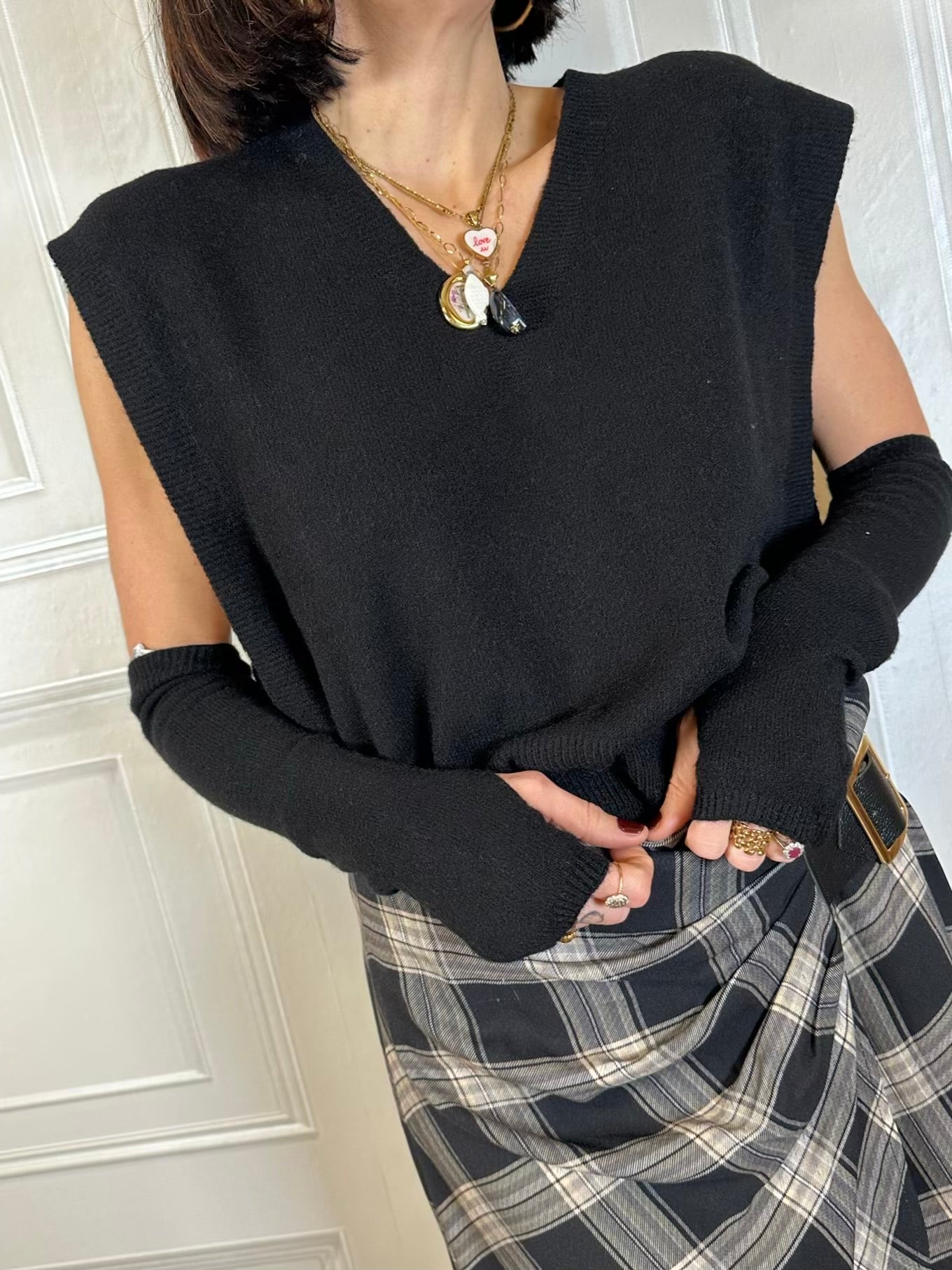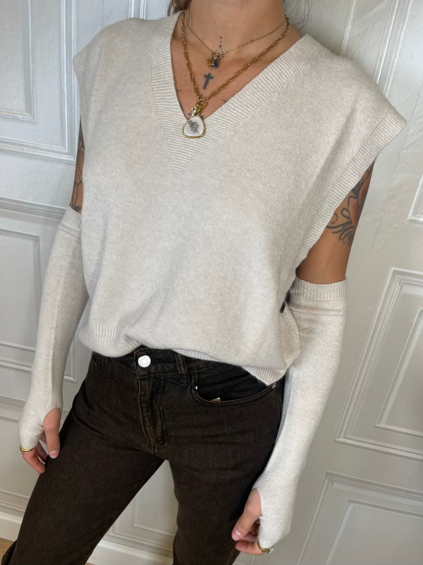 Gilet scollo a V con manicotti. Modello con giromanica ampio.