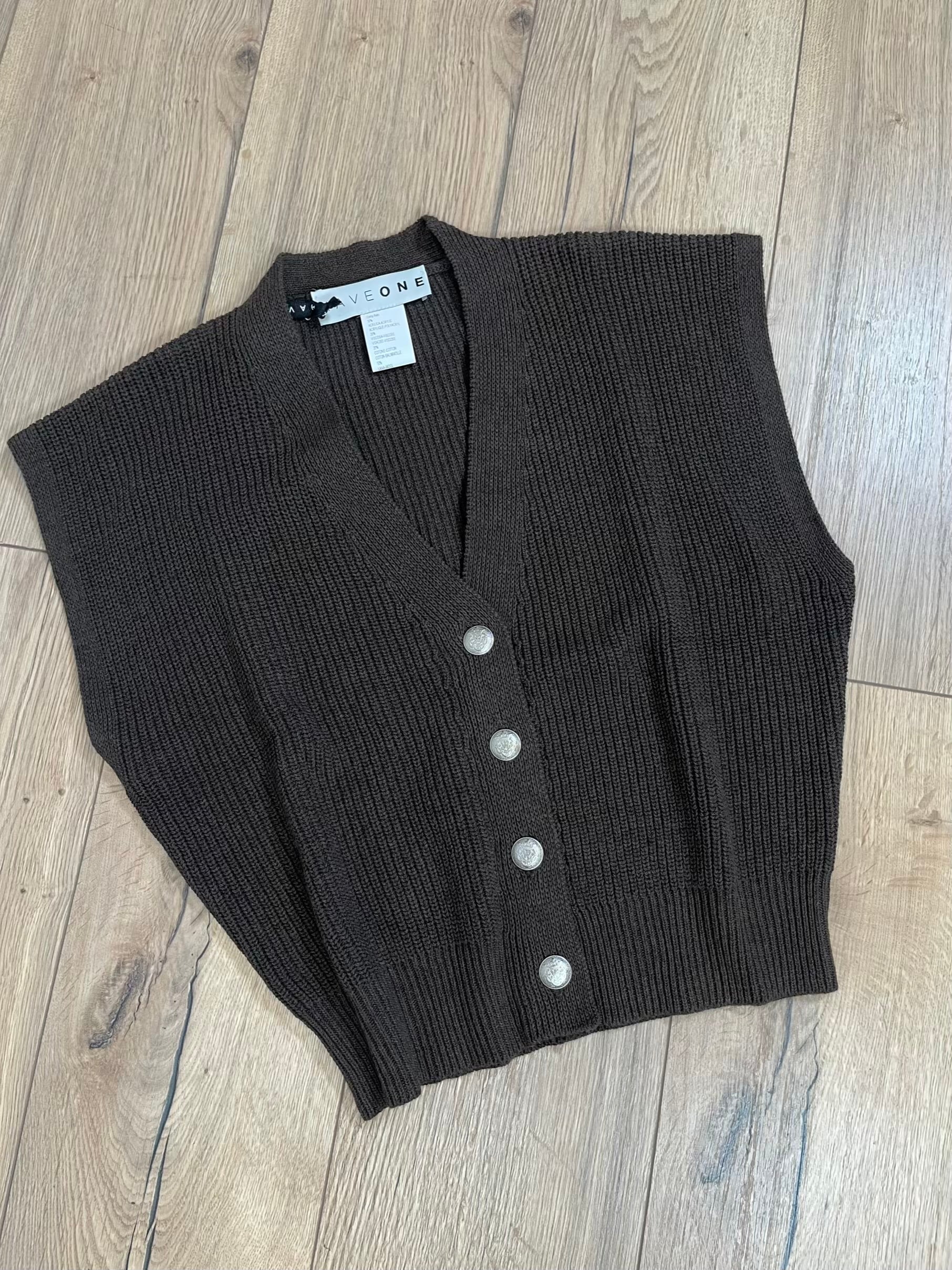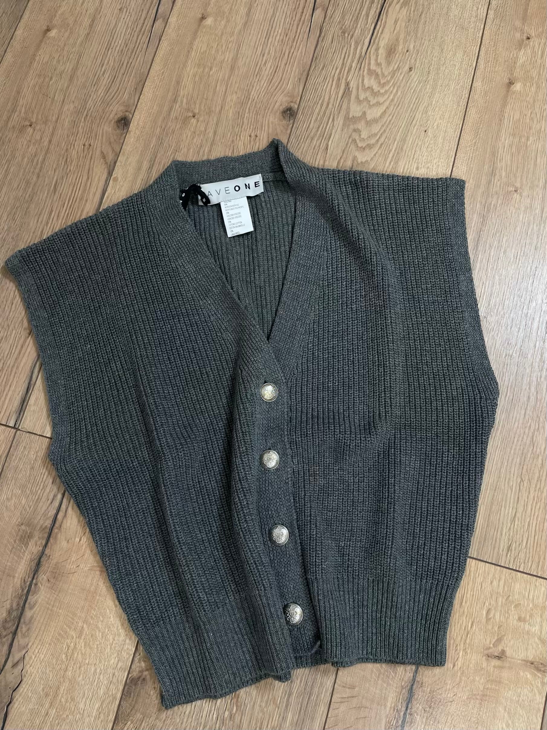 Gilet in maglia con scollo a V. Chiusura con bottoncini. Vestibilità regolare, taglia unica.