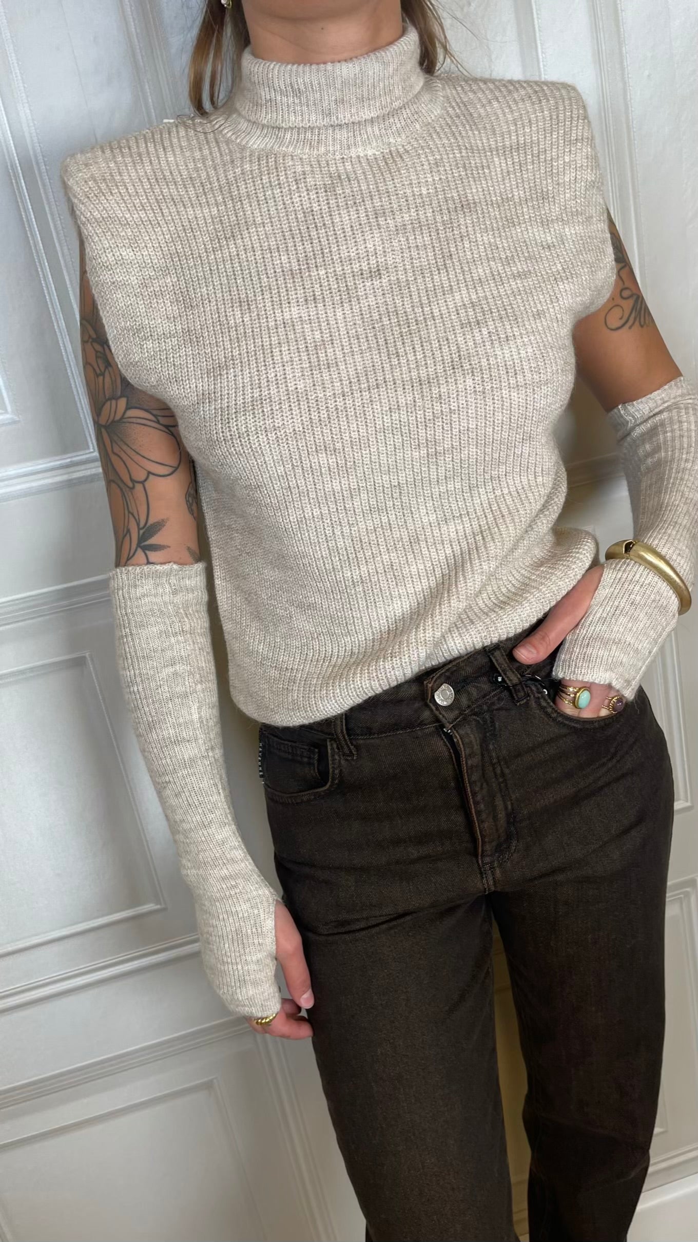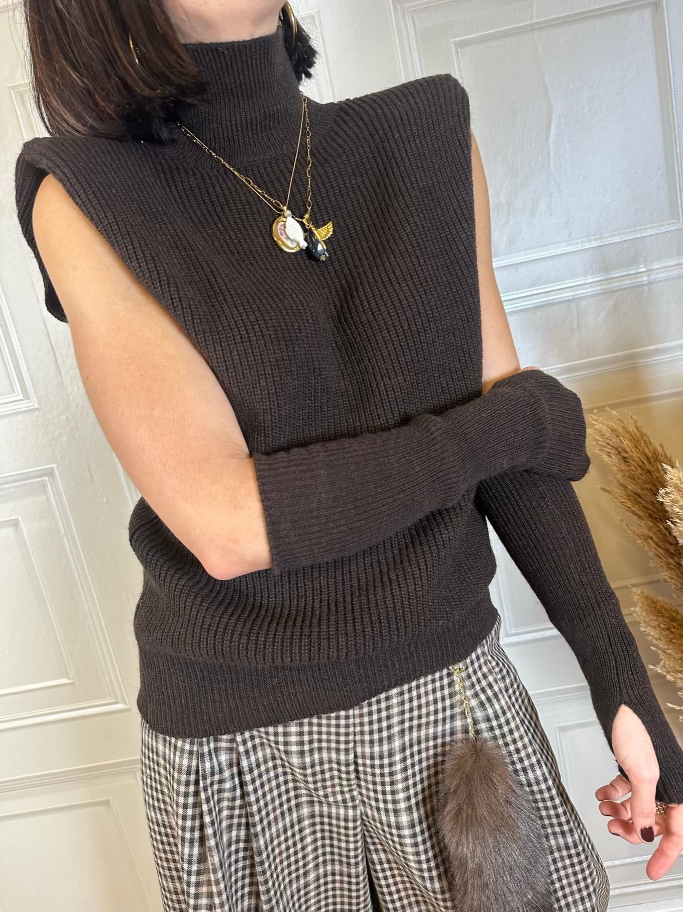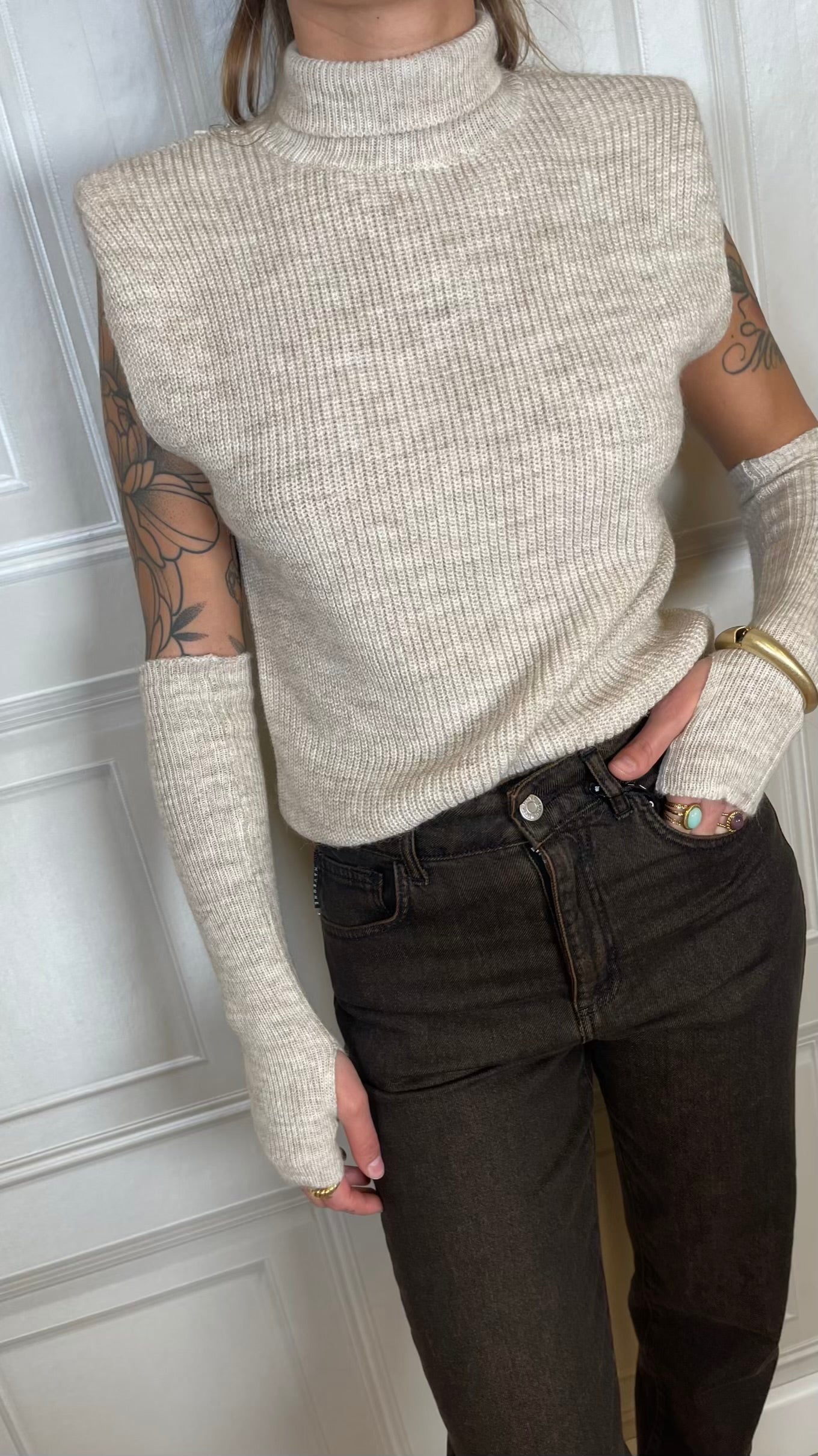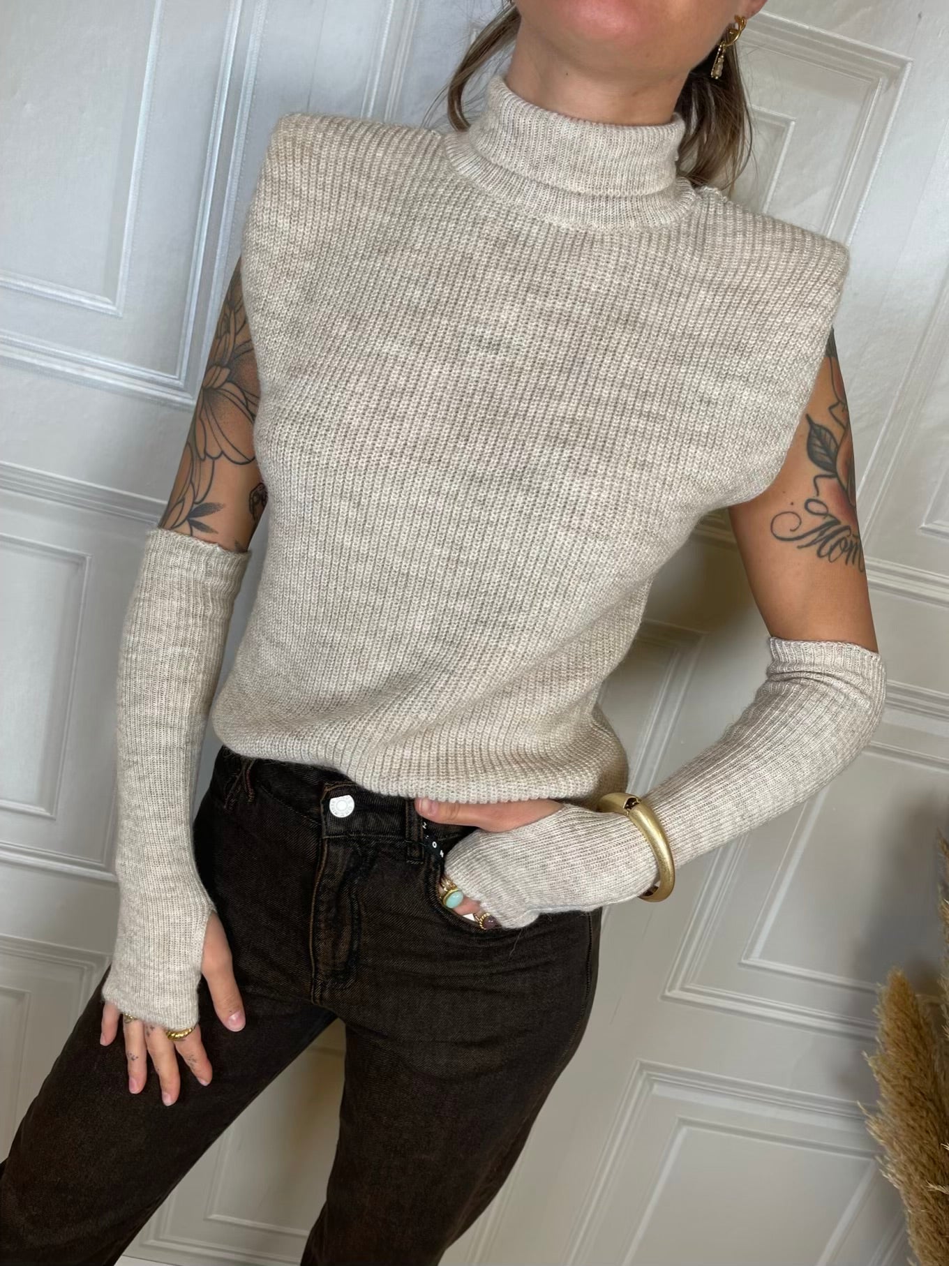 Gilet dolcevita con manicotti. Modello con spallina imbottita