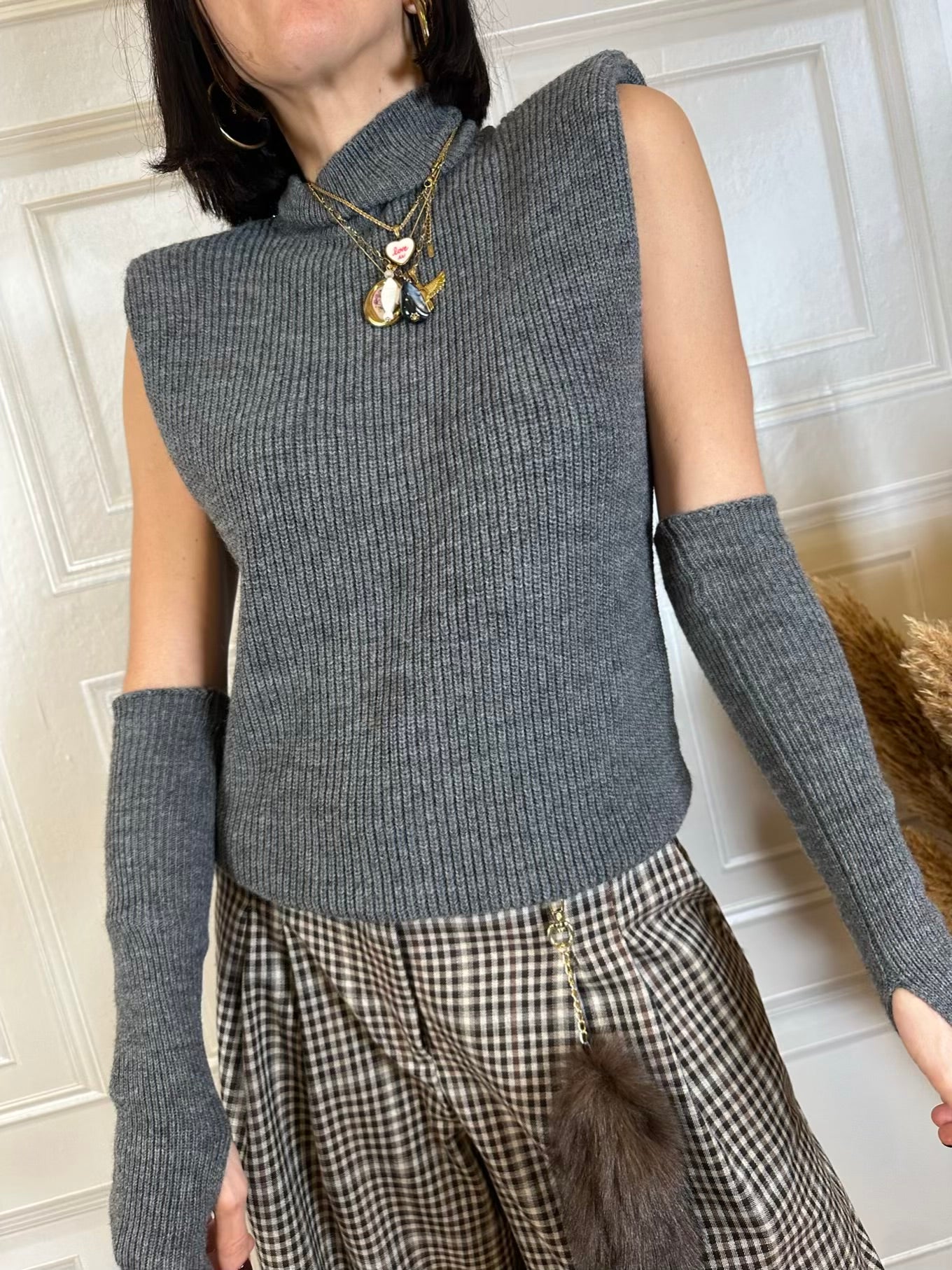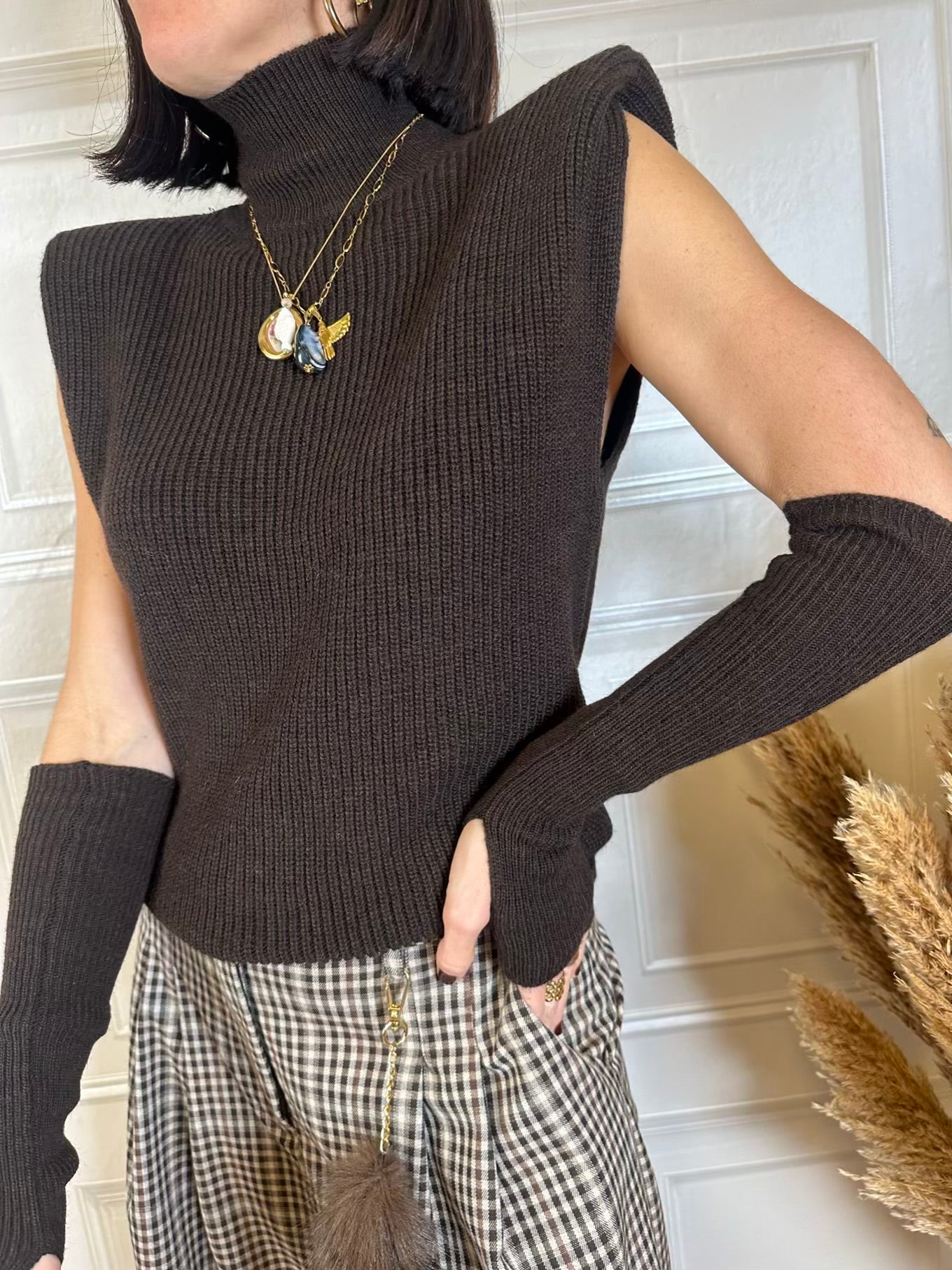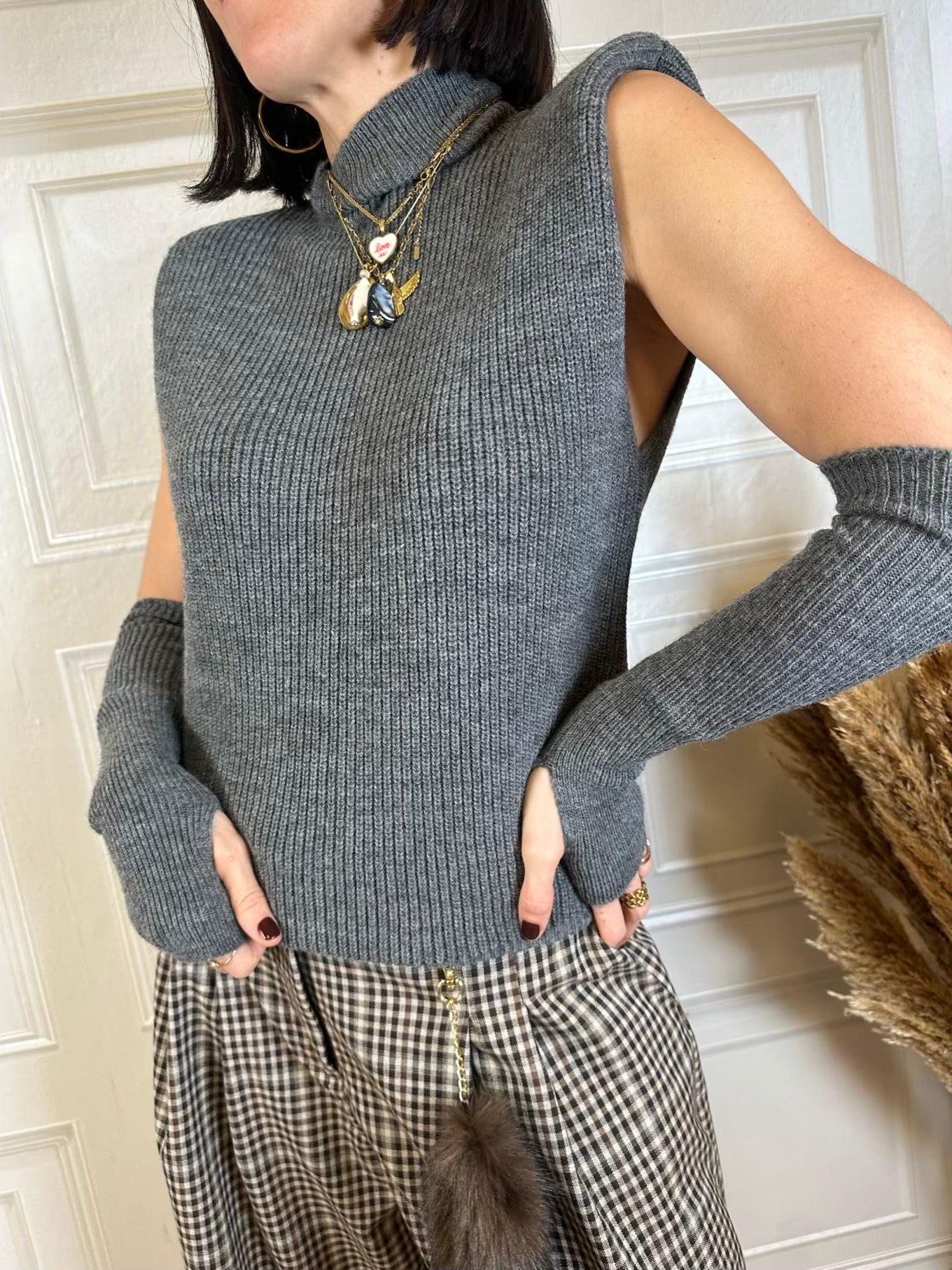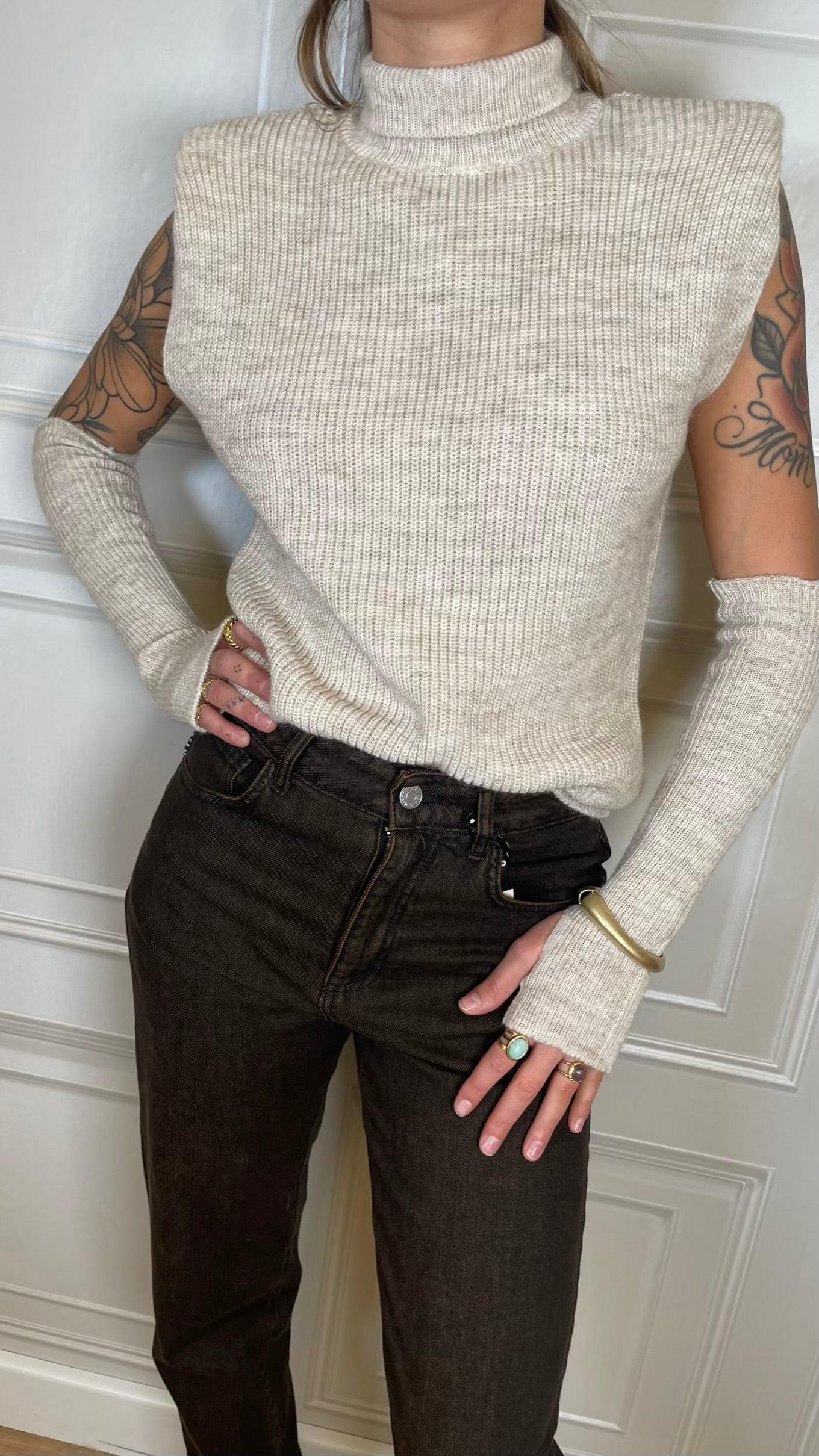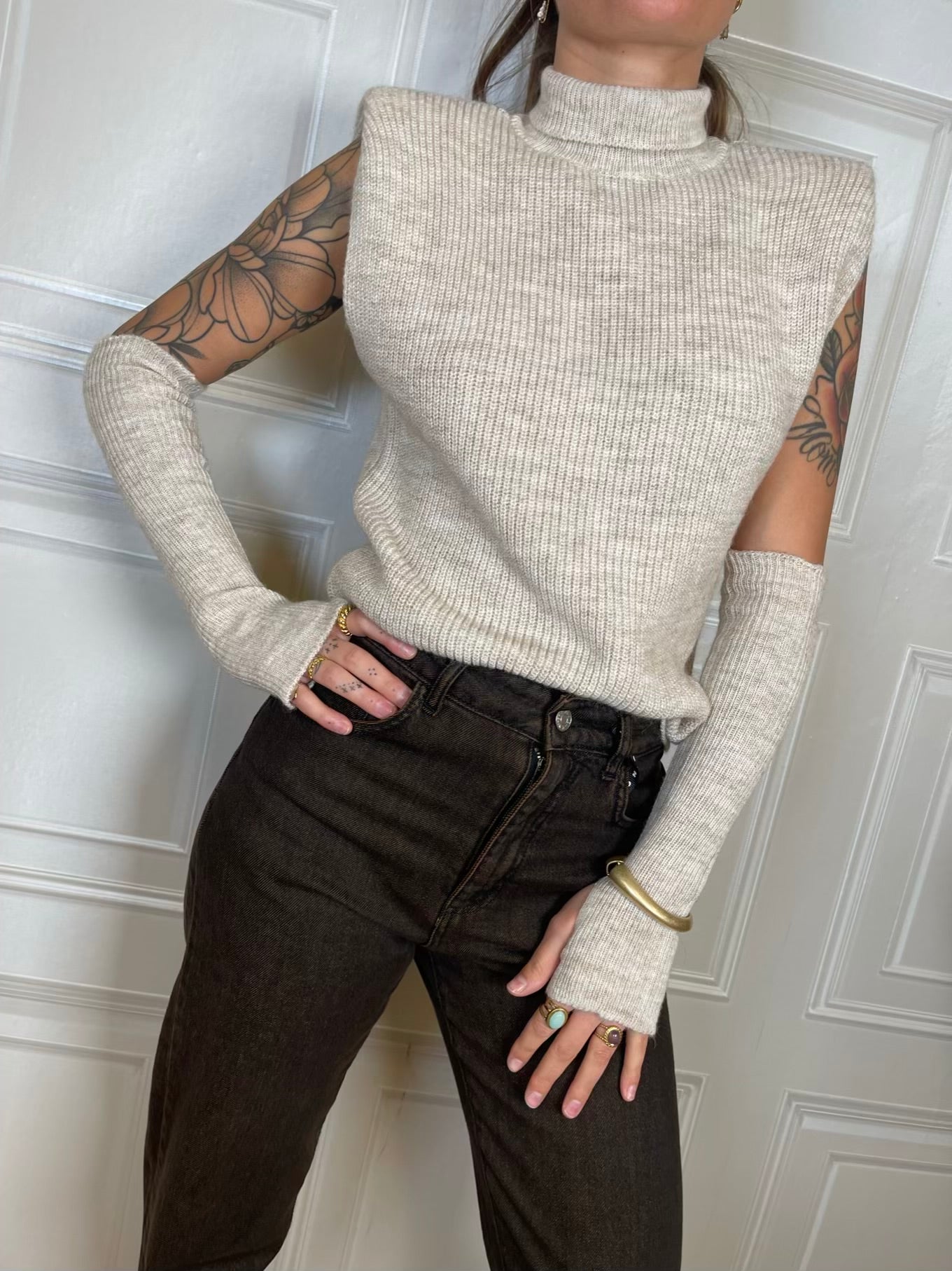 Gilet dolcevita con manicotti. Modello con spallina imbottita