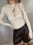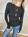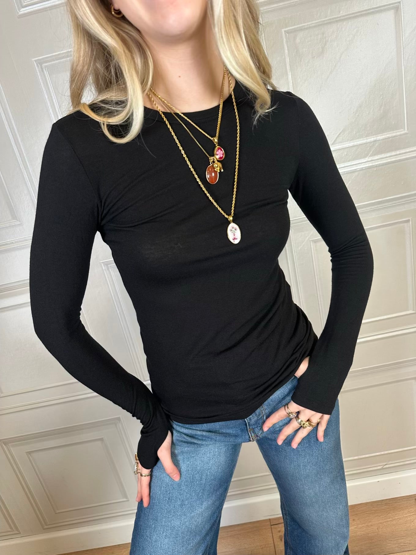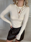 Maglina girocollo misto lana elasticizzato. Modello con manicotti, fit aderente e manica lunga.