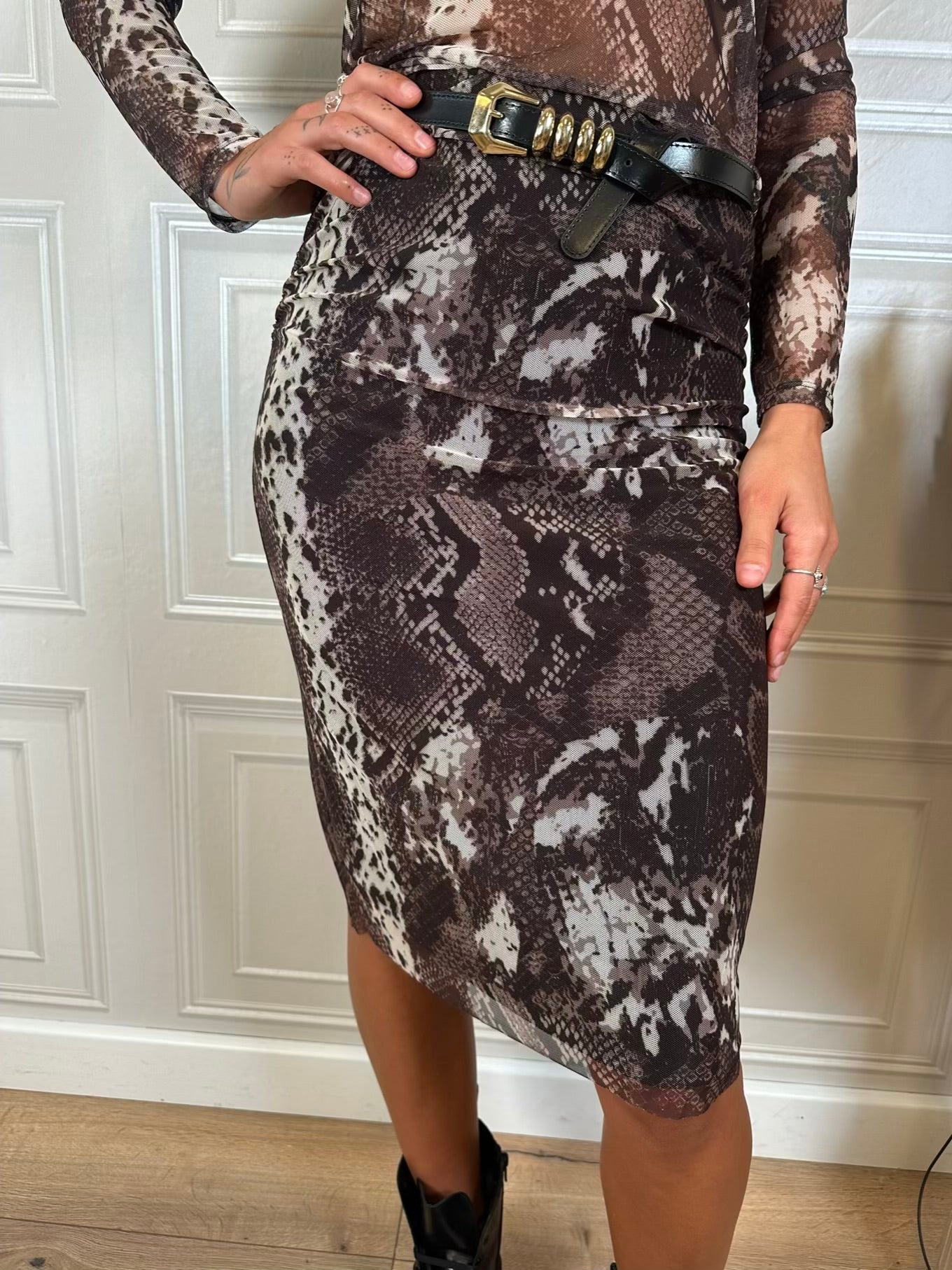 Gonna midi tulle pitonata elasticizzata con sottoveste.