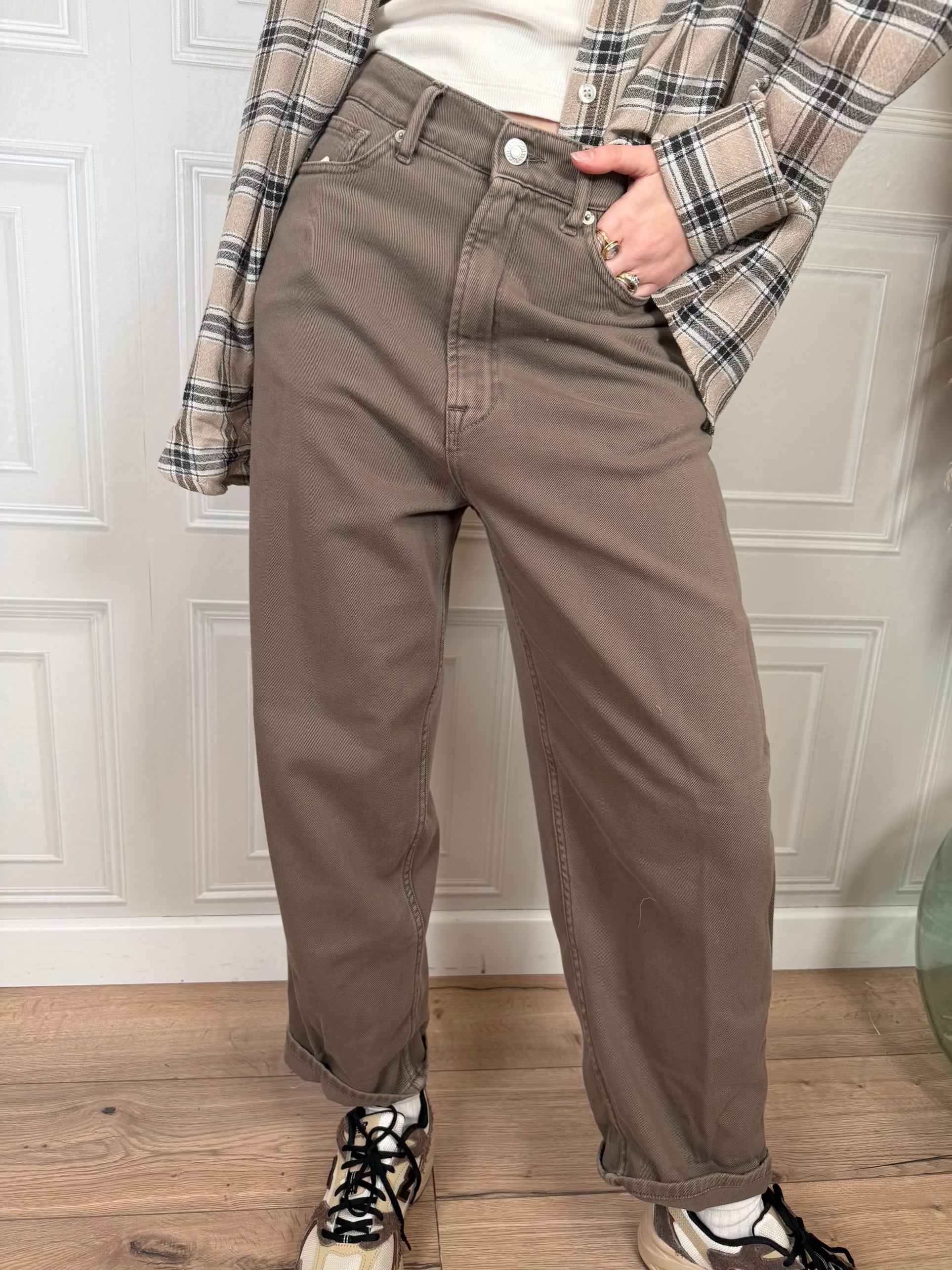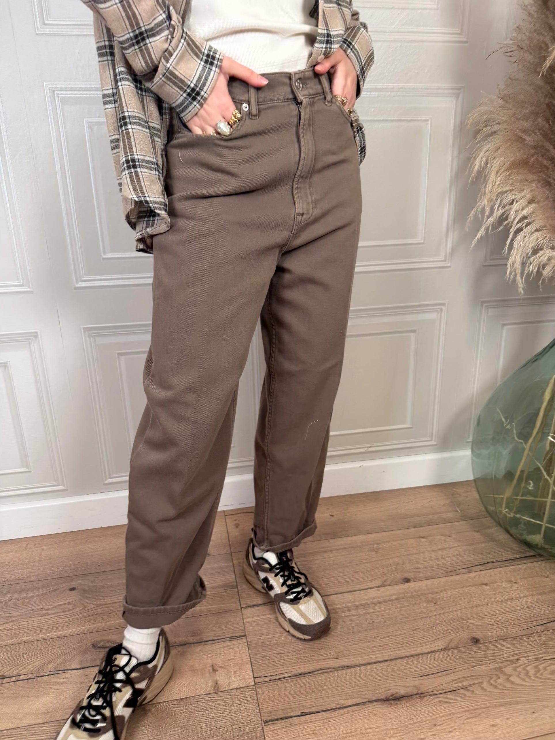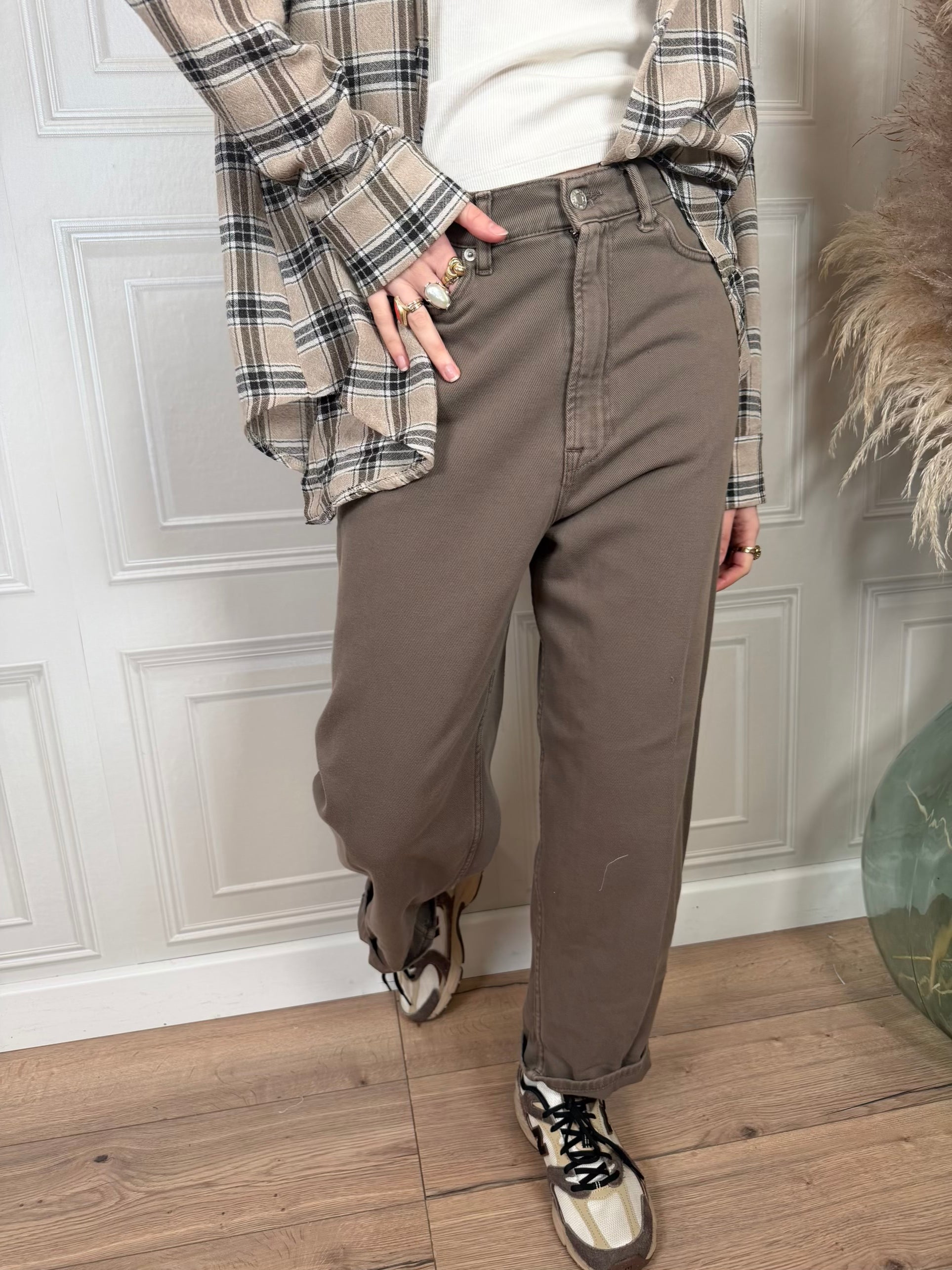Jeans lavaggio tinto capo color fango.