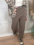 Modello carrot fit realizzati in 100% cotone. a cinque tasche con chiusura frontale tramite zip e bottone, caratterizzato da volumi morbidi sul fianco e gamba leggermente affusolata.