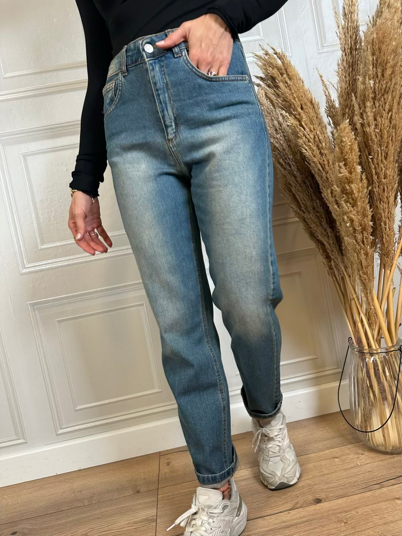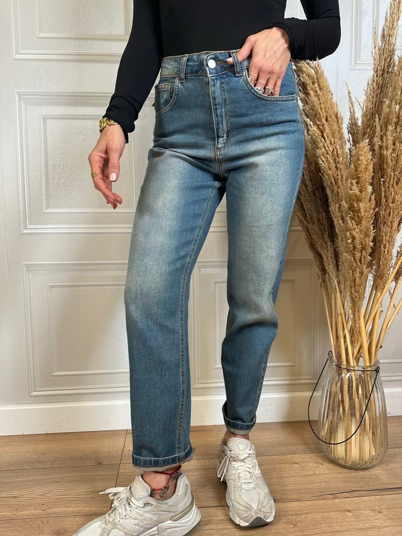 Jeans Louis lavaggio medio scuro, modello mom fit a vita alta.