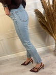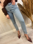 Jeans skinny chiaro, leggermente elasticizzato, modello 5 tasche aderente a vita medio alta.