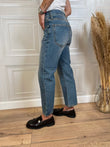 Dotato di 5 tasche chiusura con bottone. Vita bassa.