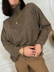 Lupetto over con spacchi sui polsi e spacchi laterali. Modello con collo a lupetto, leggermente più lungo sul retro. Taglia unica, vestibilità over.