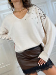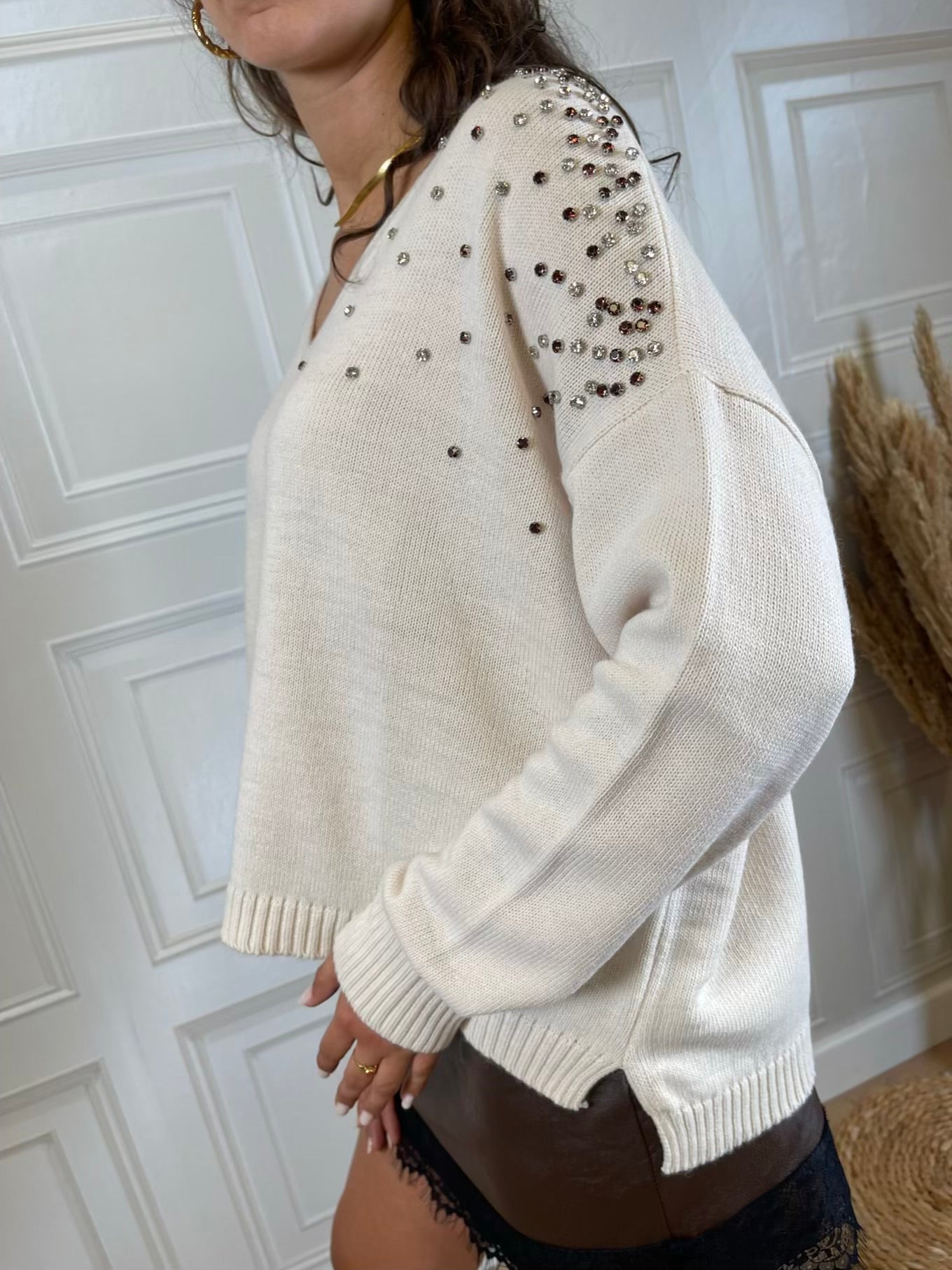 Maglia con scollo a V con dettaglio di strass sulla spalla.