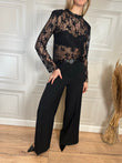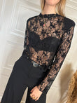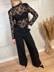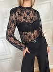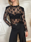 Maglia pizzo con manica lunga. Modello crop con spalline imbottite removibili.