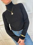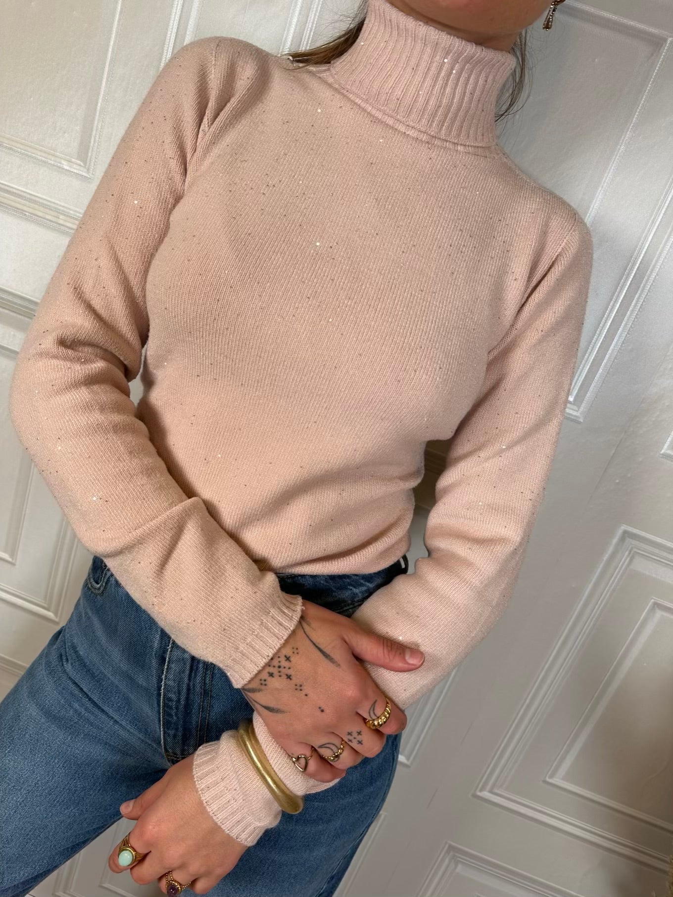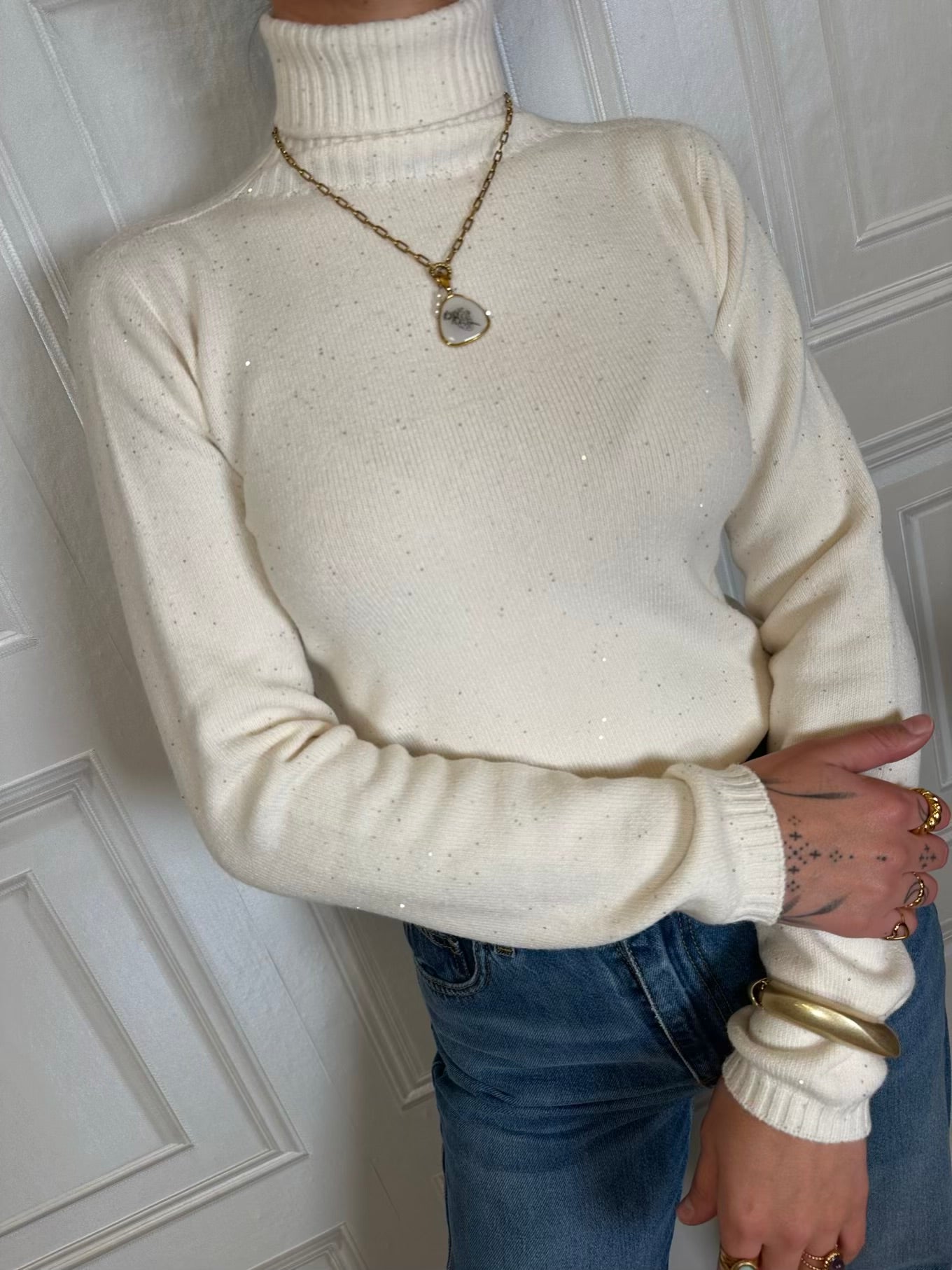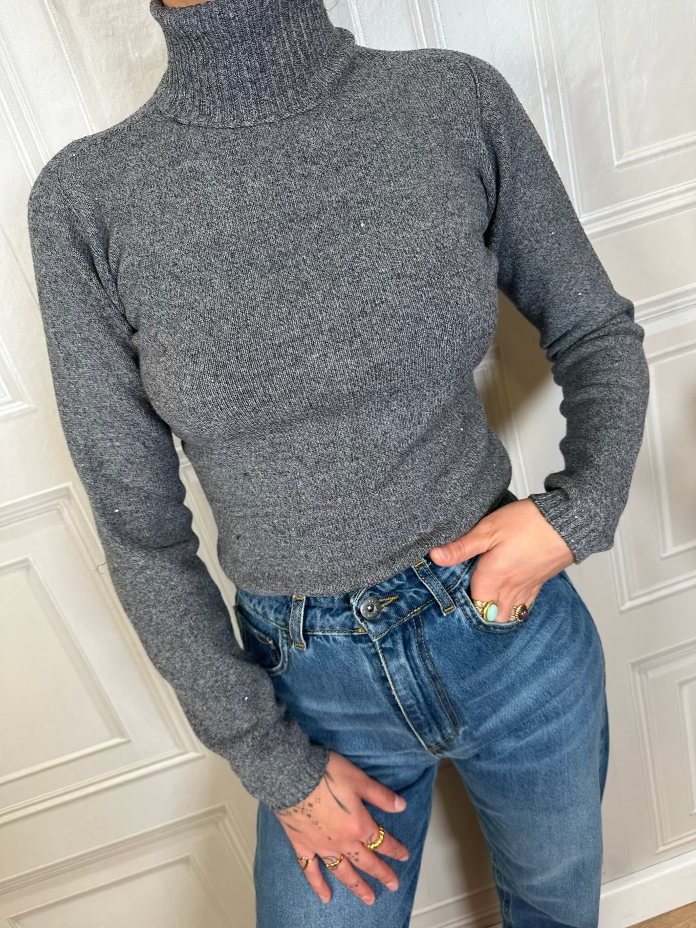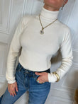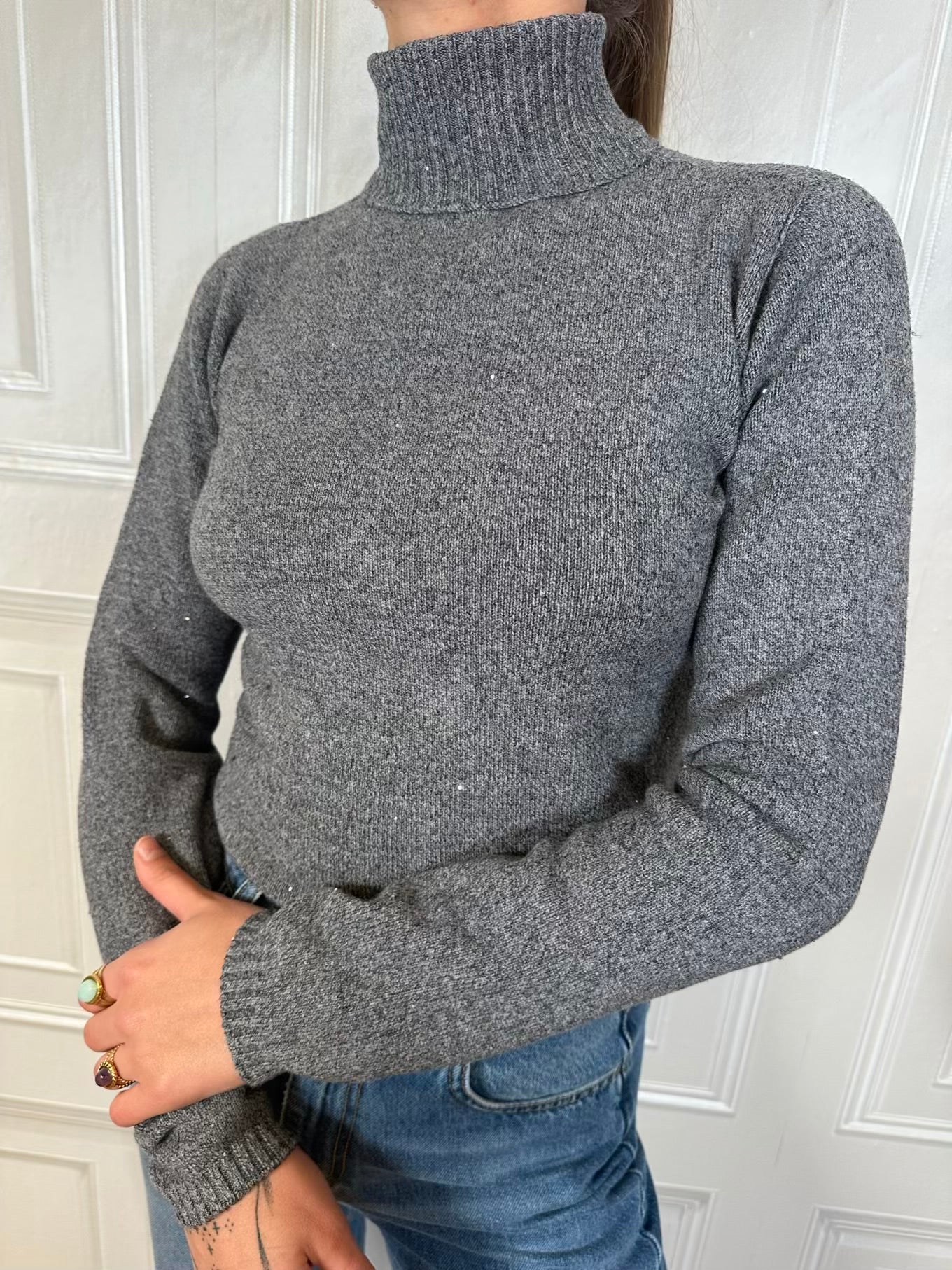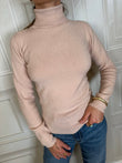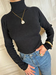 Modello dolcevita, con manica lunga. Fondo, collo e polsino a coste.