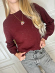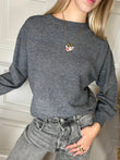 Maglia girocollo con micropaillettes. Modello leggermente morbido con con costine su collo, polsini e fondo. Taglia unica, vestibilità regolare.
