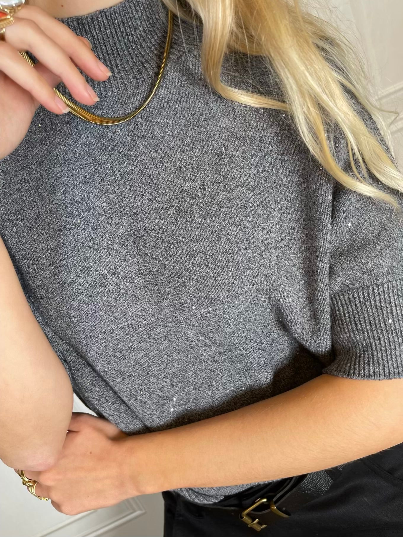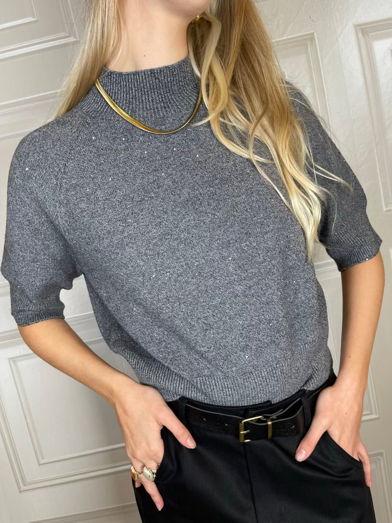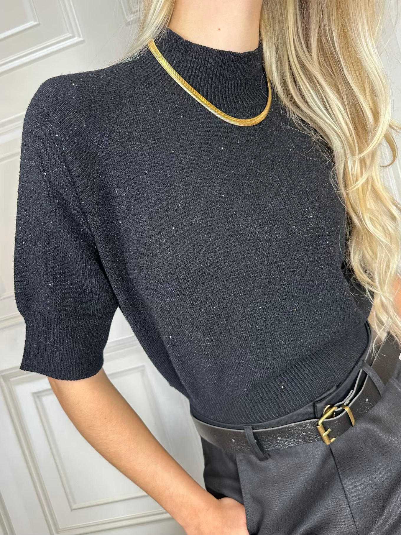 Maglia lupetto manica corta micro paillettes - Kontatto