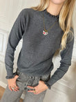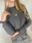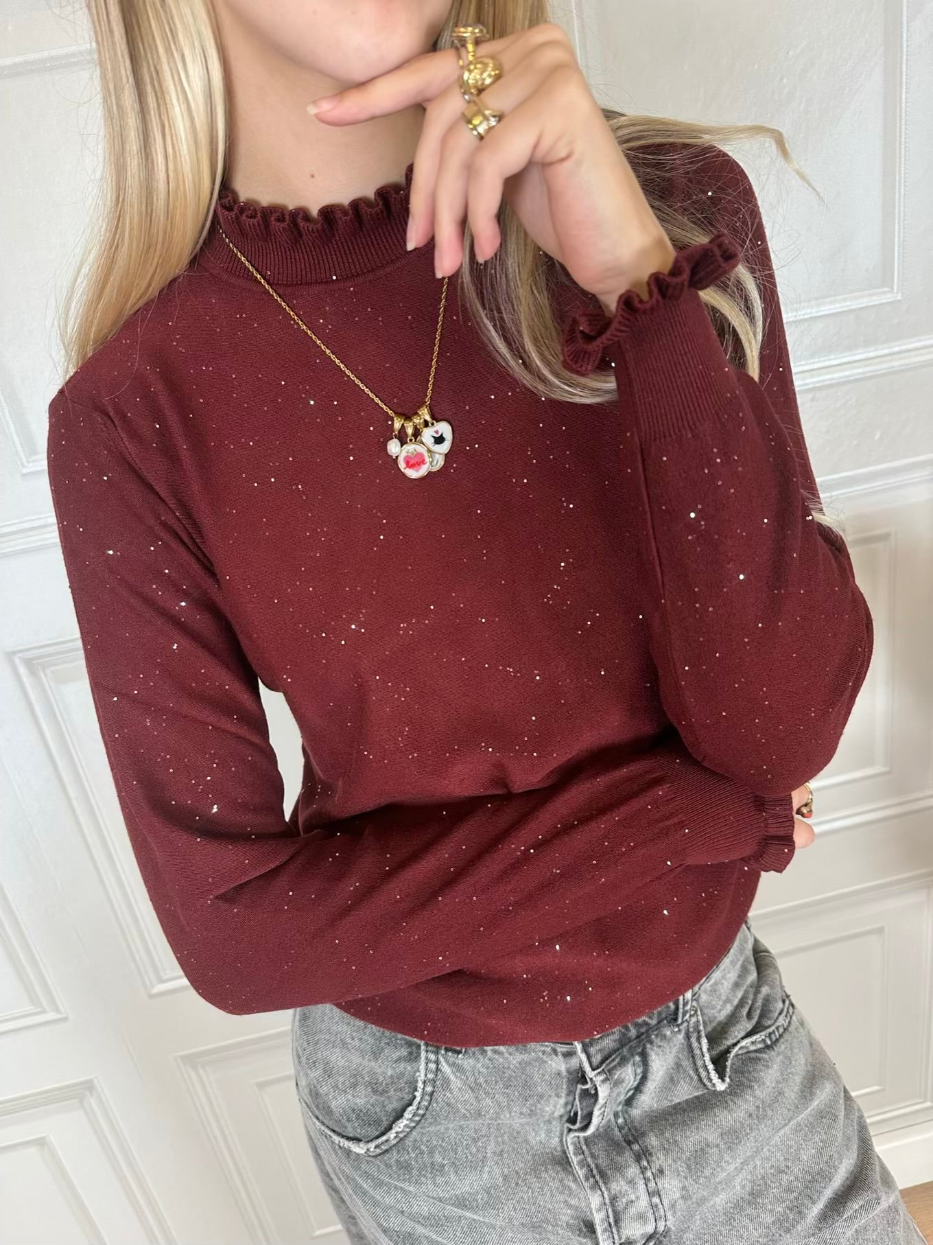 Maglia lupetto con micropaillettes. Modello con rouches su collo e polsini. Taglia unica, vestibilità regolare.