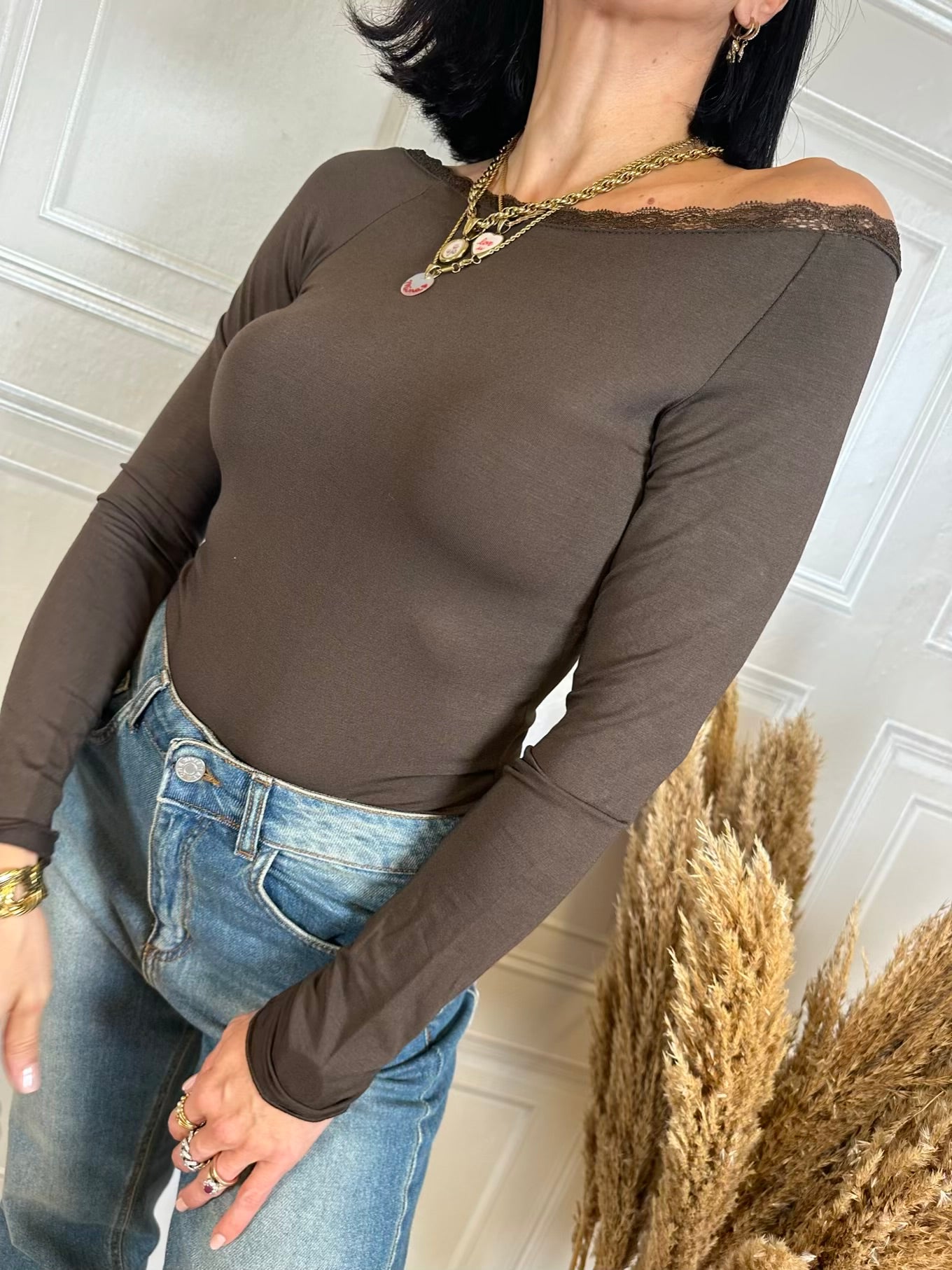 Maglia scollo shiffer con dettaglio di pizzo. Modello a manica lunga.Taglia unica. Vestibilità regolare.