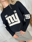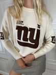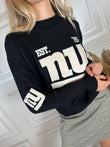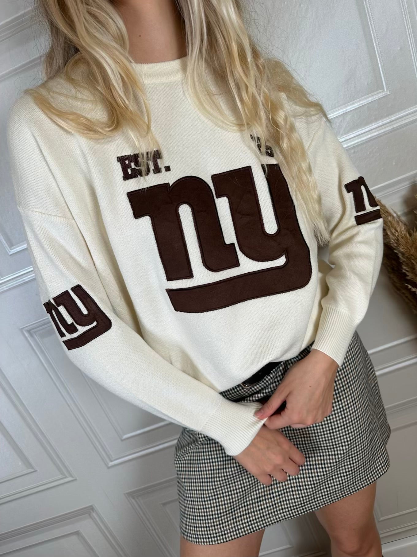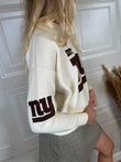 Maglioncino viscosa a girocollo con stampe sul davanti e sulle maniche.