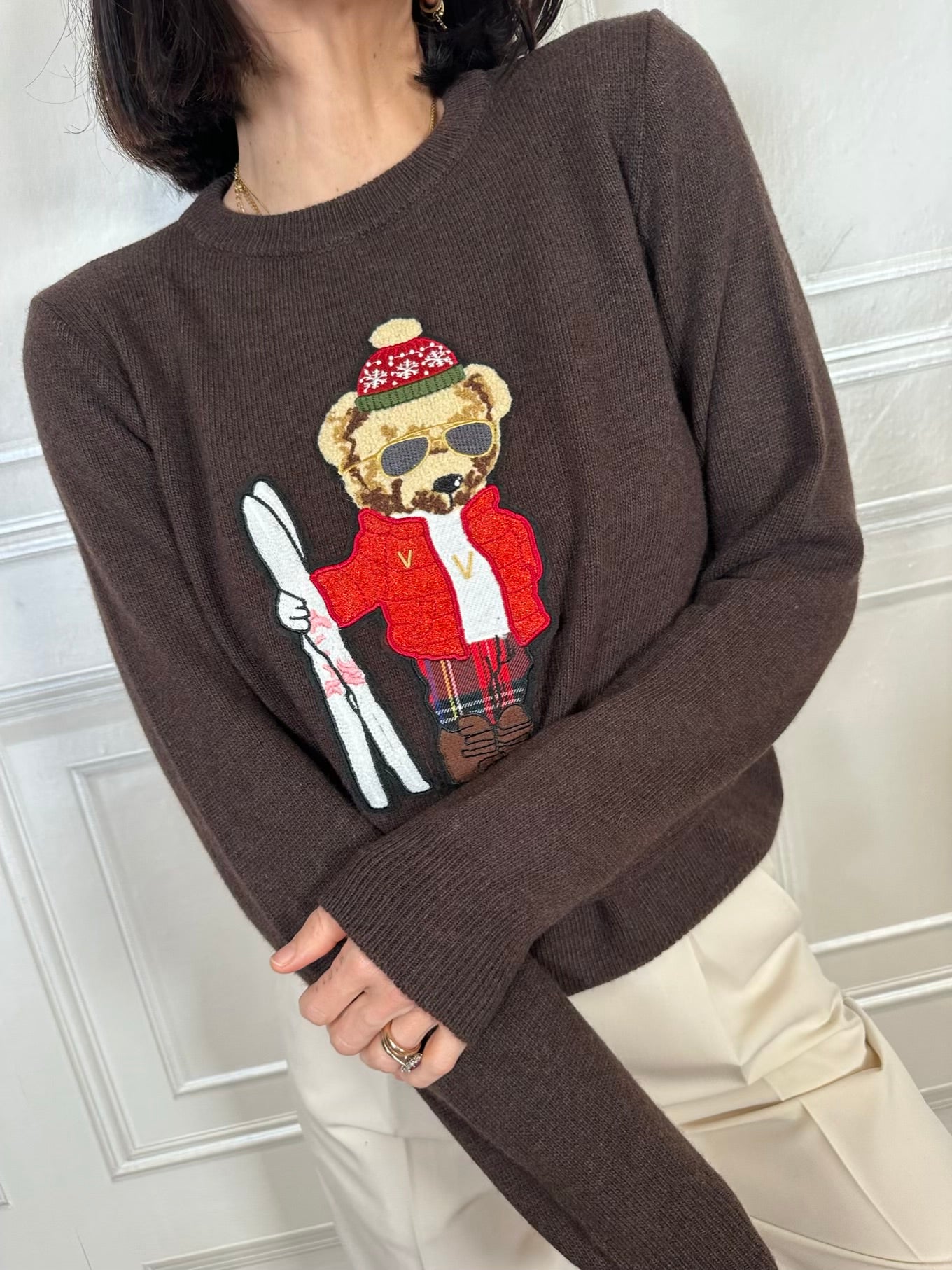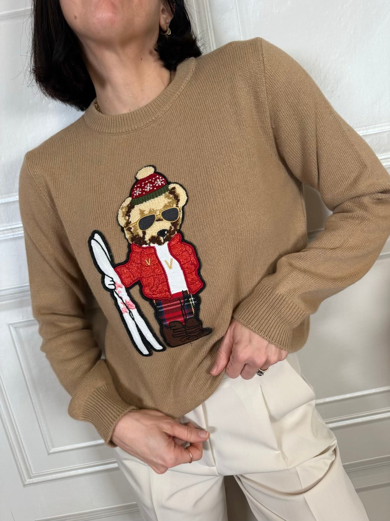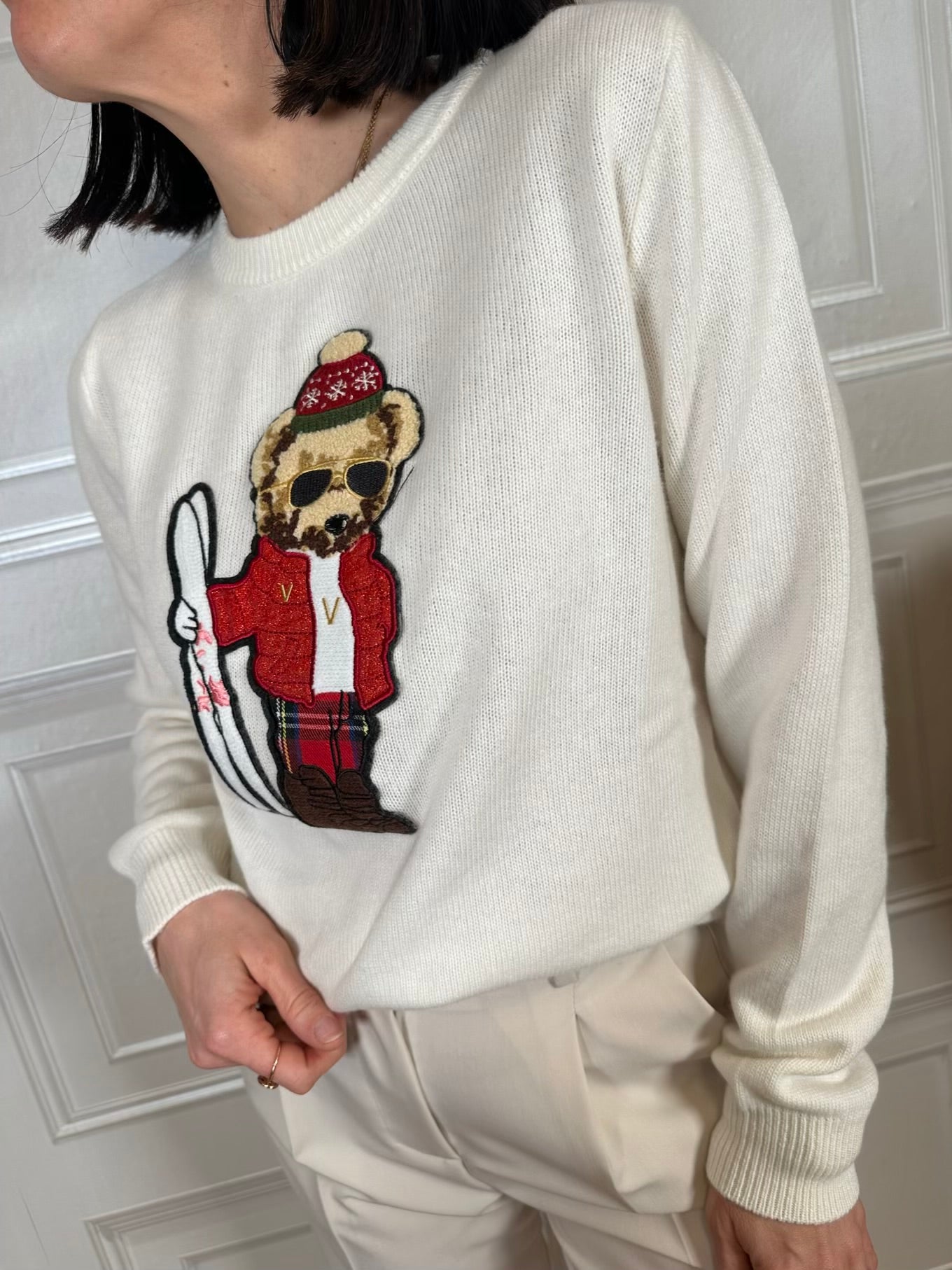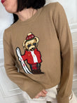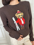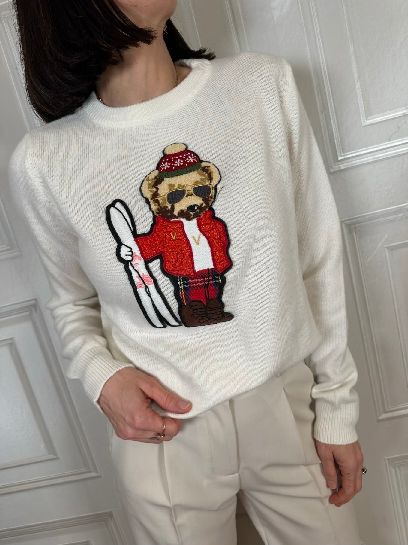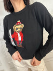 Maglione con stampa orsetto sciatore. Taglia unica, vestibilità regolare.
