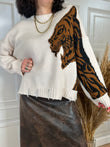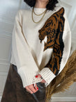 Maglione over a girocollo con tigre sul davanti e manica.