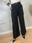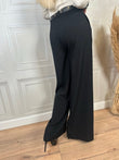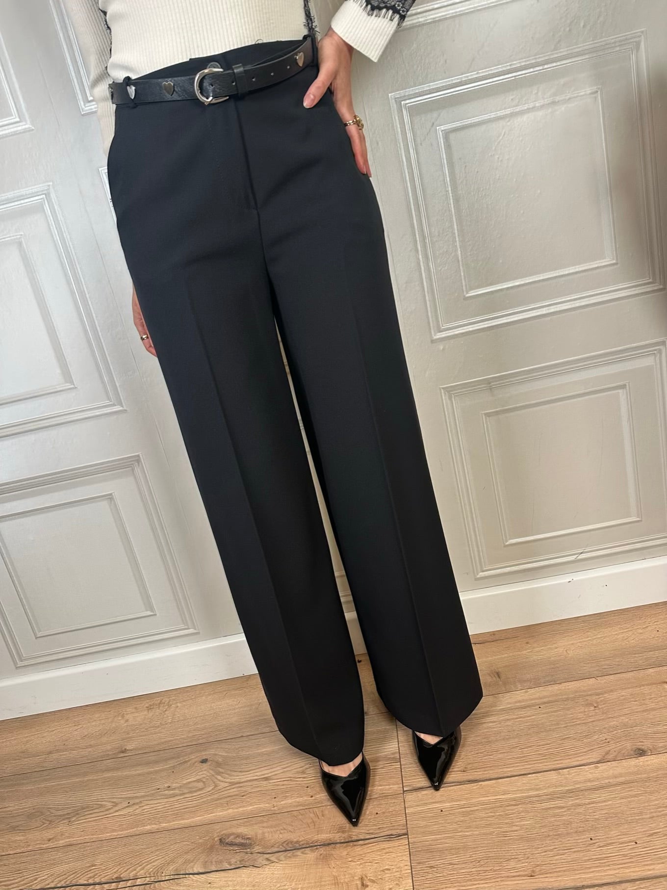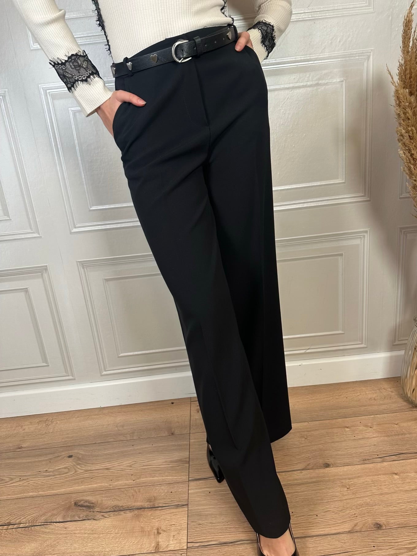 Pantalone color nero Haveone. Modello a palazzo in polyviscosa con tasche laterali, chiusura con zip e bottone.