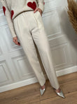Pantalone a tubo con piega frontale. Chiusura con zip e bottone. Tasche laterali alla francese. Passanti in vita. Tasca posteriore a filetto.
