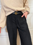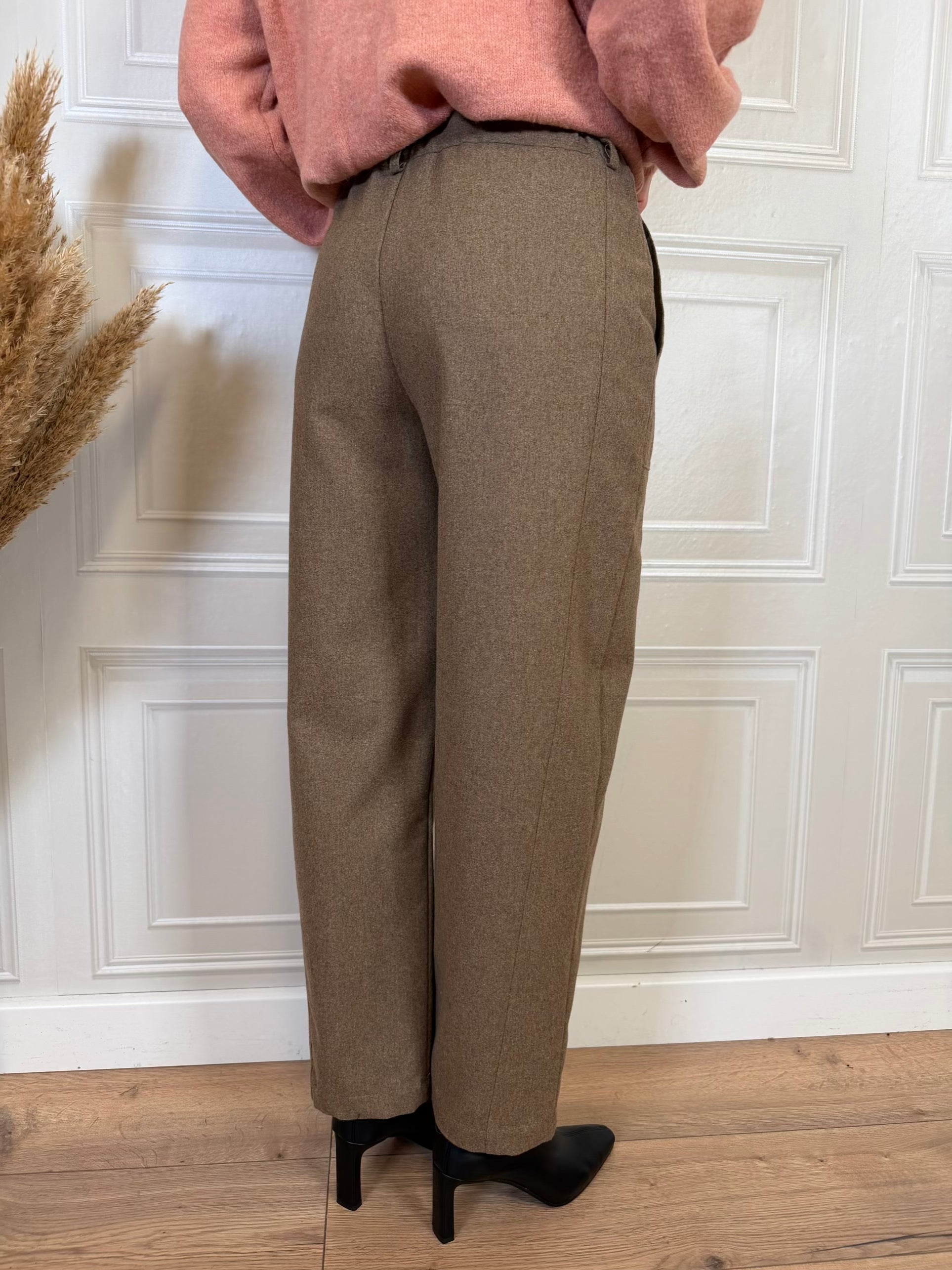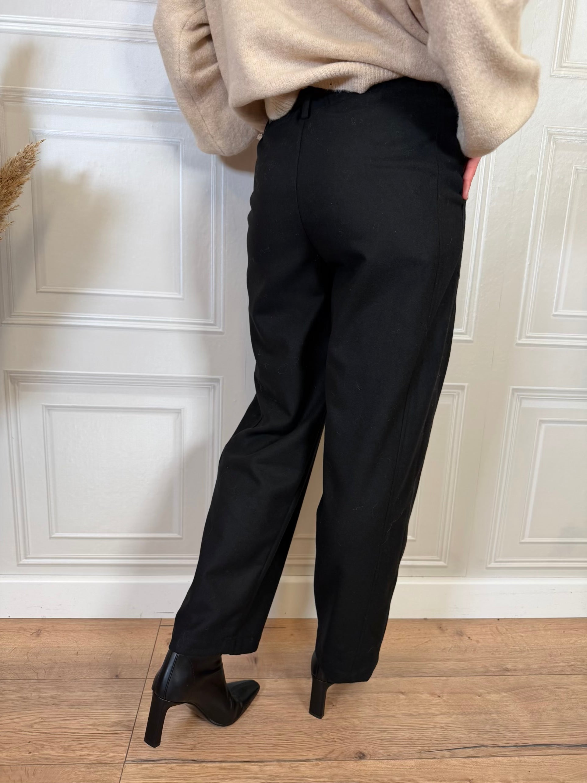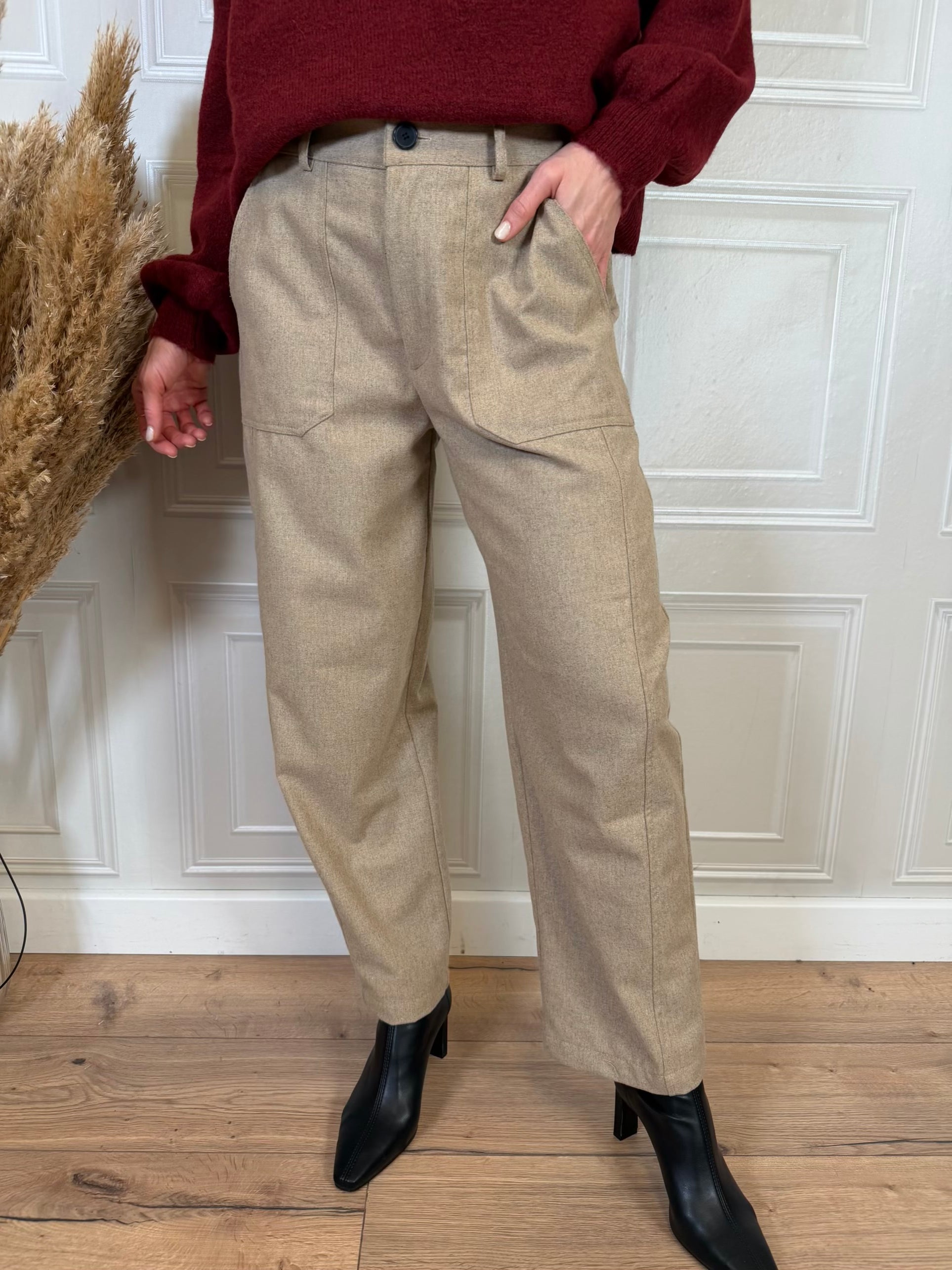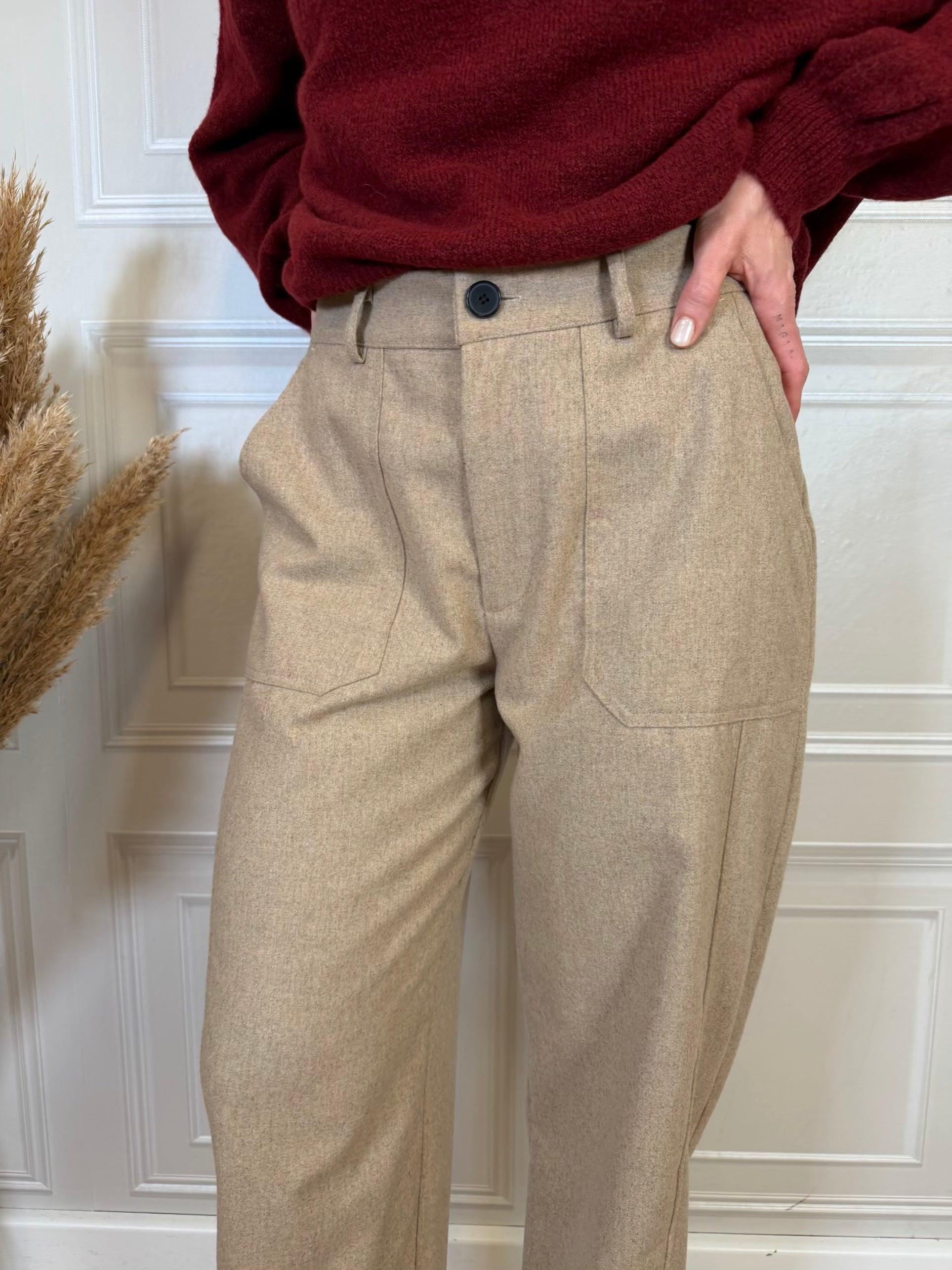 Pantaloni in flanella. Modello carrot con tasconi laterali. In foto taglia S, vestibilità regolare.