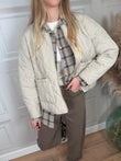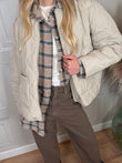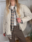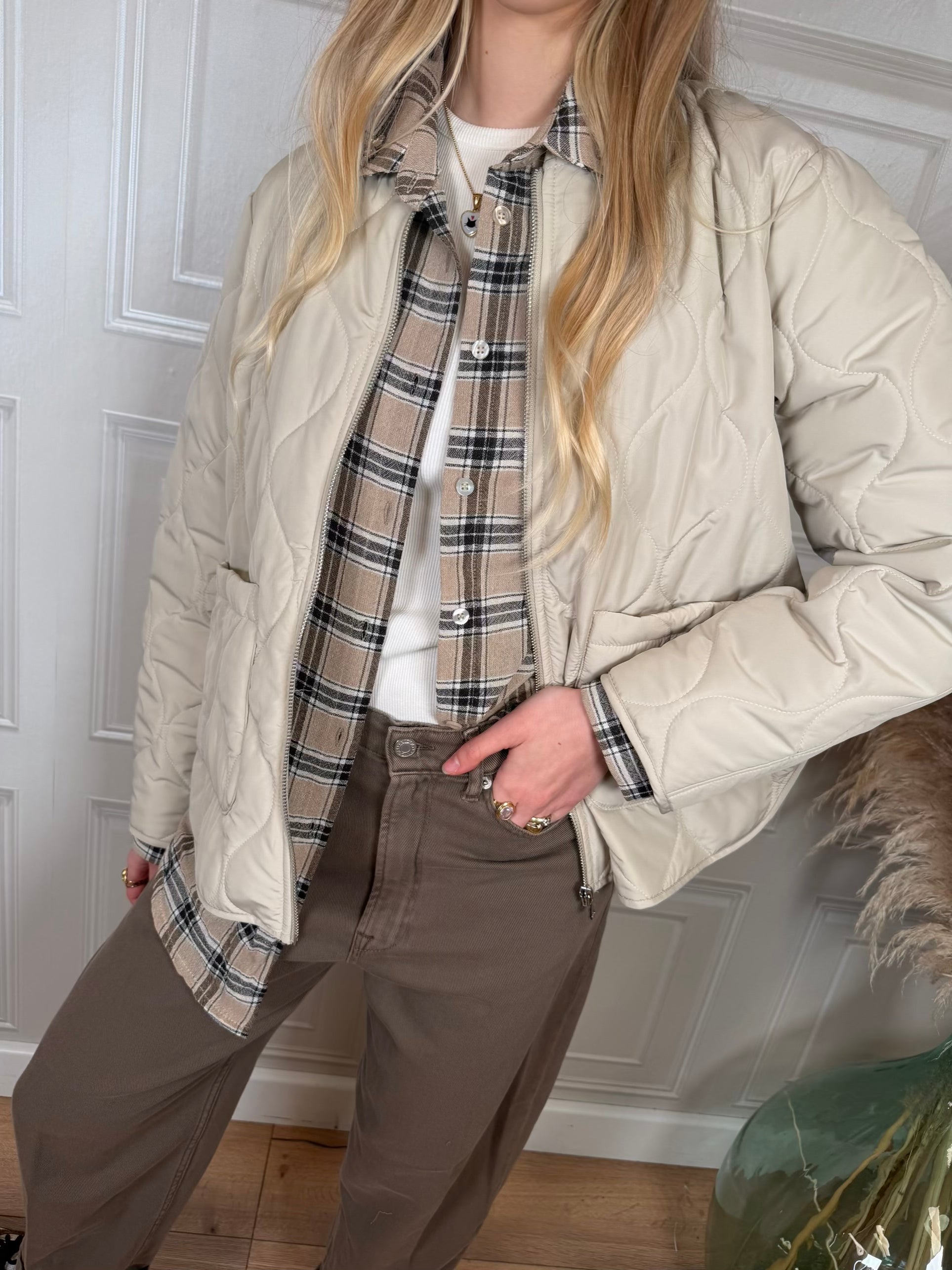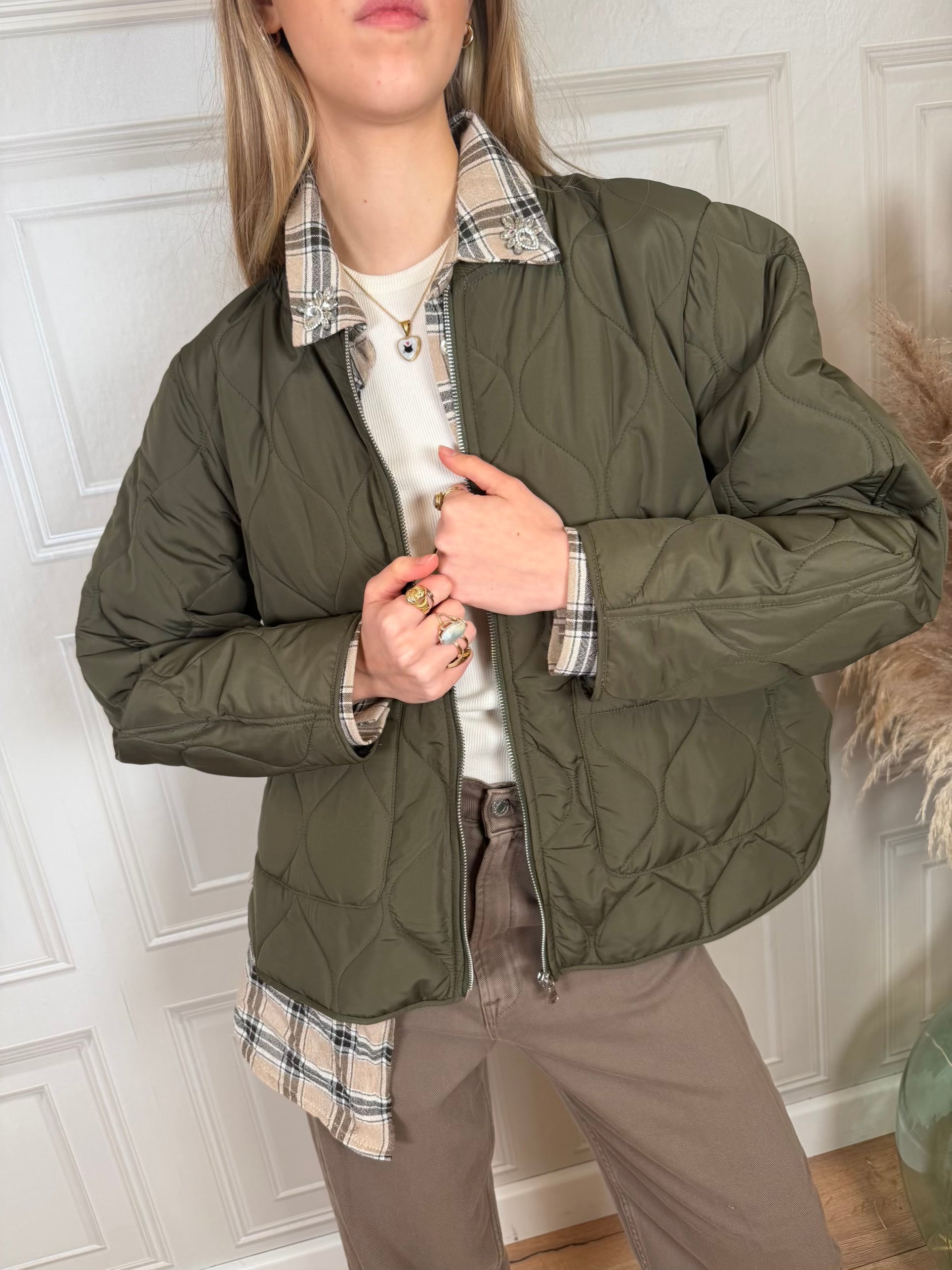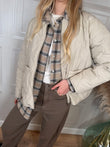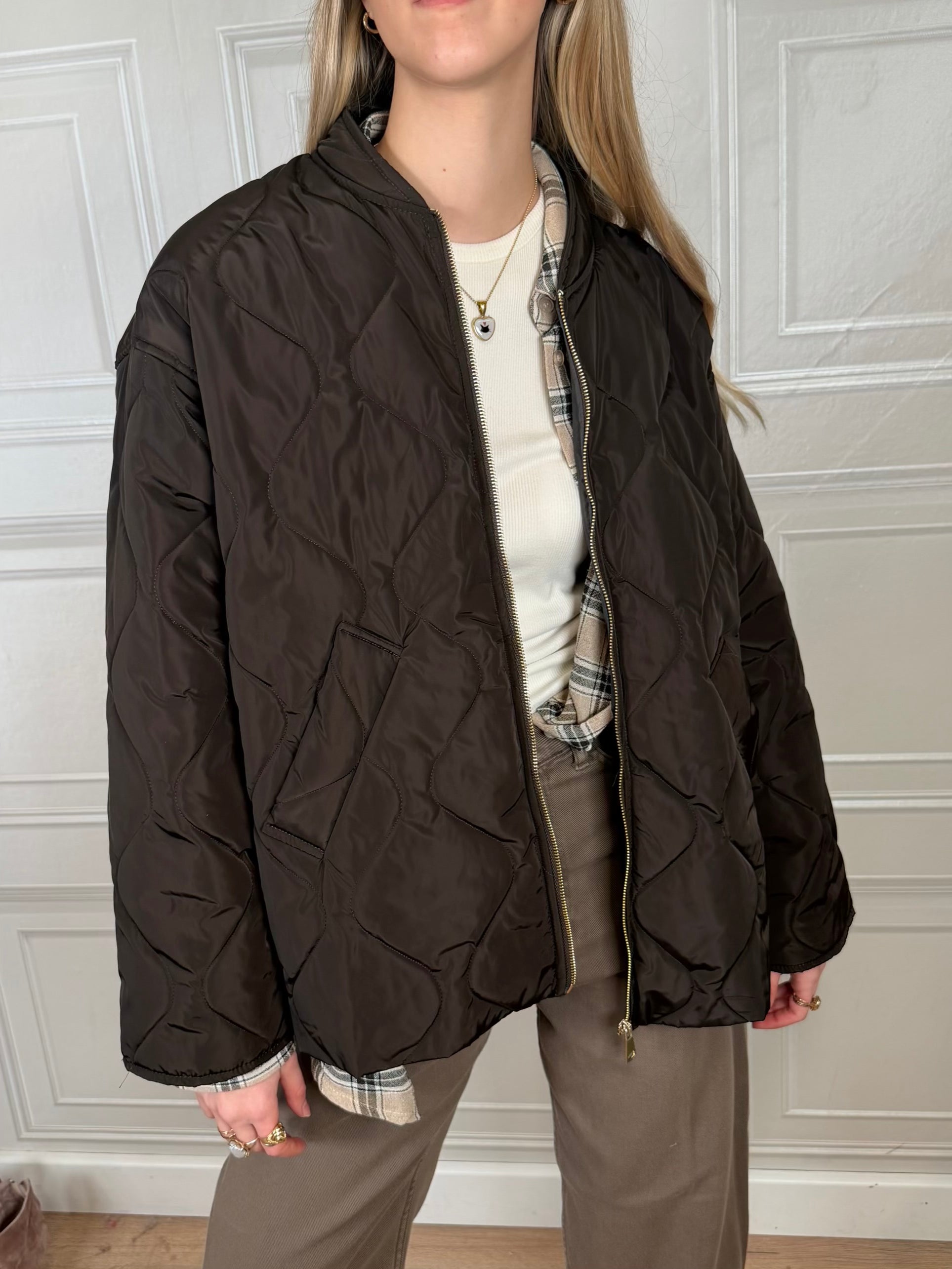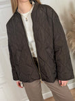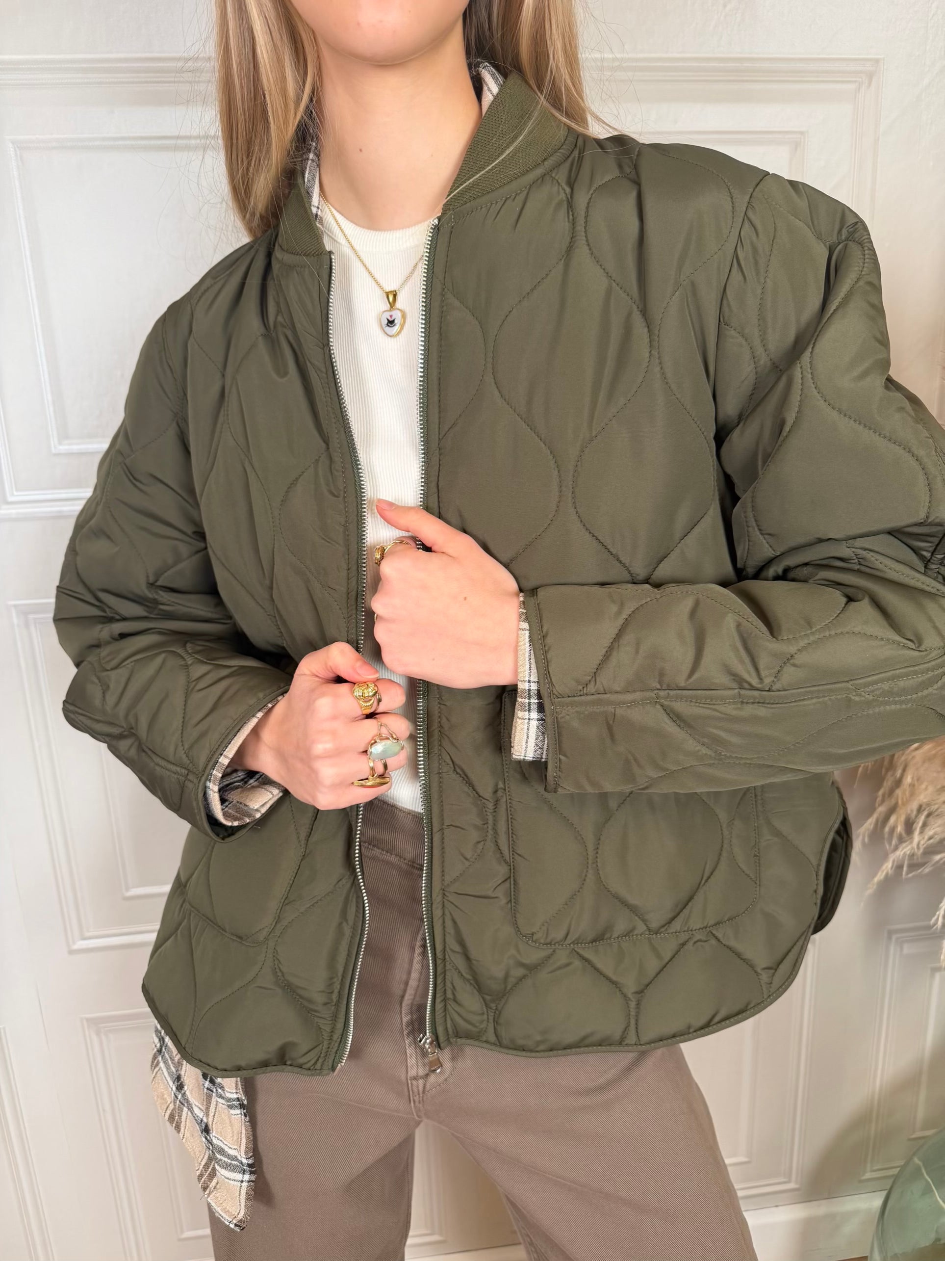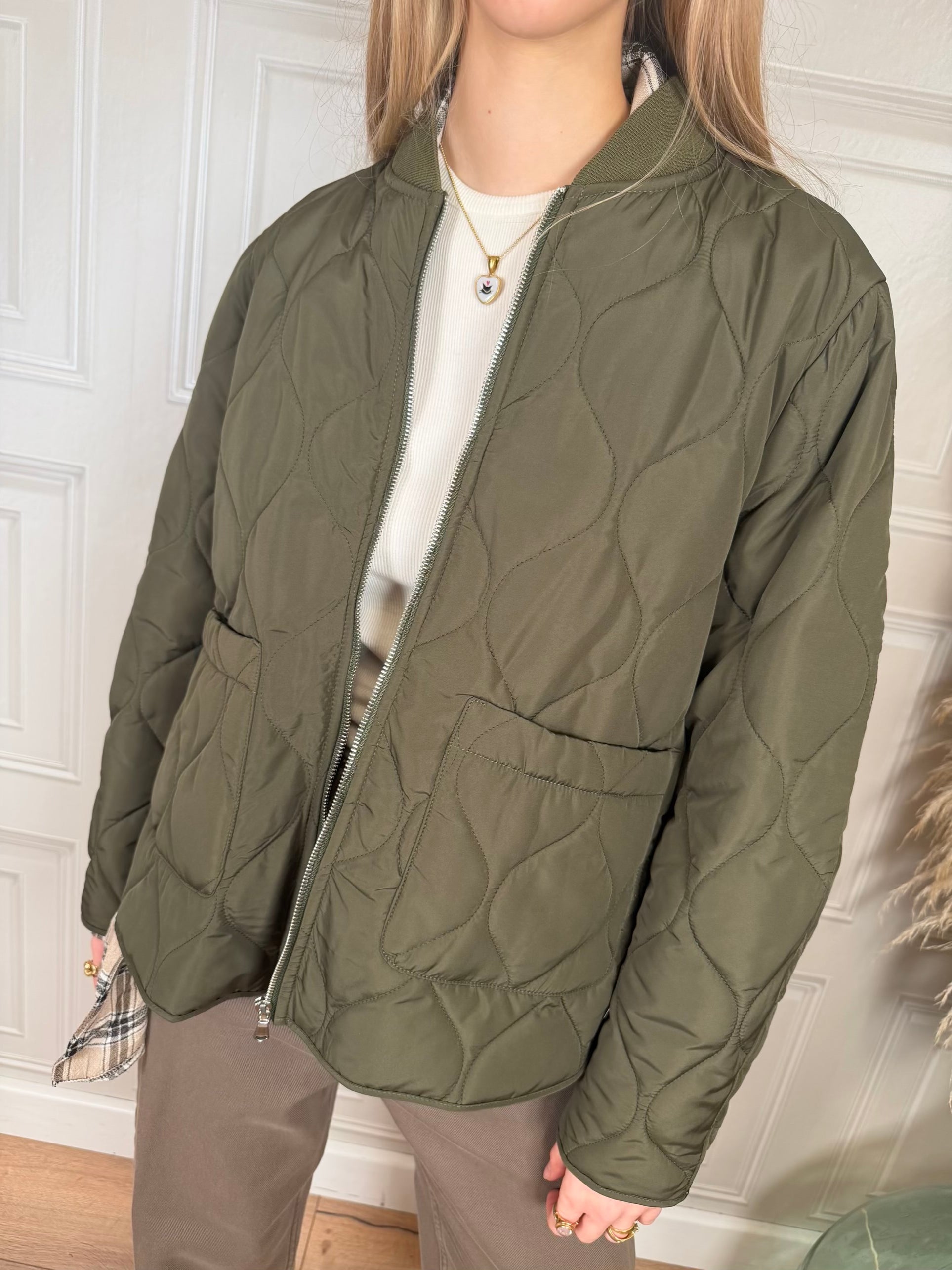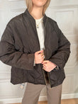 Piumino modello bomber leggermente over. Tasche laterali, chiusura con zip frontale.