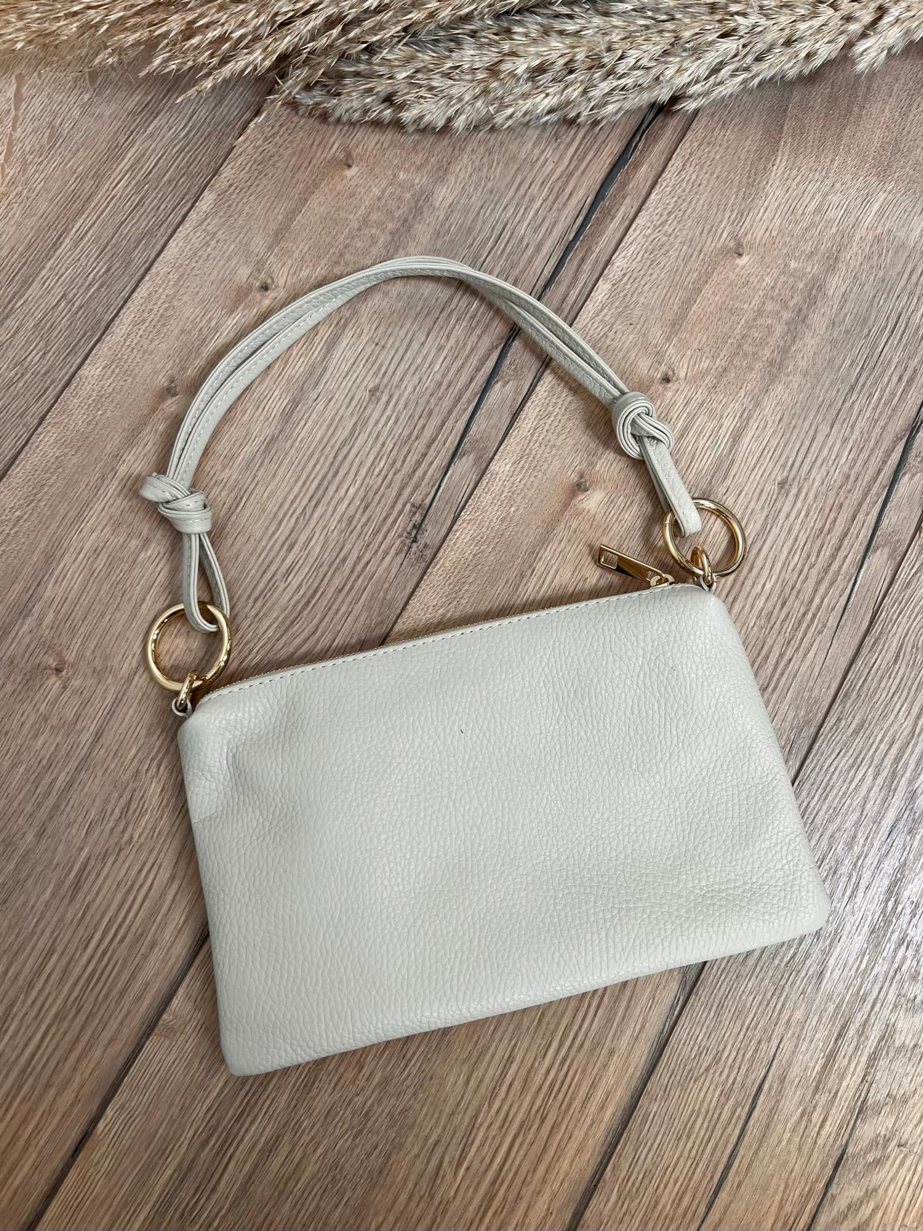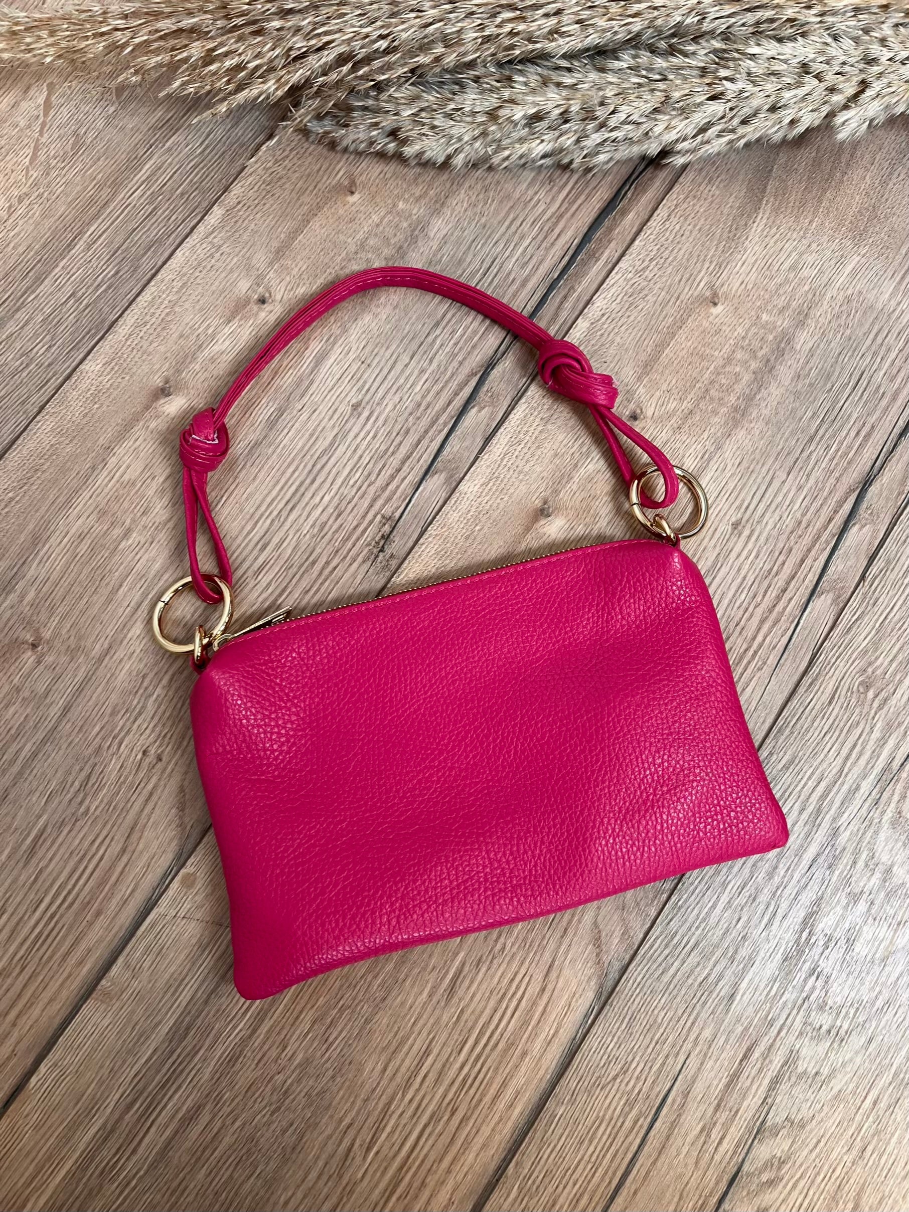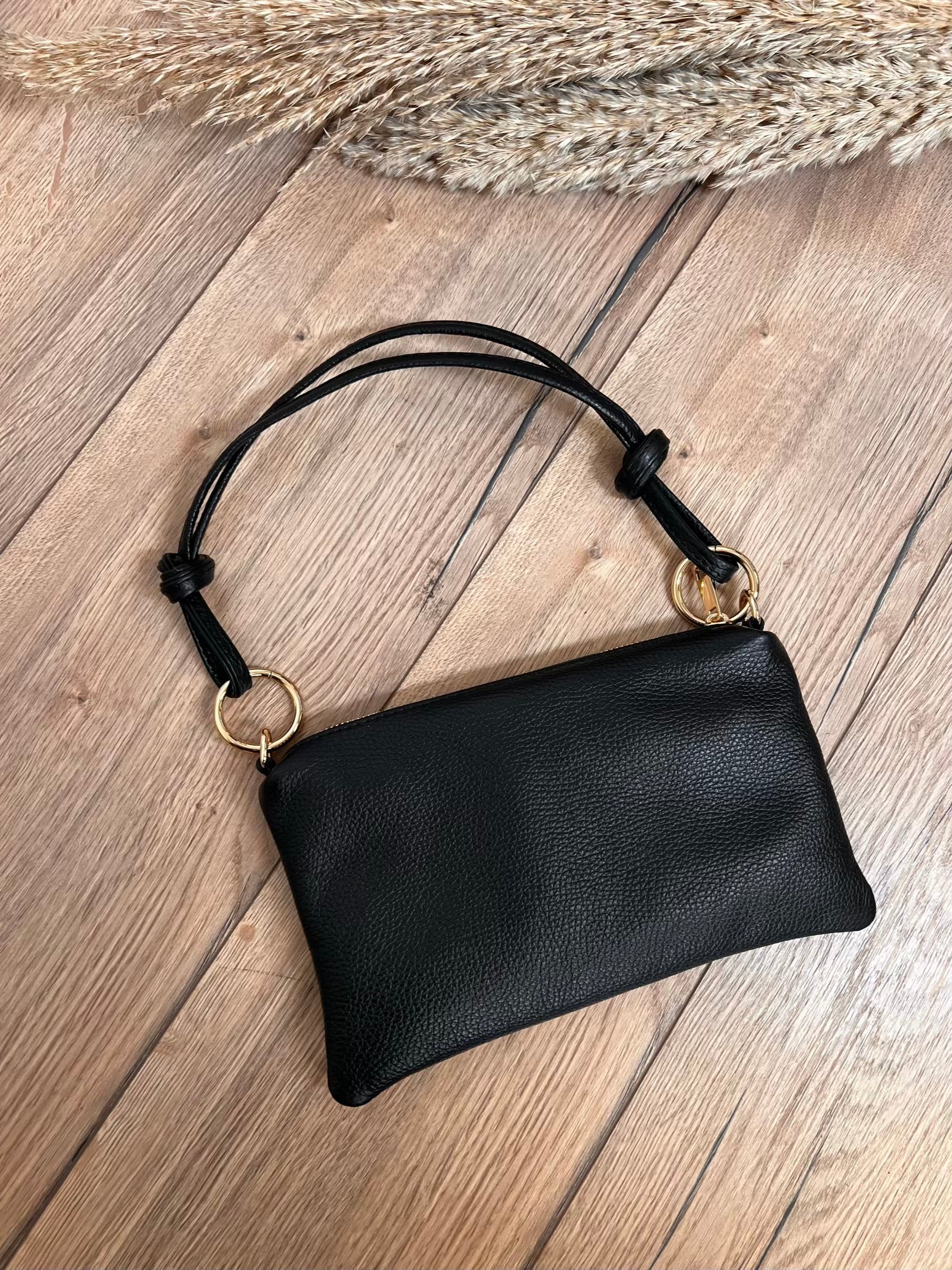 Chiusura con zip, possibilità di portarla sia a mano che a tracolla, con tasca interna.