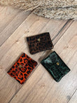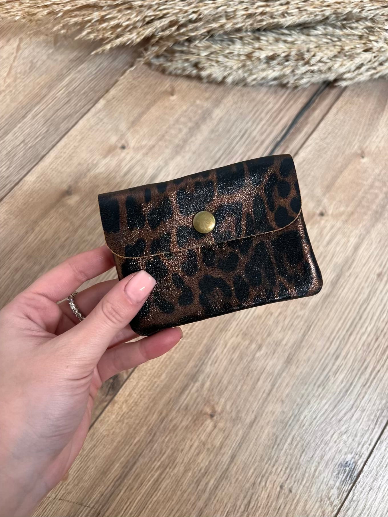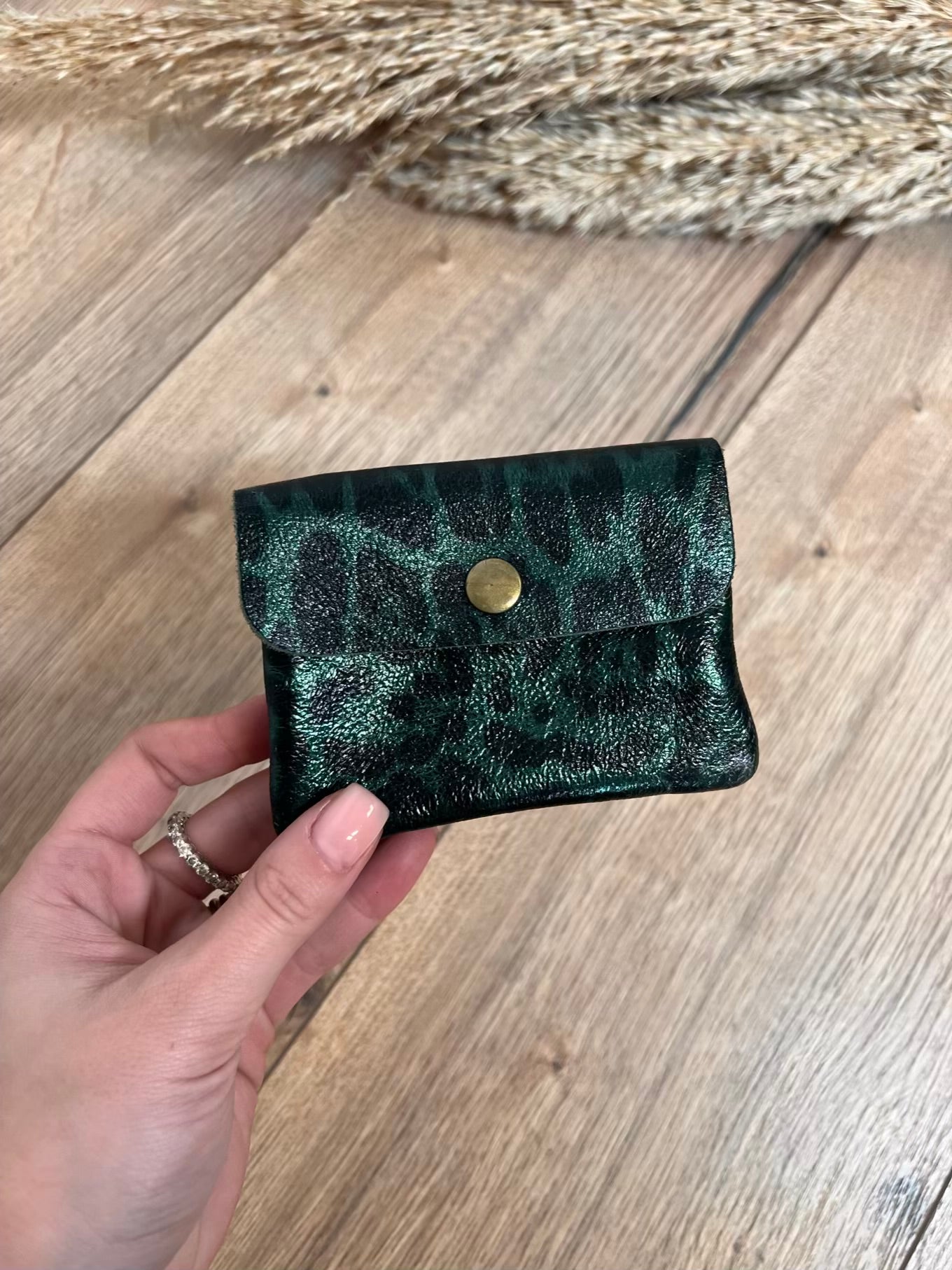 Portafoglio a bustina con chiusura a bottoncino automatico e cerniera interna con 2 scompartimenti.