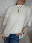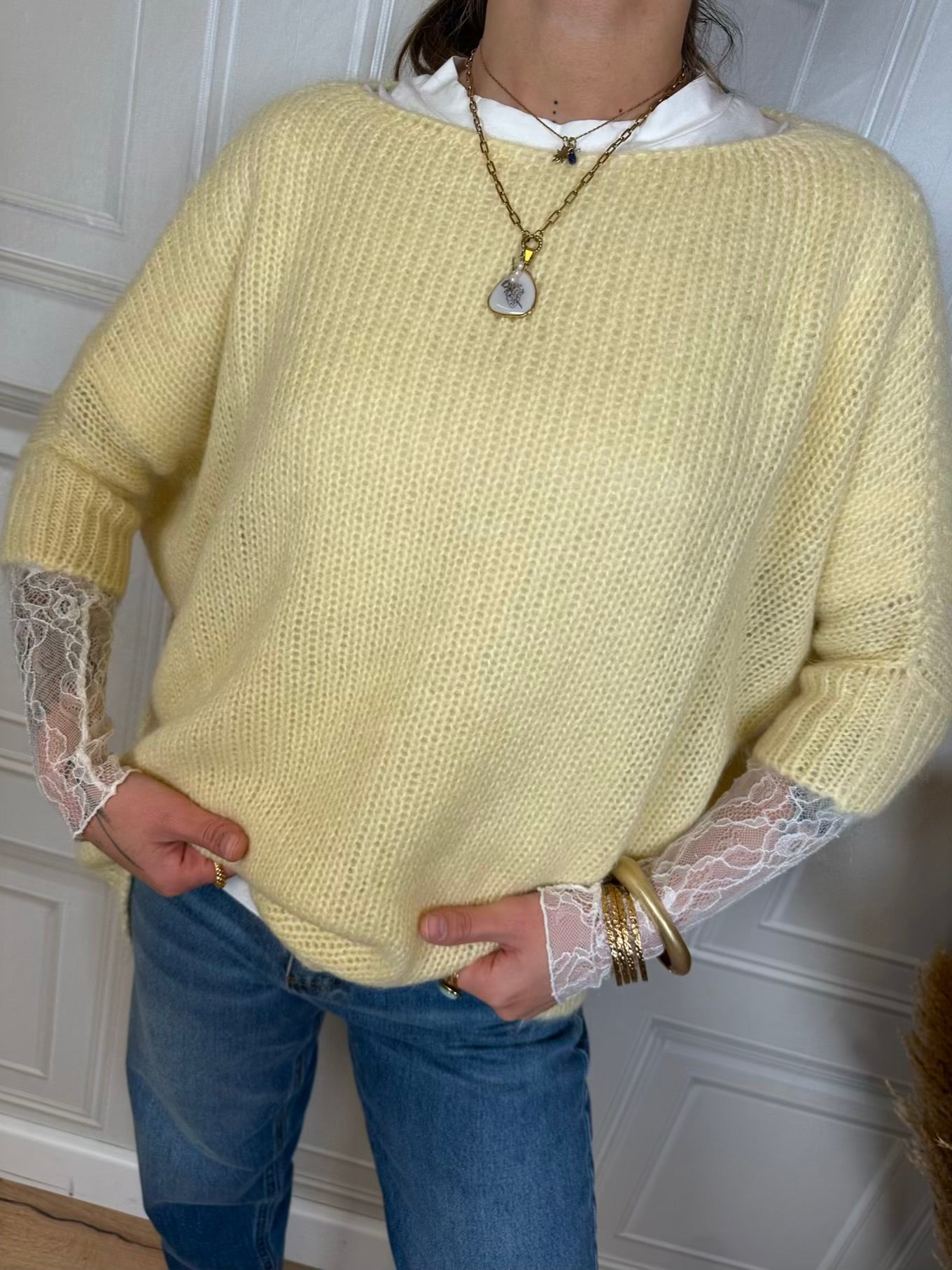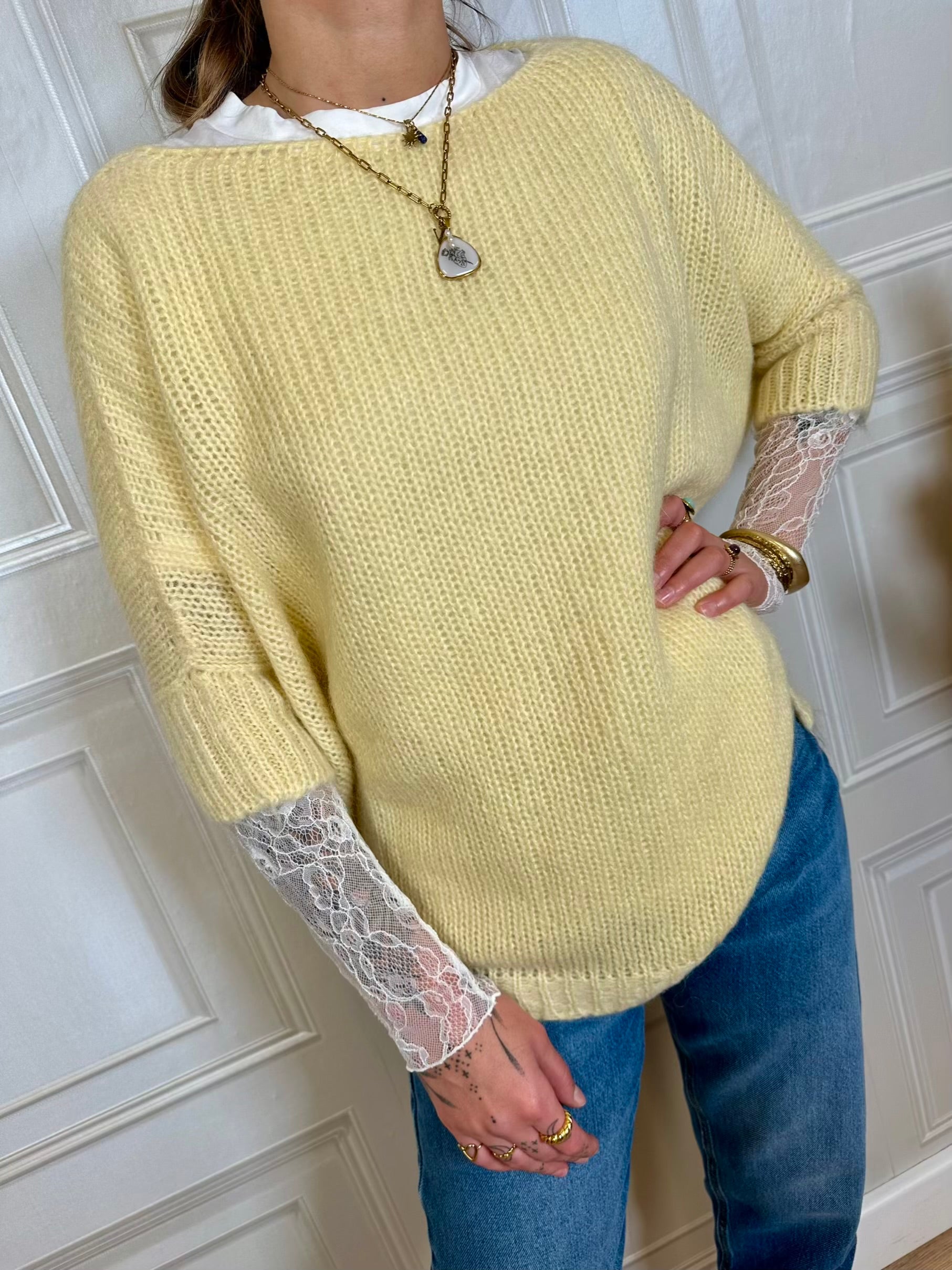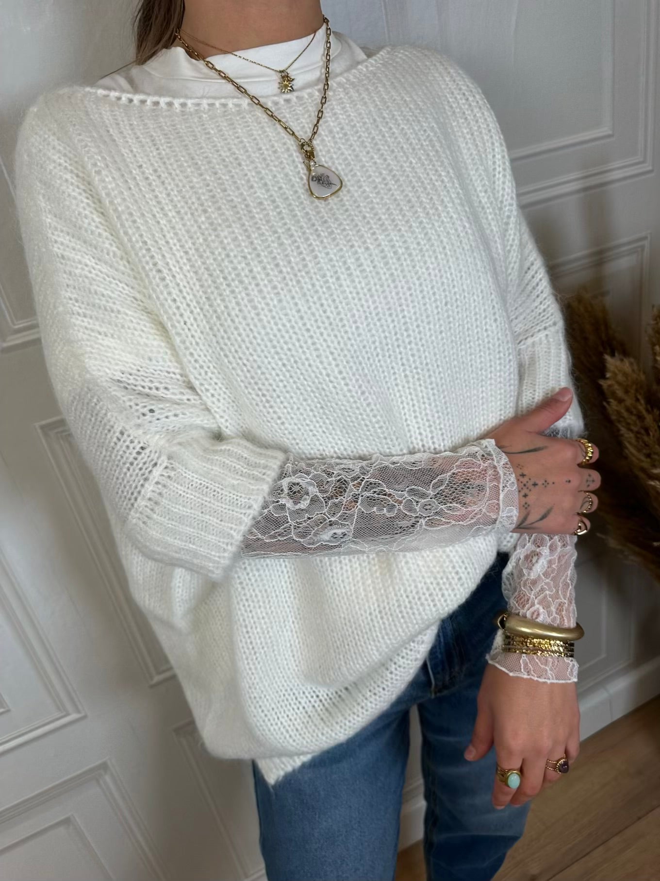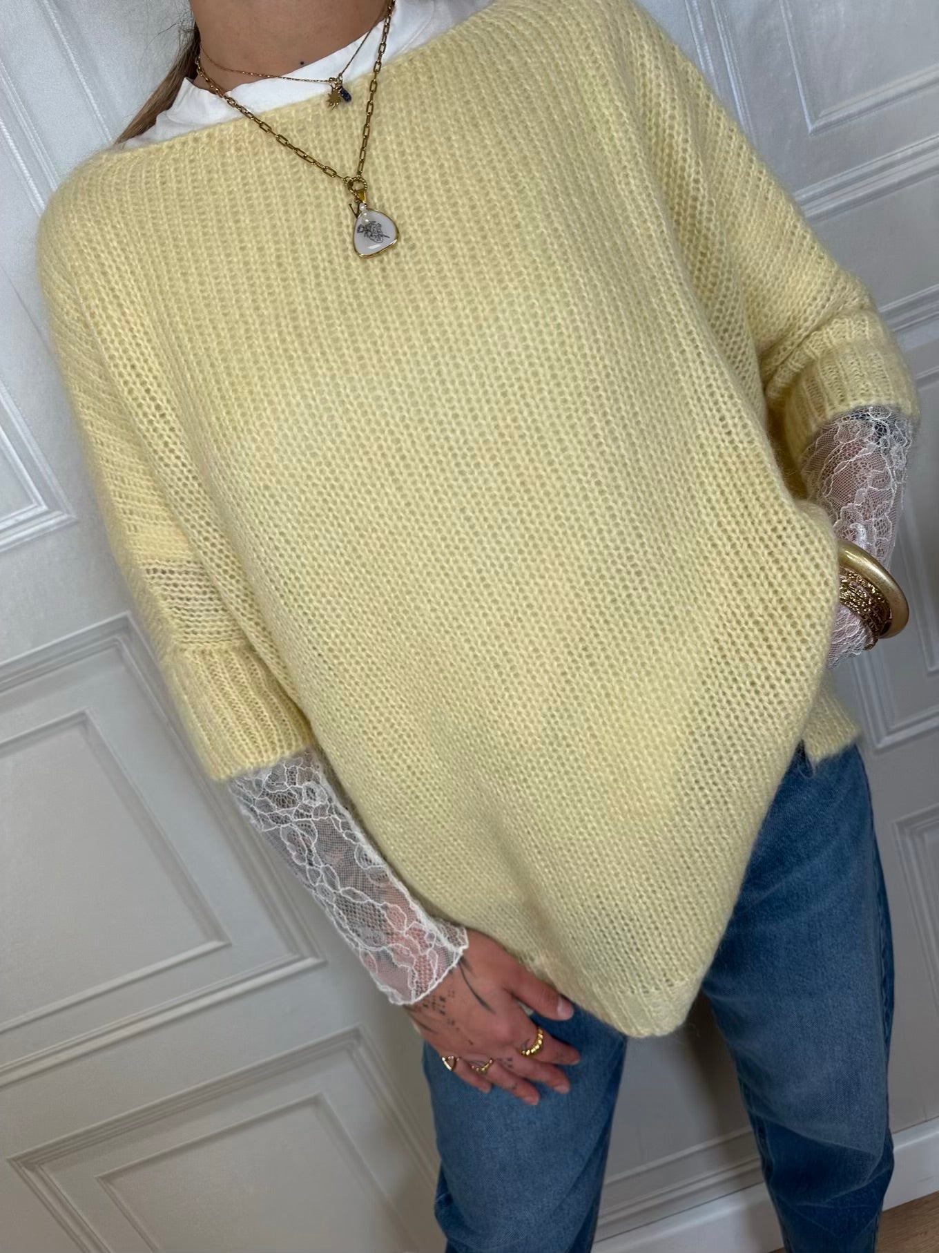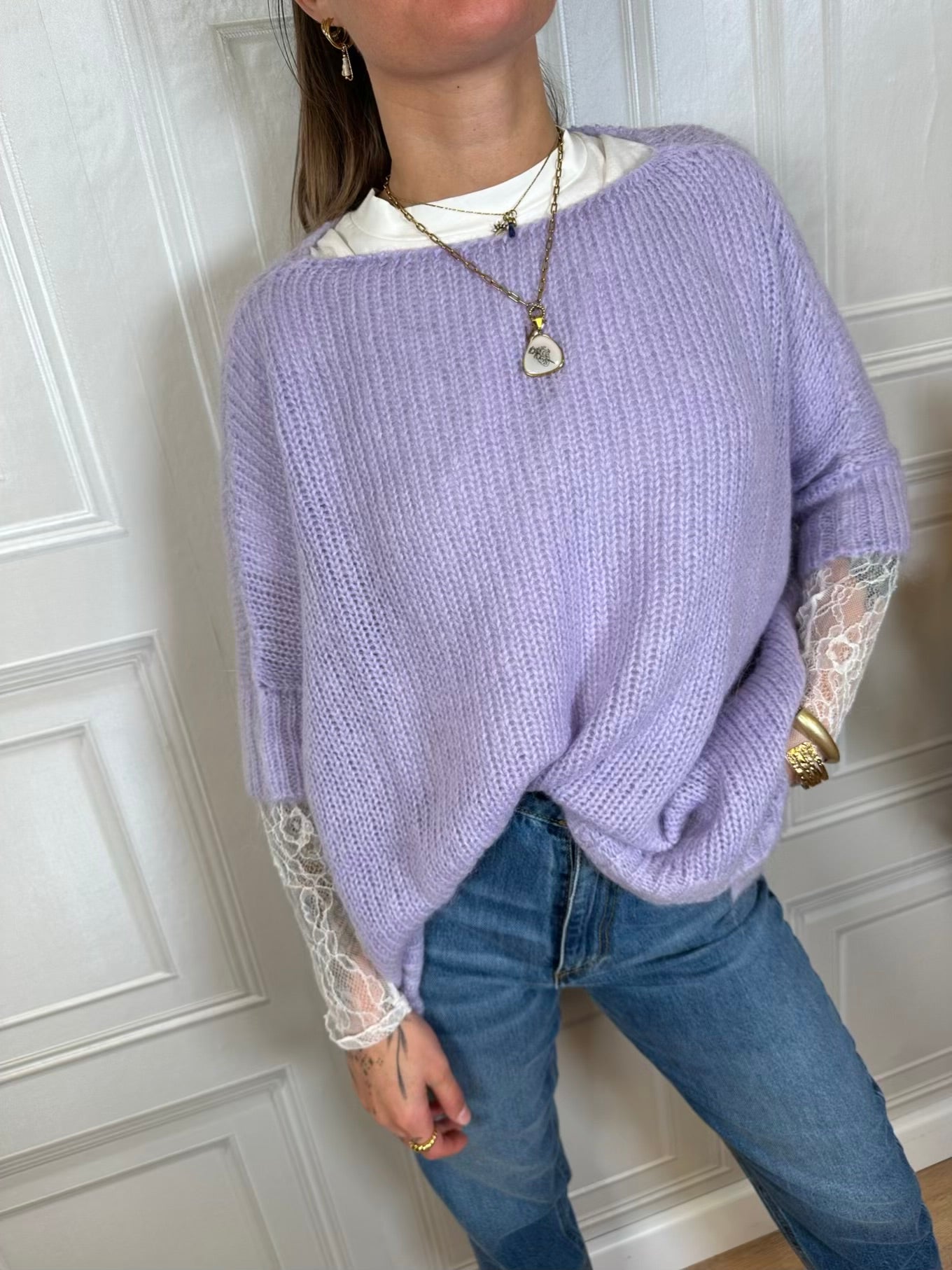 Modello morbido con scollo a barca, spalla scesa con manica 3/4 e polsino a coste. Spacchetti laterali