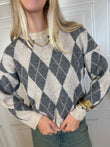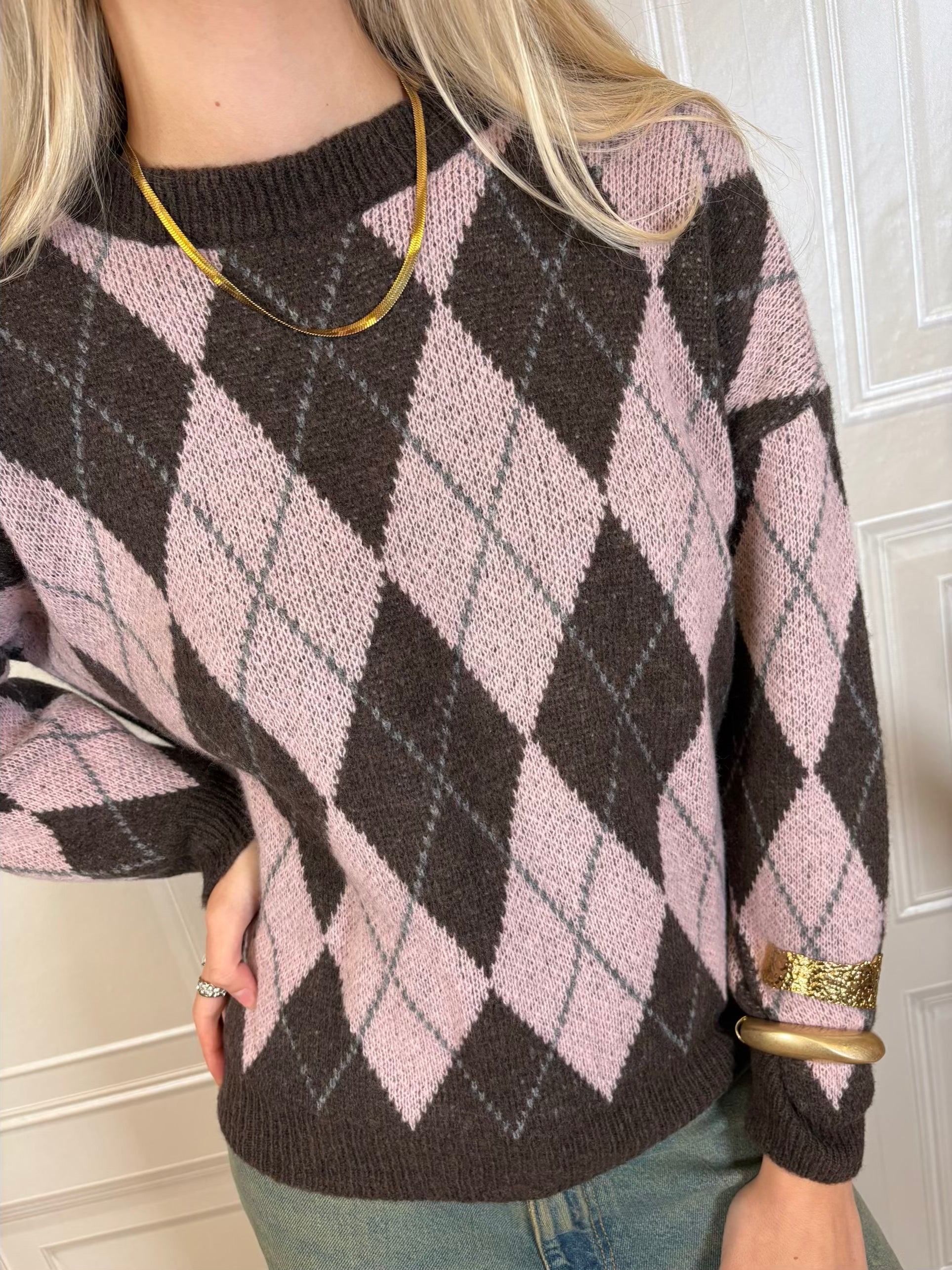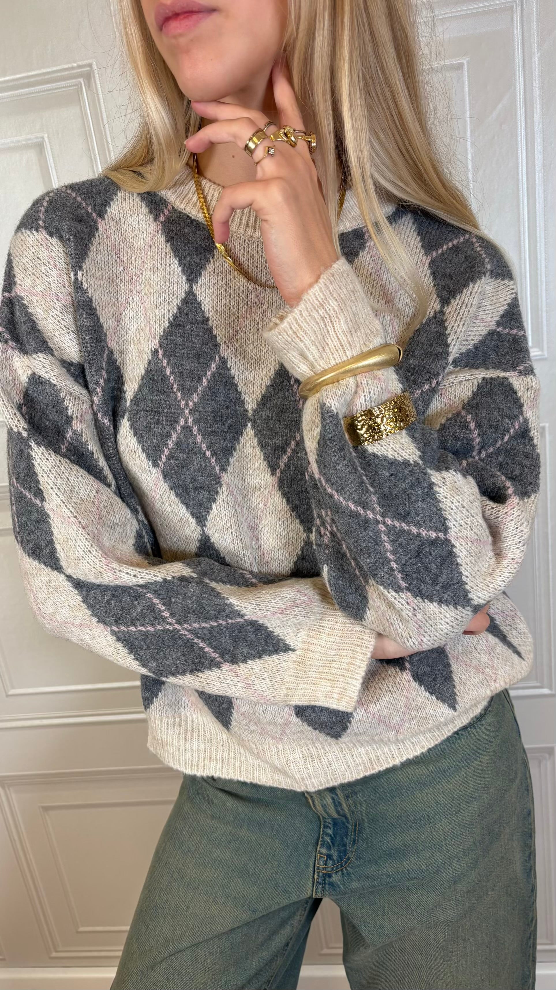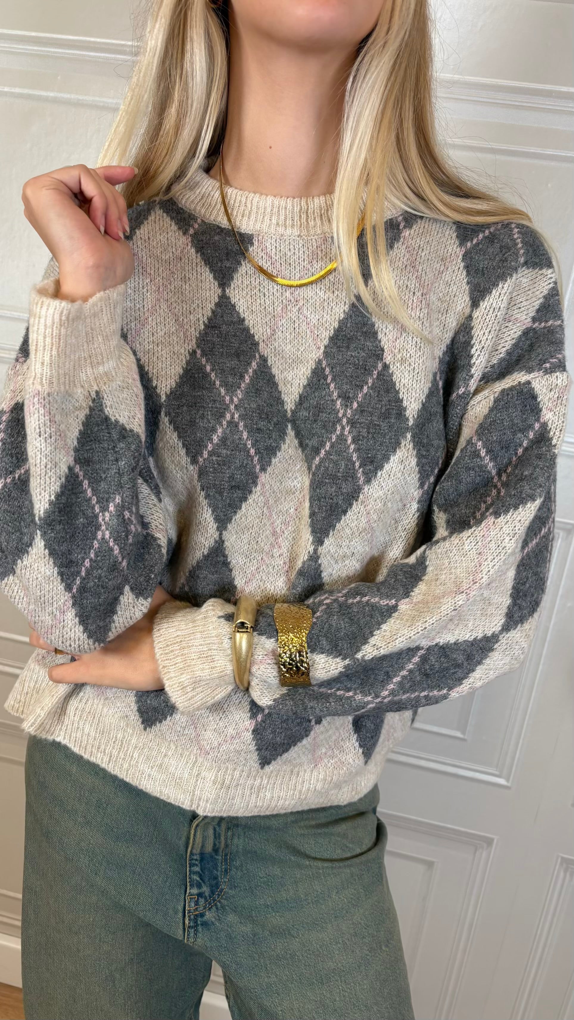 Maglia jacquard a fantasia rombi. Modello girocollo.