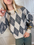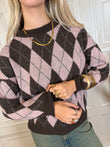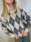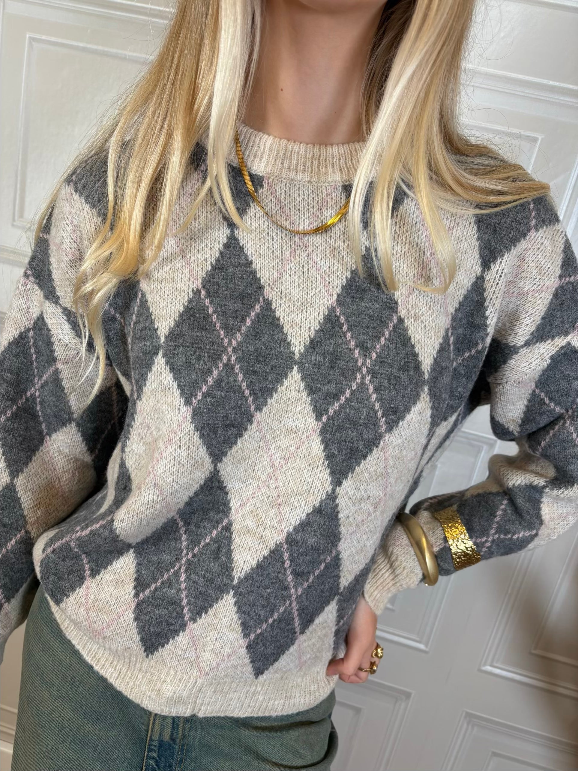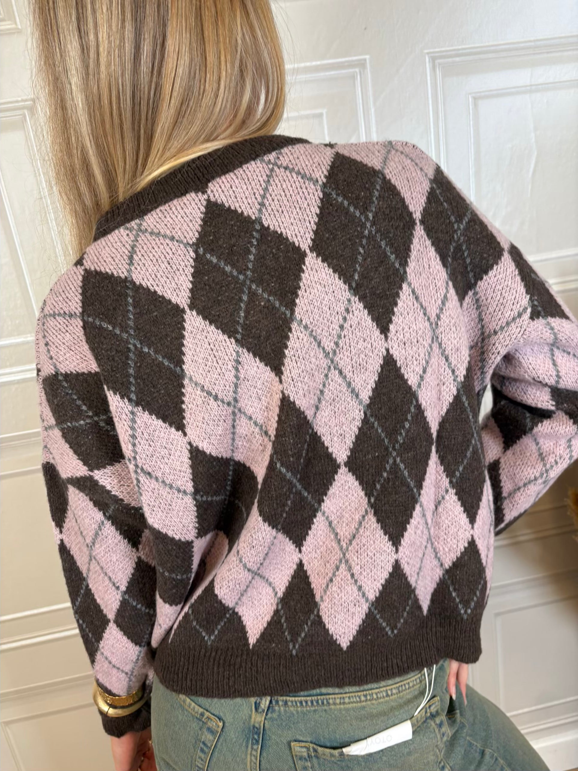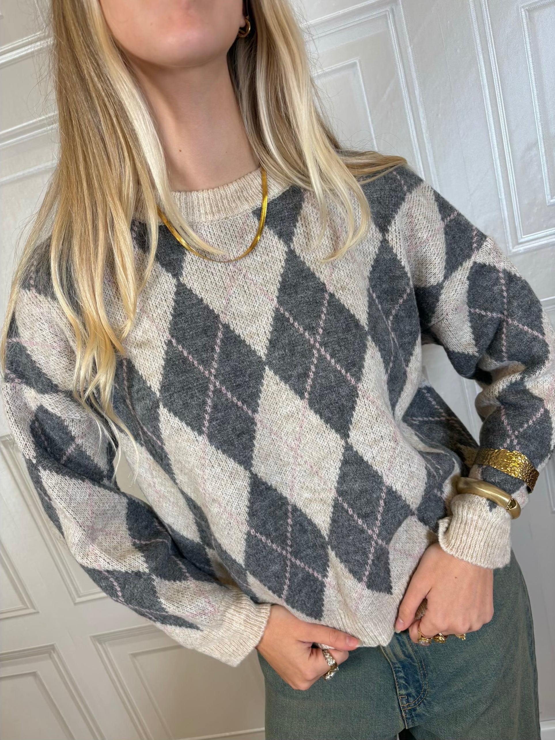 Maglia jacquard a fantasia rombi. Modello girocollo.