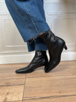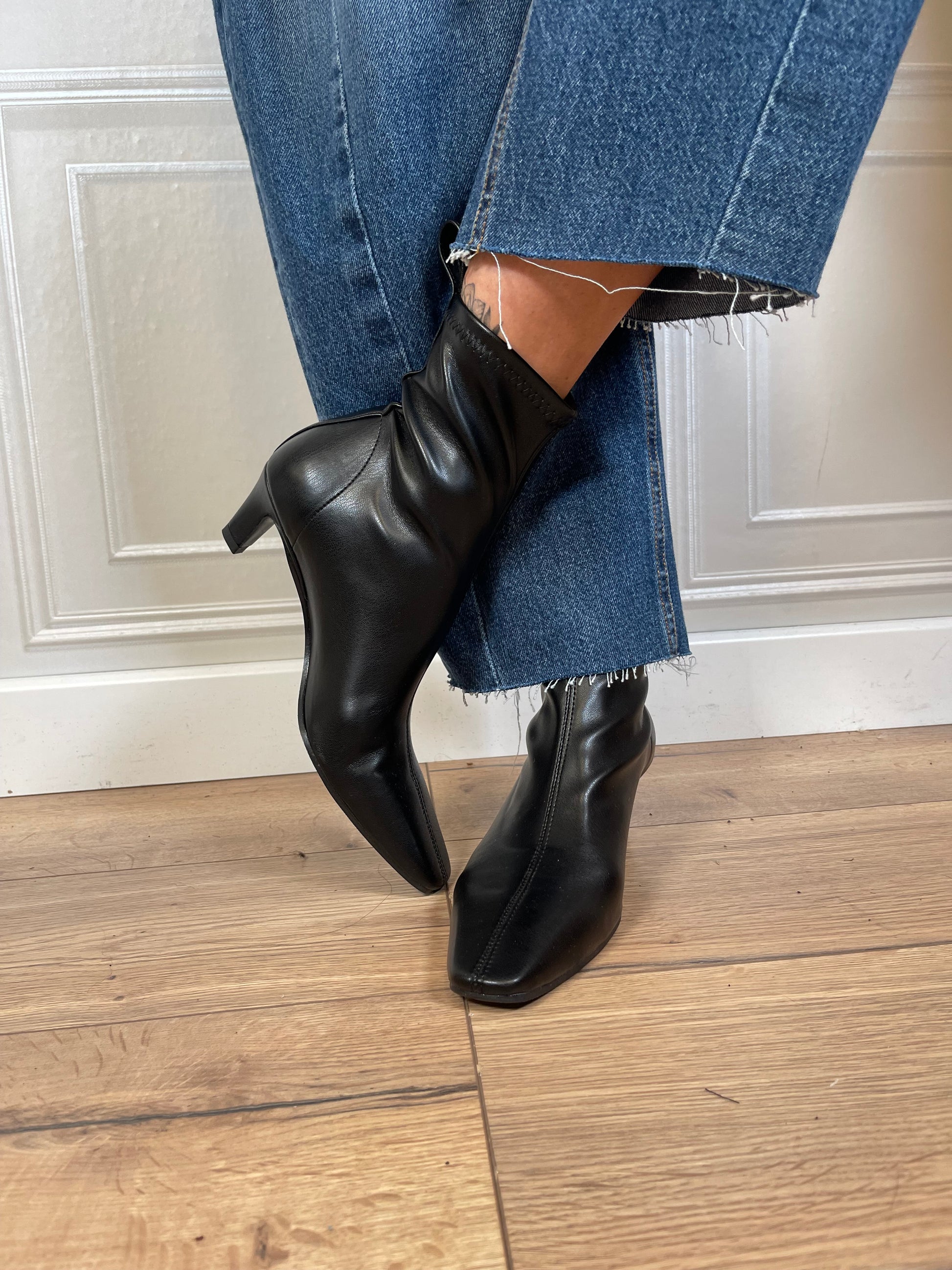 Stivaletto a calzino in pelle nero. Modello a punta.