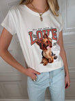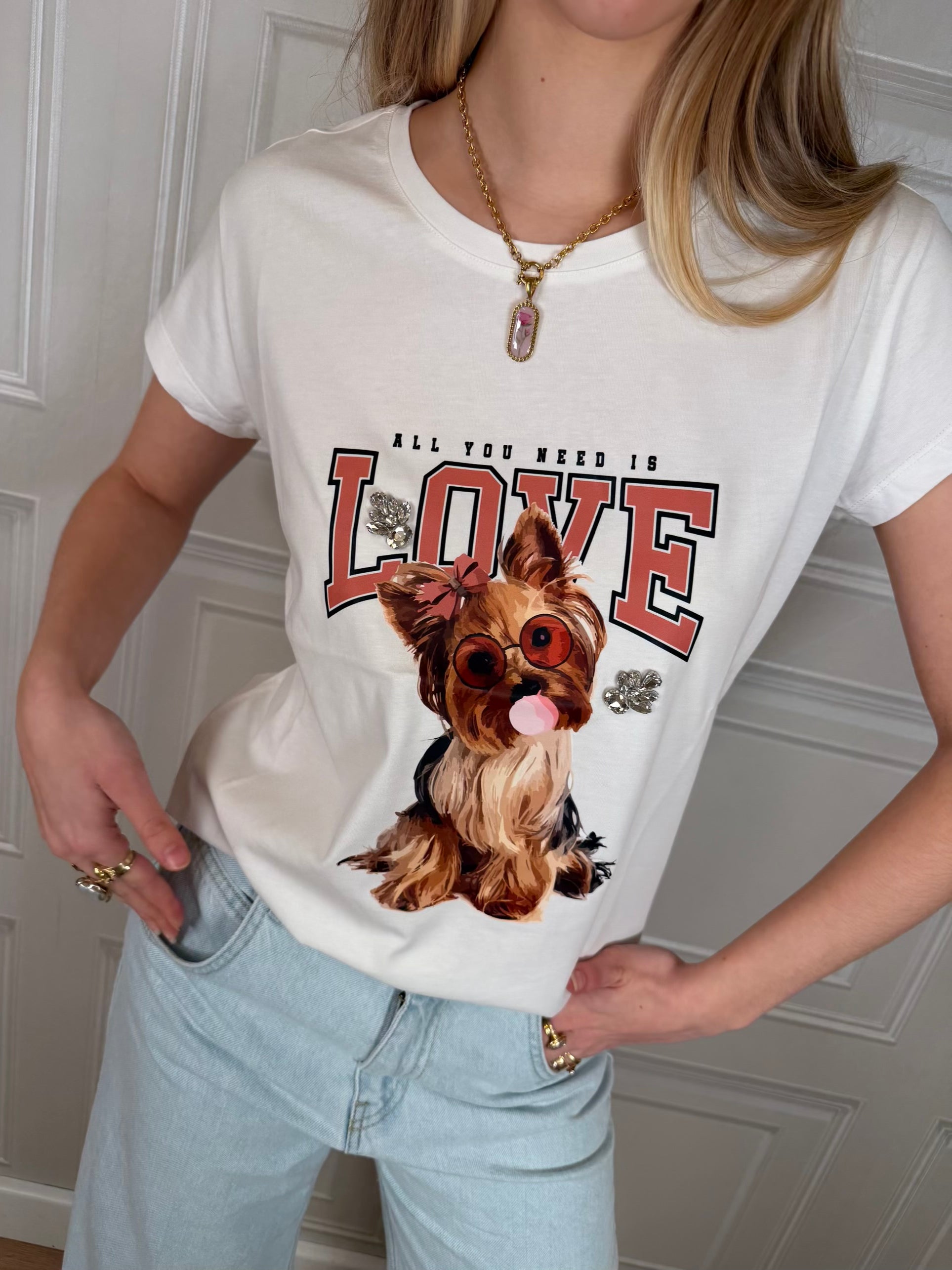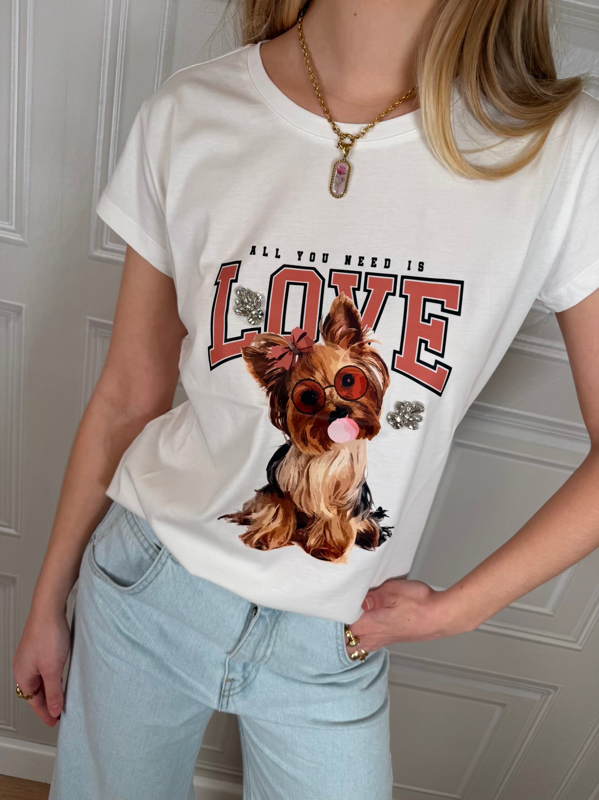 T-shirt girocollo in cotone con stampa e ricami di strass. Taglia unica.