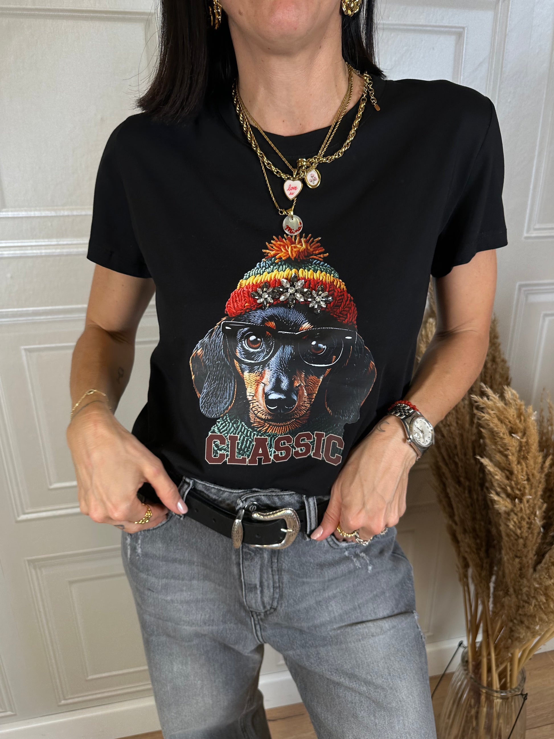 T-shirt girocollo in cotone con stampa. Taglia unica, modello regolare.