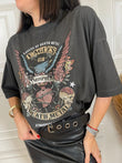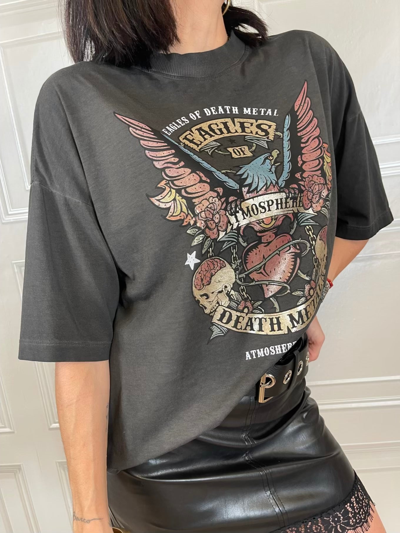 T-shirt girocollo in cotone con stampa. Taglia unica, modello oversize con spalla scesa.