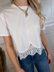 T-shirt girocollo. Modello regolare con dettaglio di fondo di pizzo.